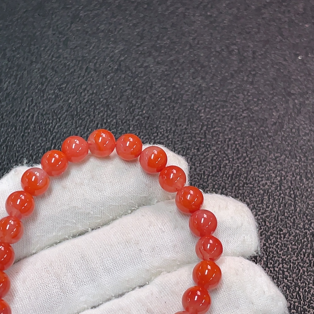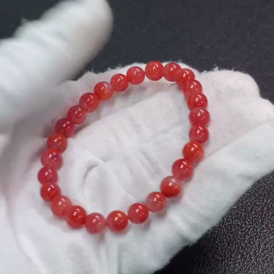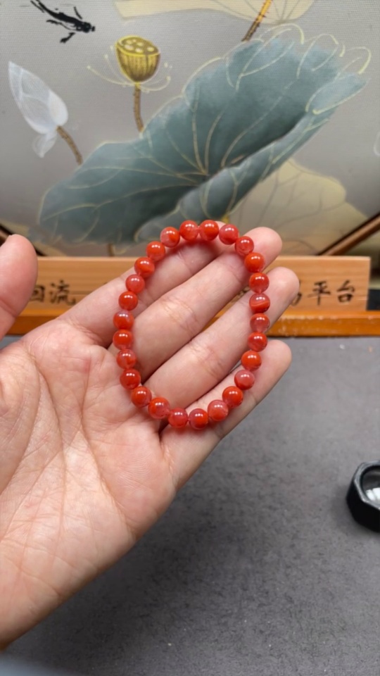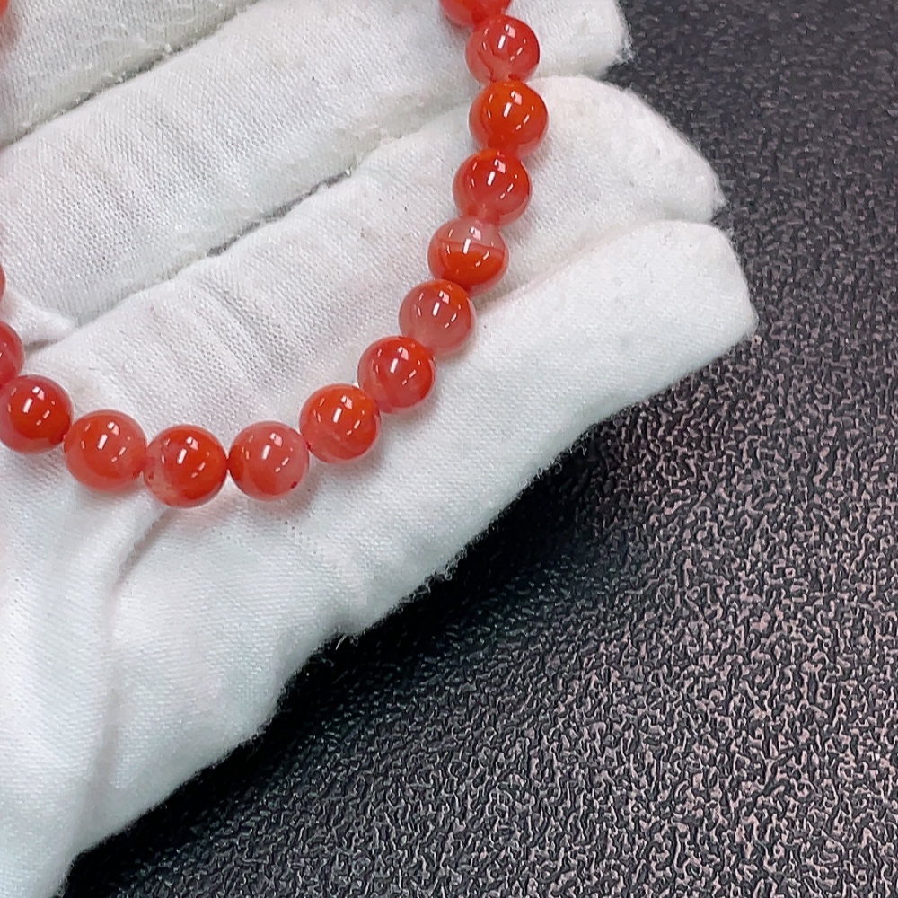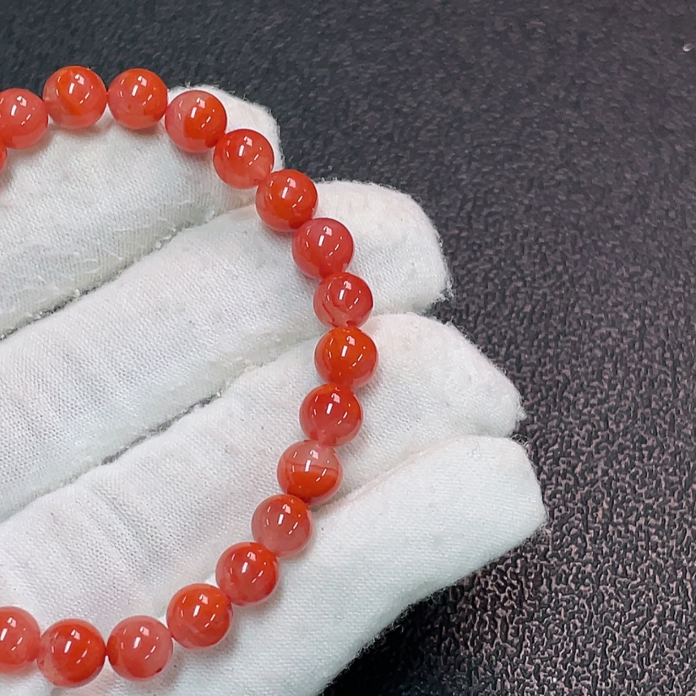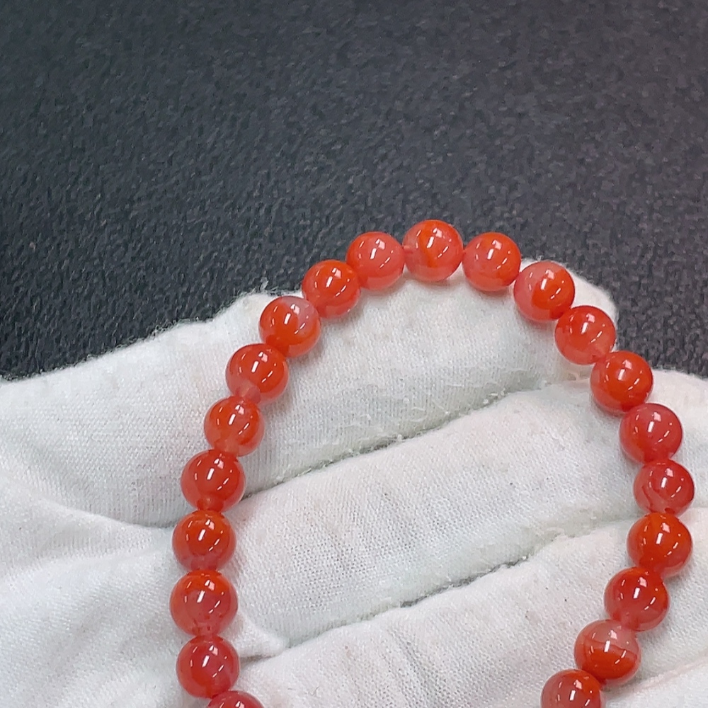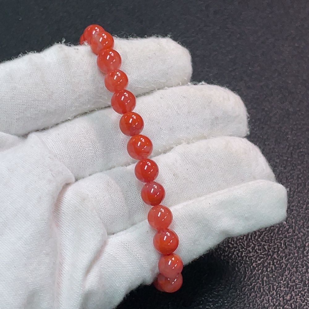 Red Agate Bracelet with Visible Organic Matter, Total Weight Approx. 10.56g, Size Around 6.7mm