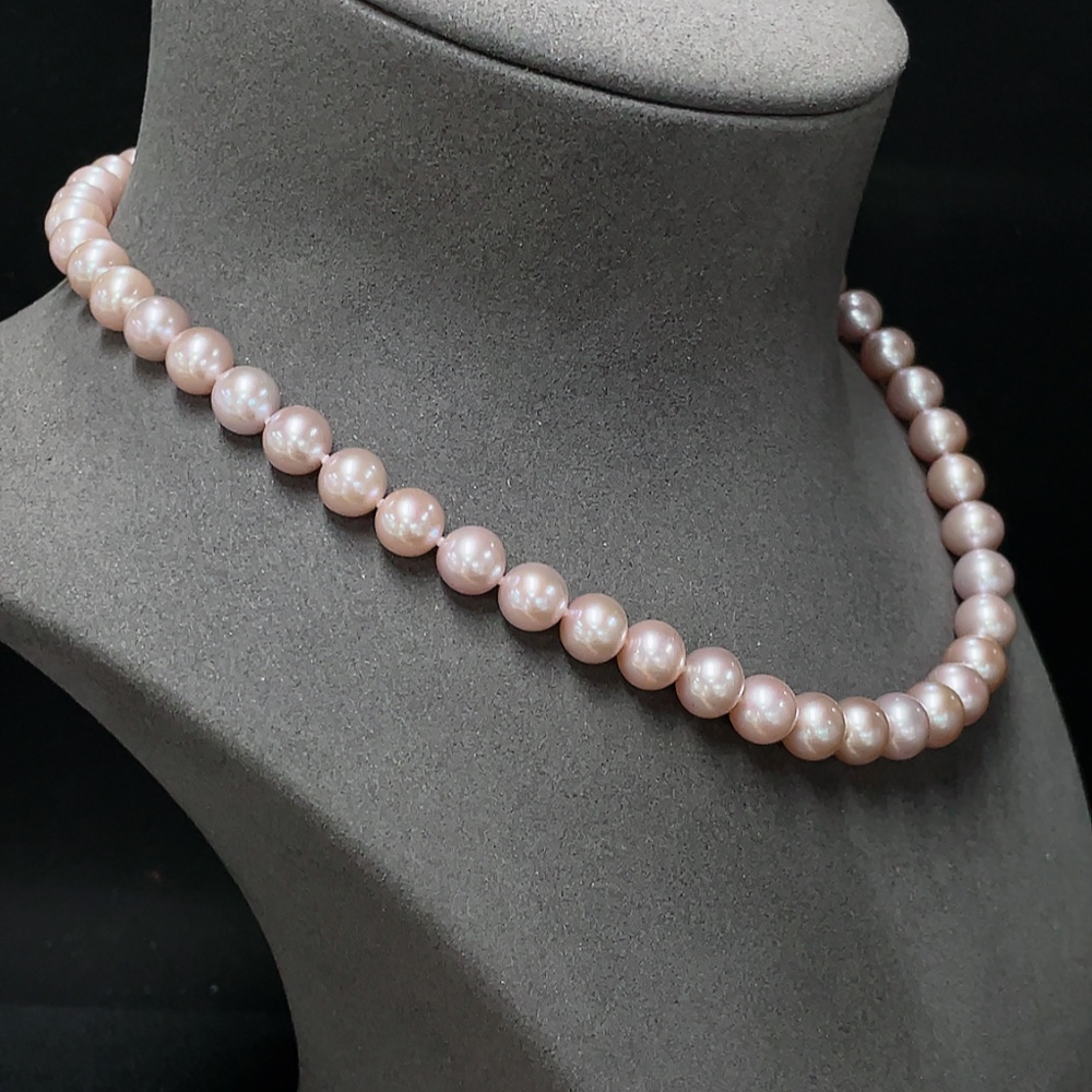 Pearl bead necklace, non-gold, total weight approx. 46.15g, size approx. 8.3-9.3mm