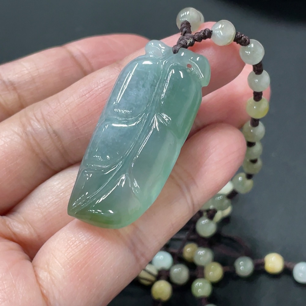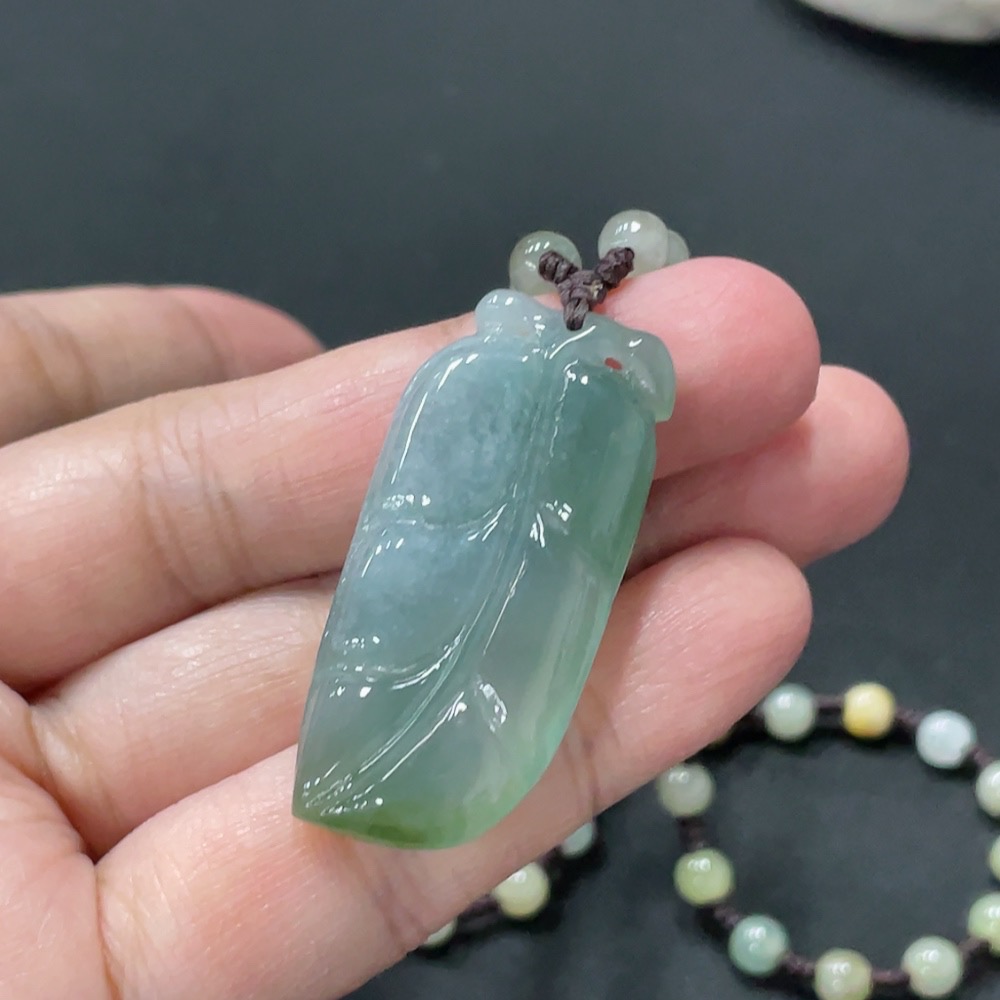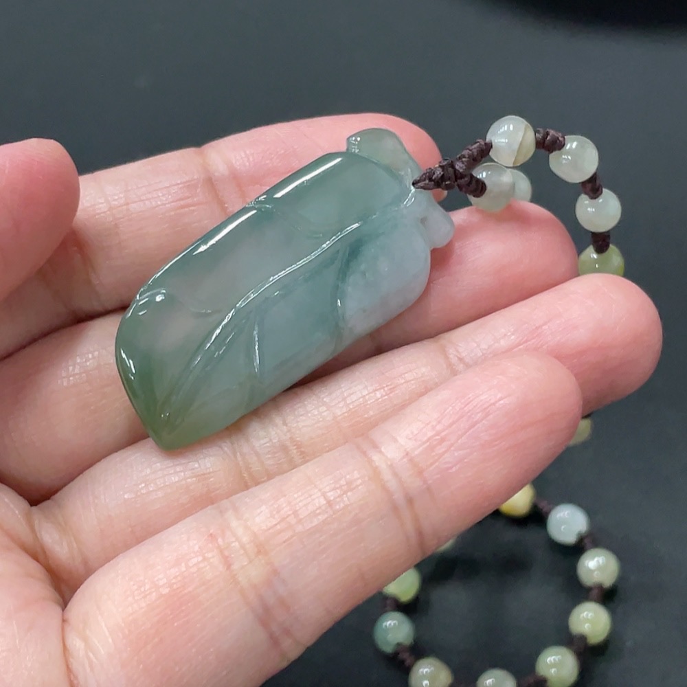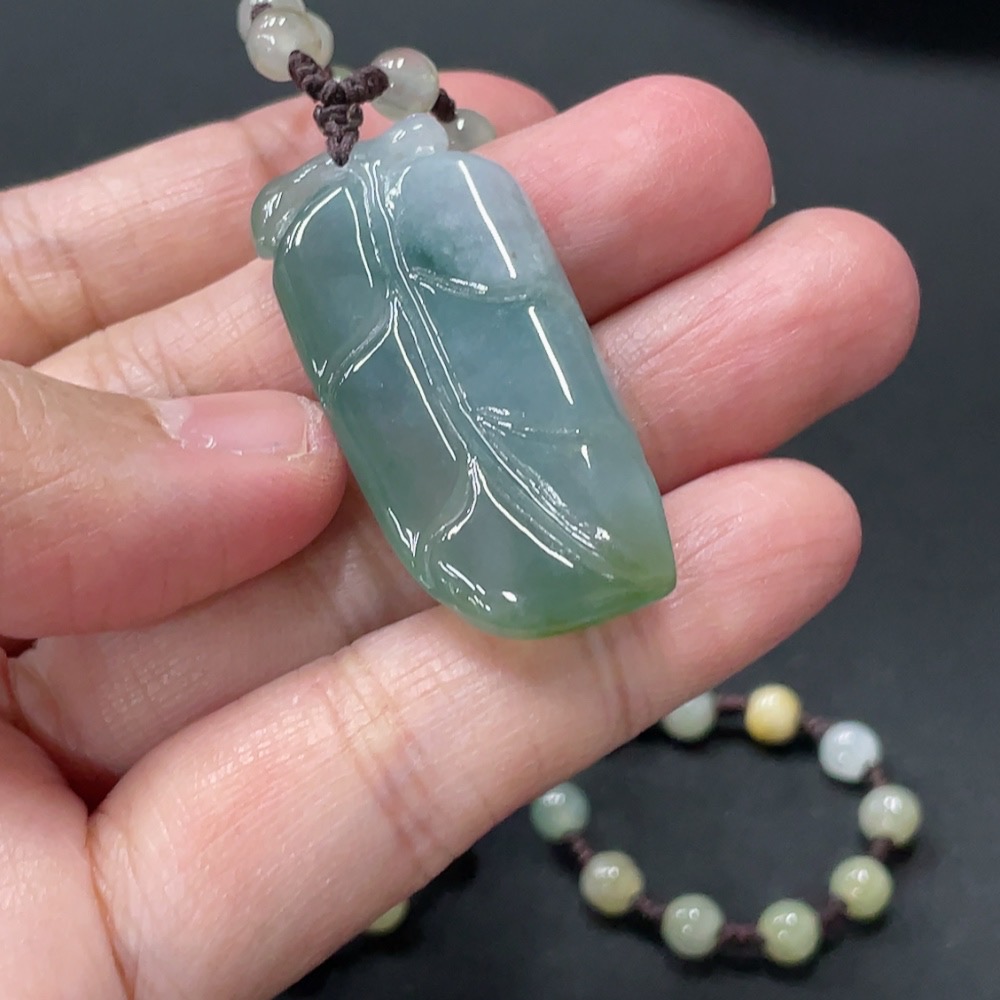 Jadeite Pendant Leaf Total Weight Approx. 21.79g Including Chain