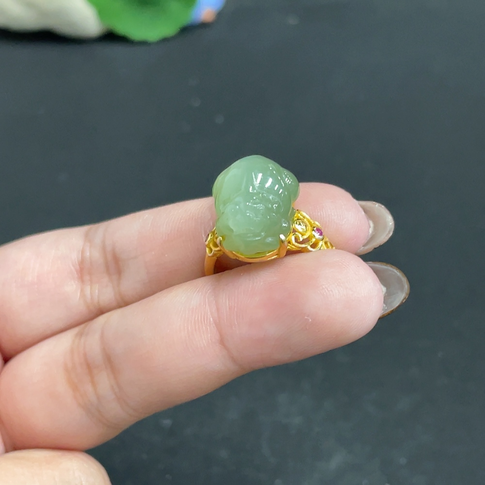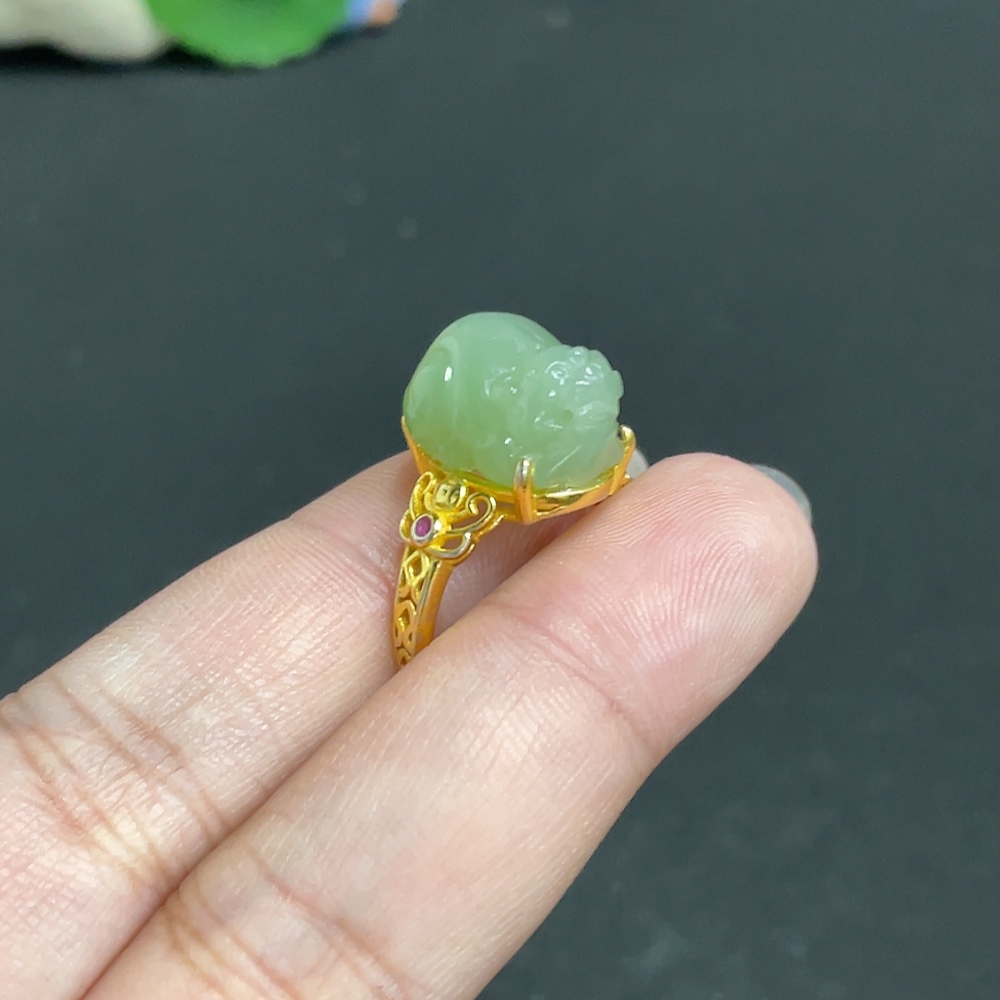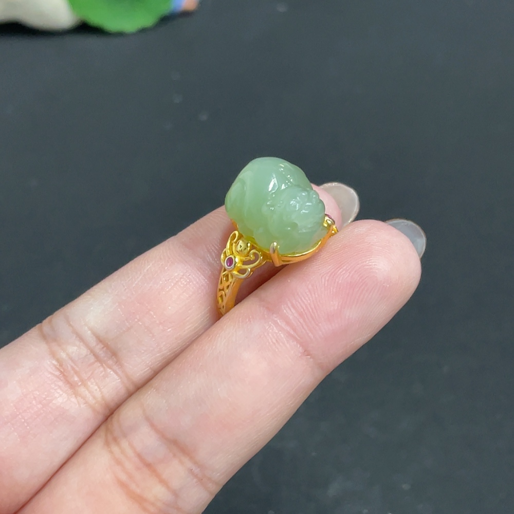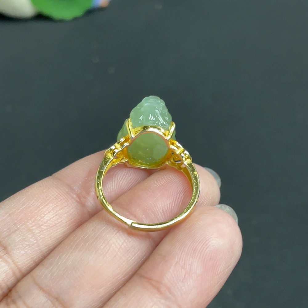 Hetian Jade Inlaid Auspicious Beast Adjustable Ring