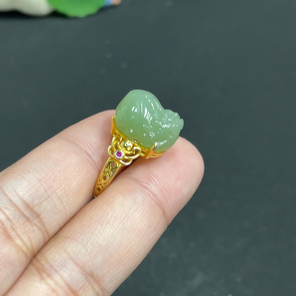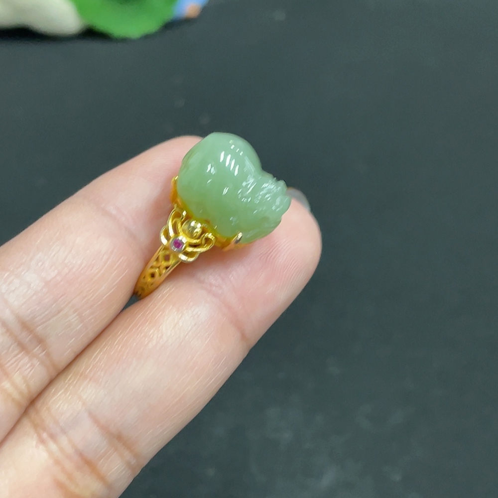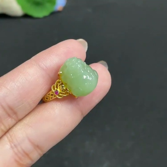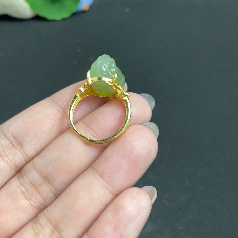 Hetian Jade Inlaid Auspicious Beast Adjustable Ring