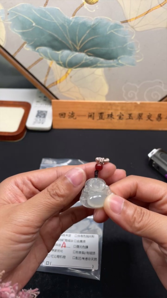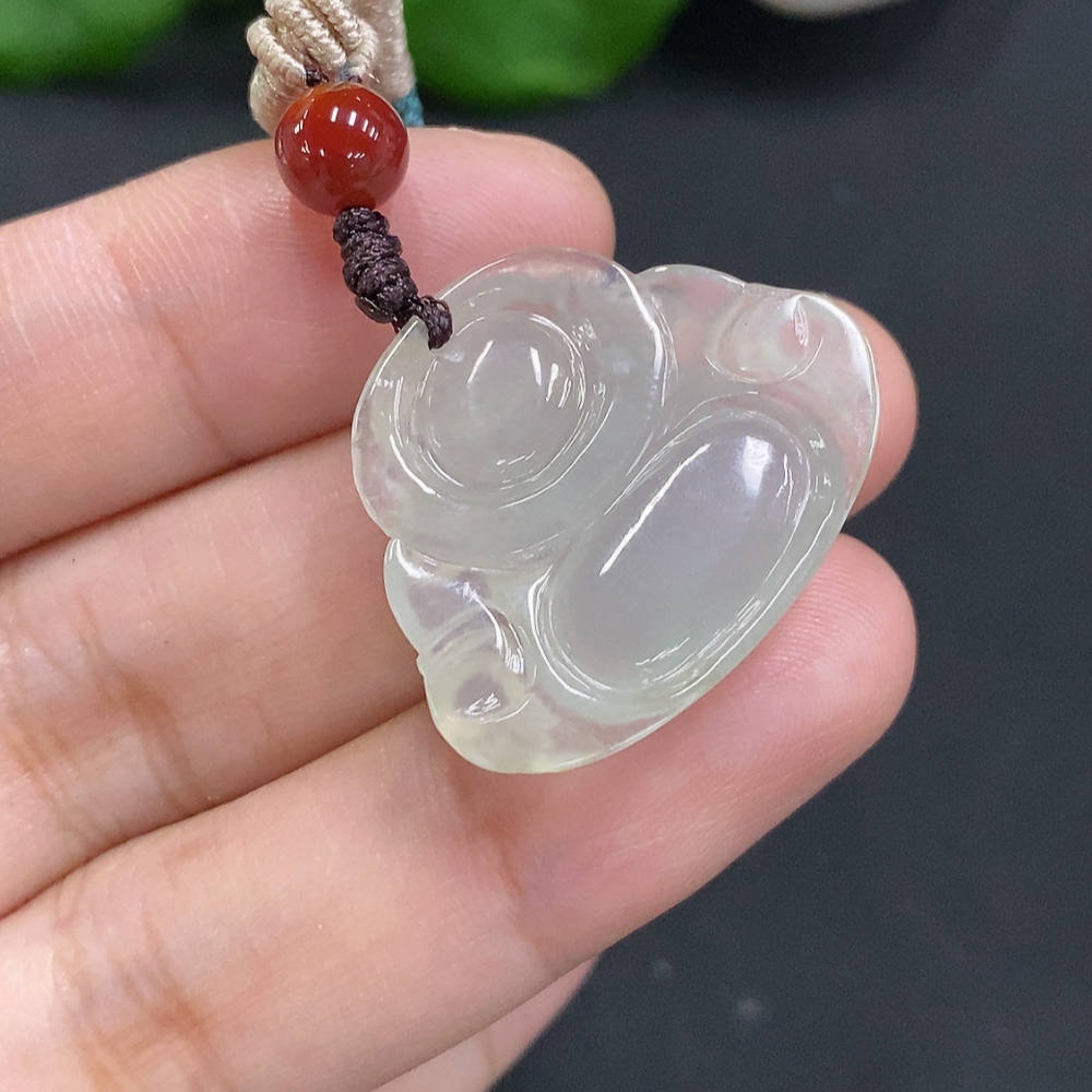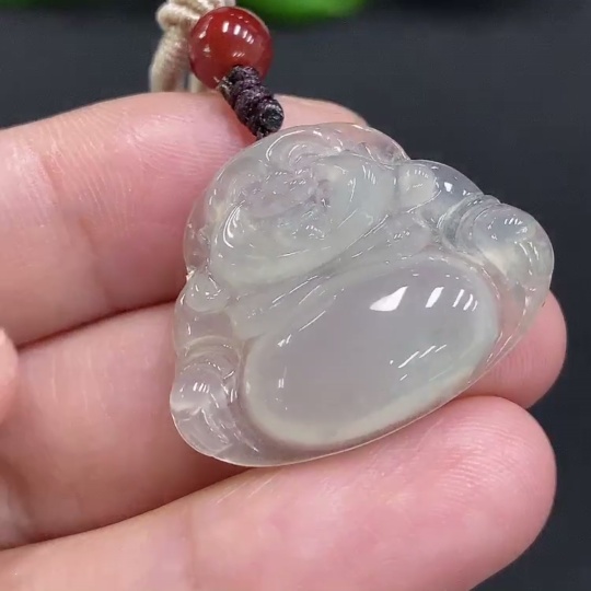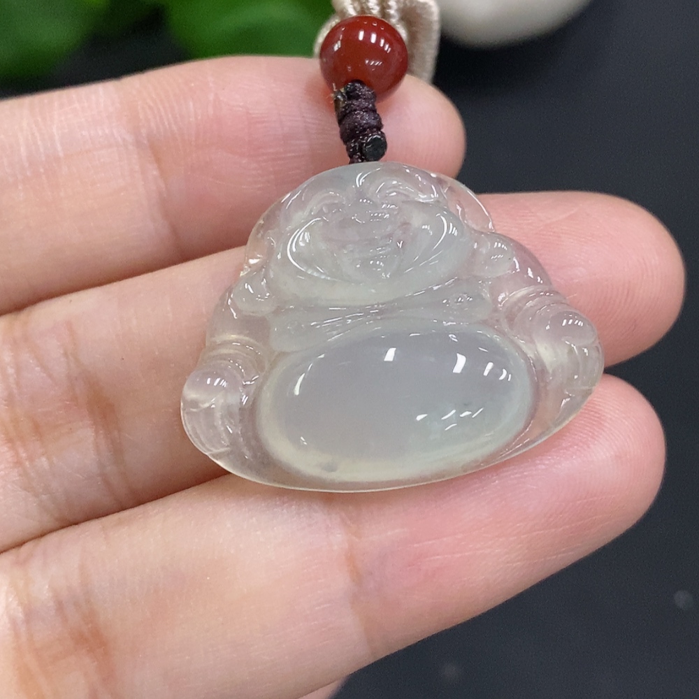 Jadeite Buddha Pendant Total Weight with Rope Approx. 7.4g (Matching Beads Non-Grade A)