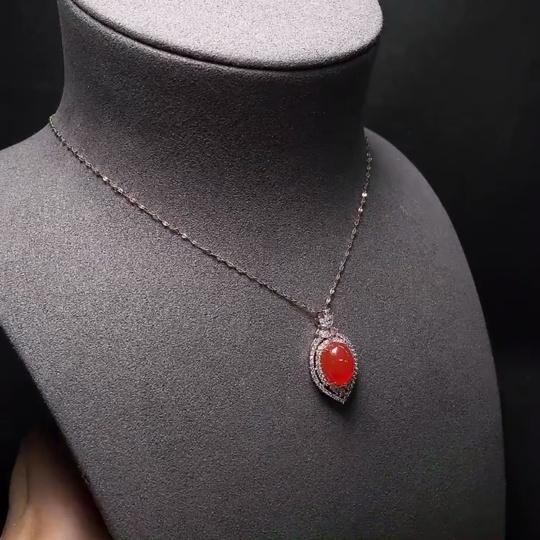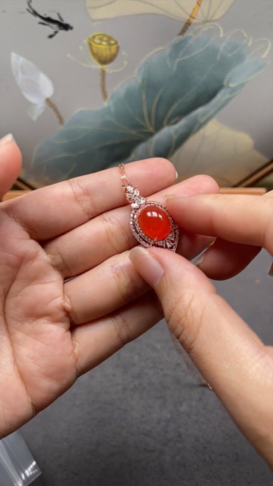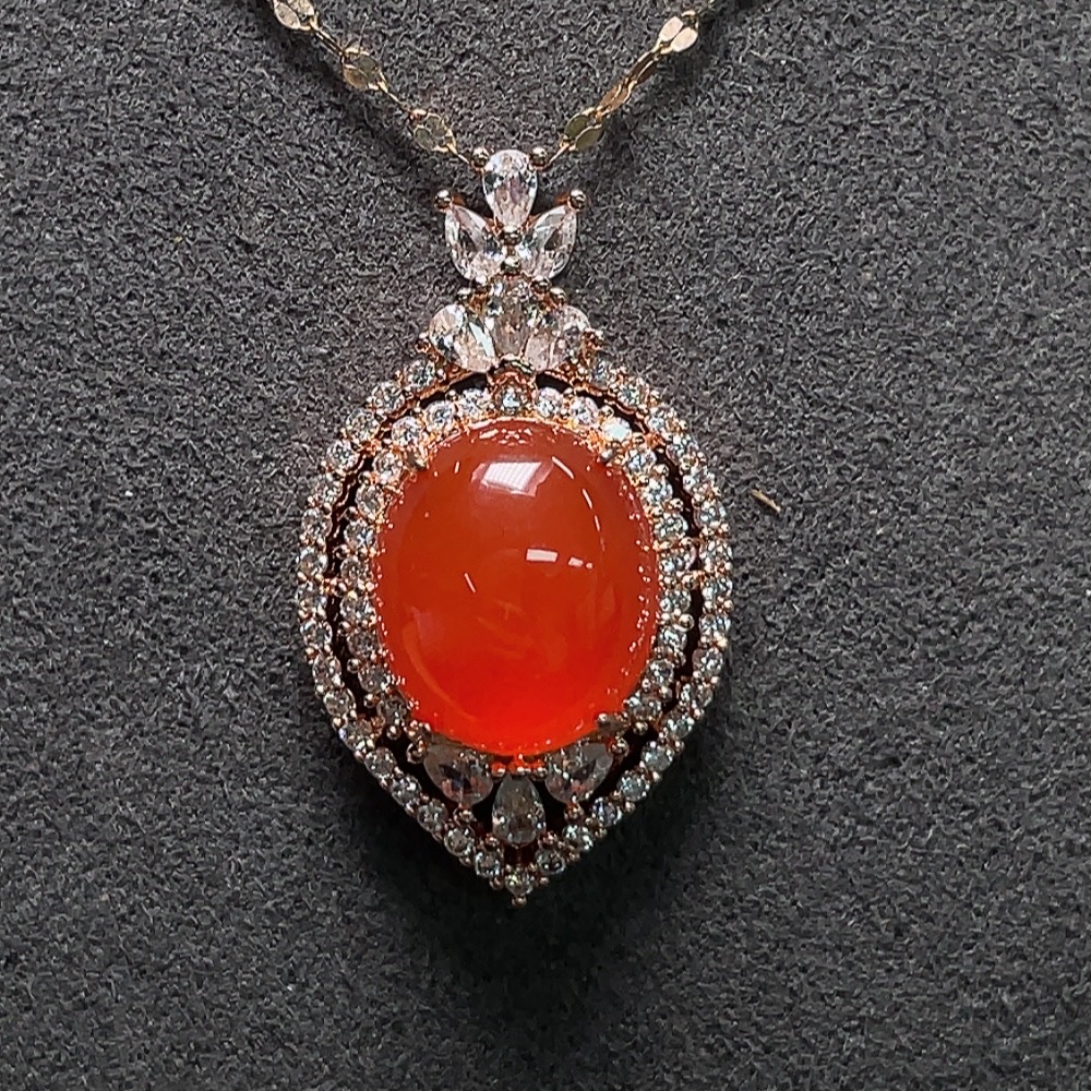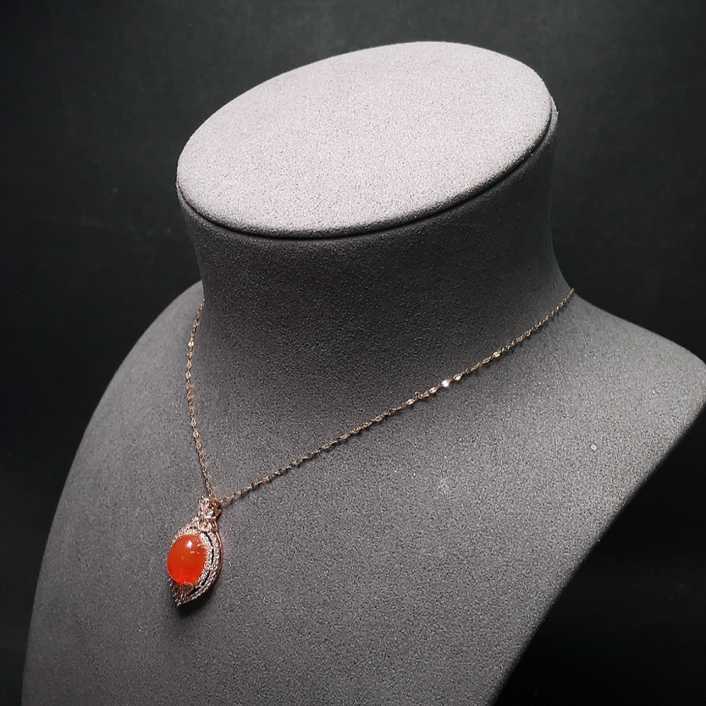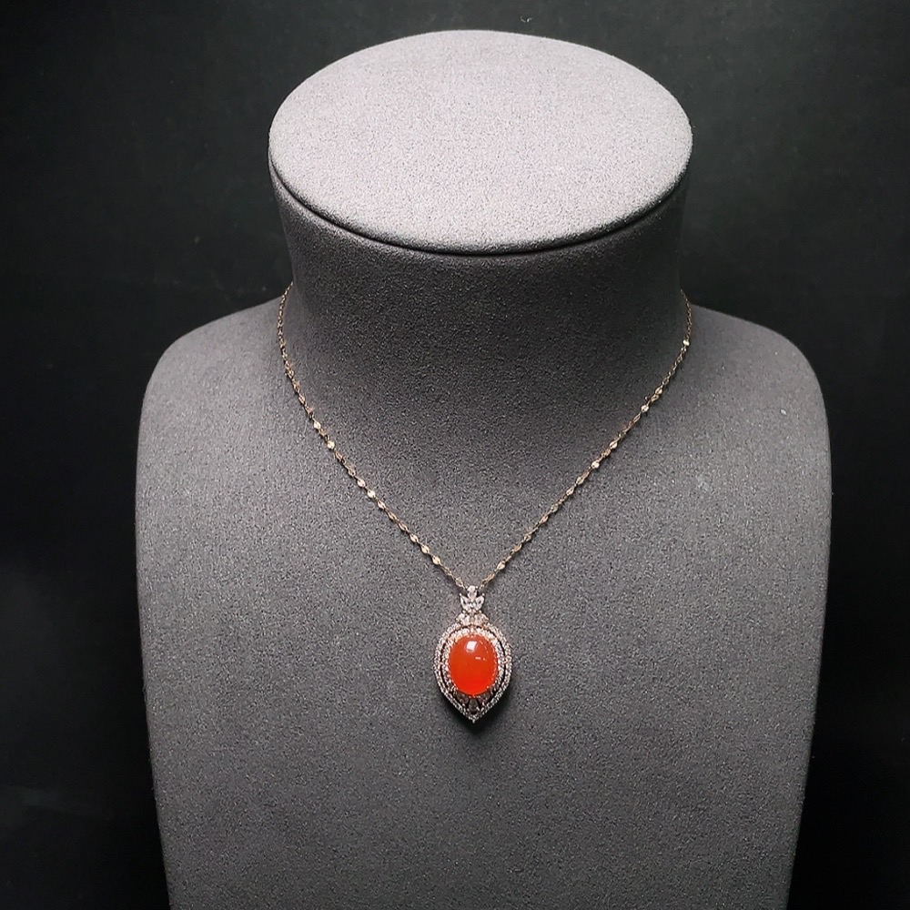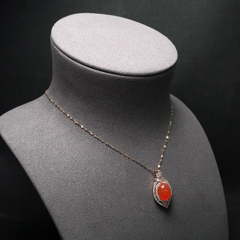 Red Agate Pendant with 18K Gold Chain, Non-Gold and Non-Diamond Parts, Total Weight Approximately 4.64g