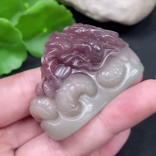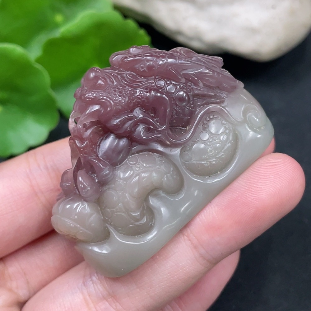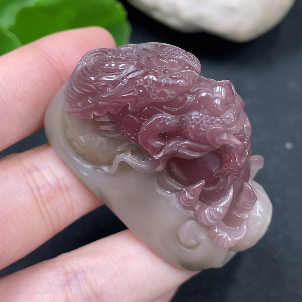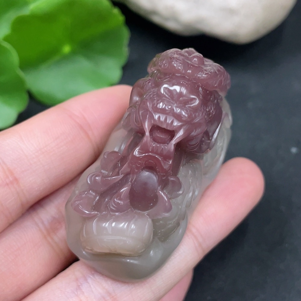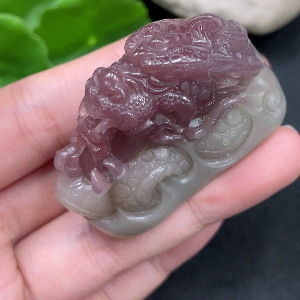 Purple-Green Agate Pendant - Dragon Roaming the World