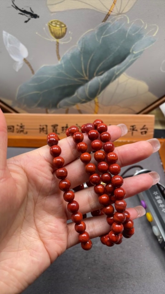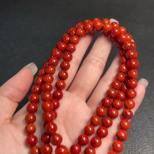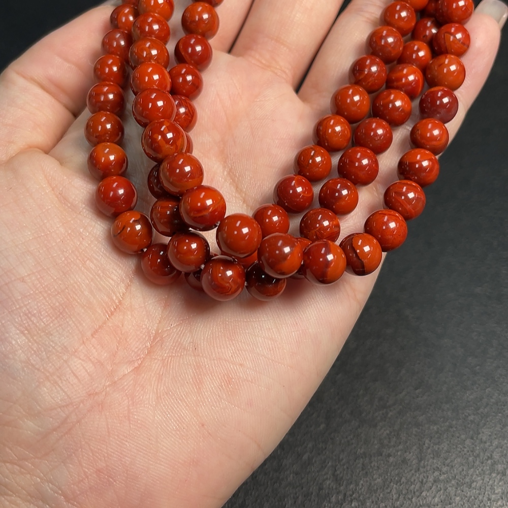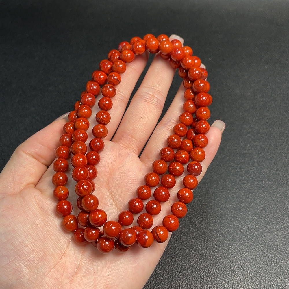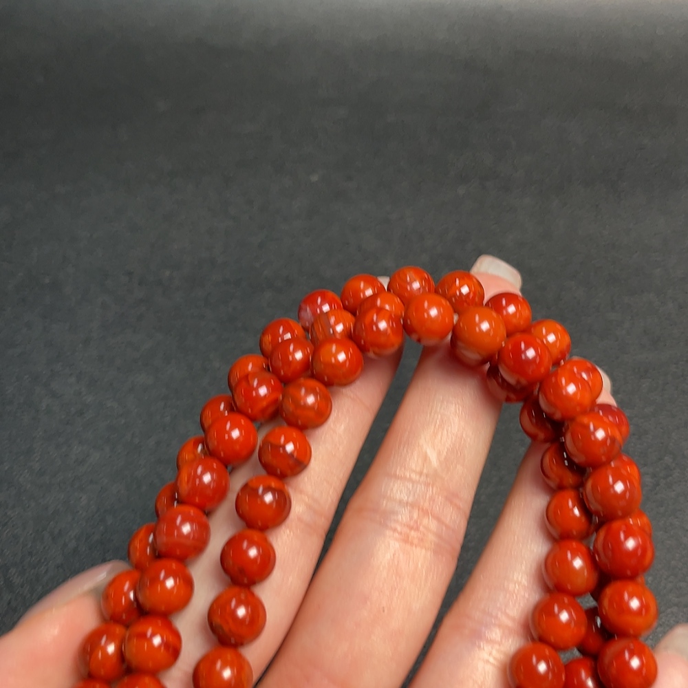 Red Agate Beaded Necklace with Visible Organic Matter, Total Weight Approx. 67.55g, Bead Size ~7.8mm