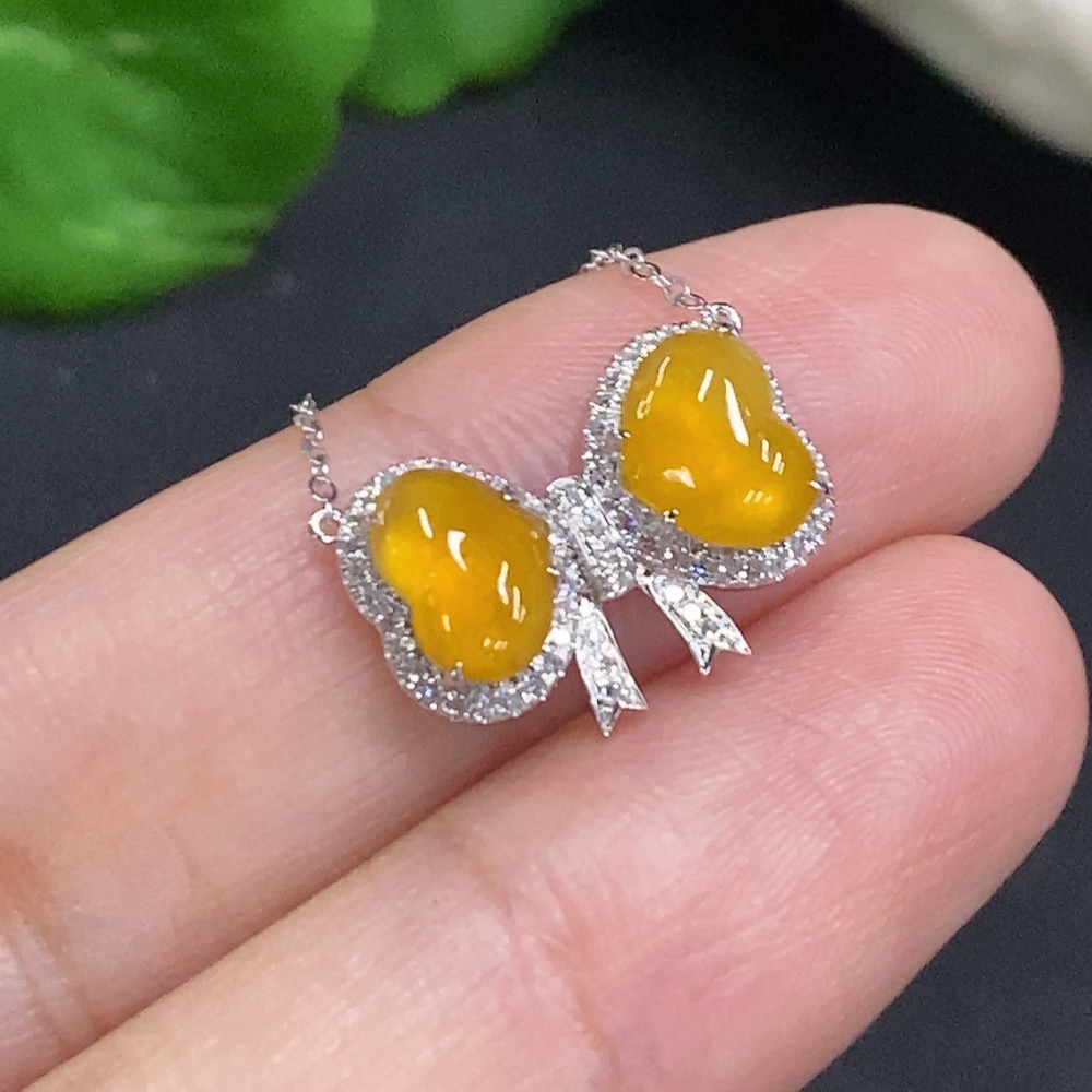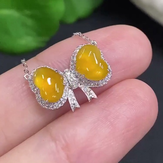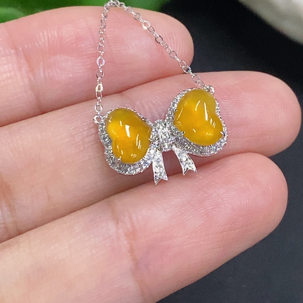 Jadeite Inlaid Pendant (Au36%) Total Weight Including Chain Approx. 1.7g (With Diamond Accents)