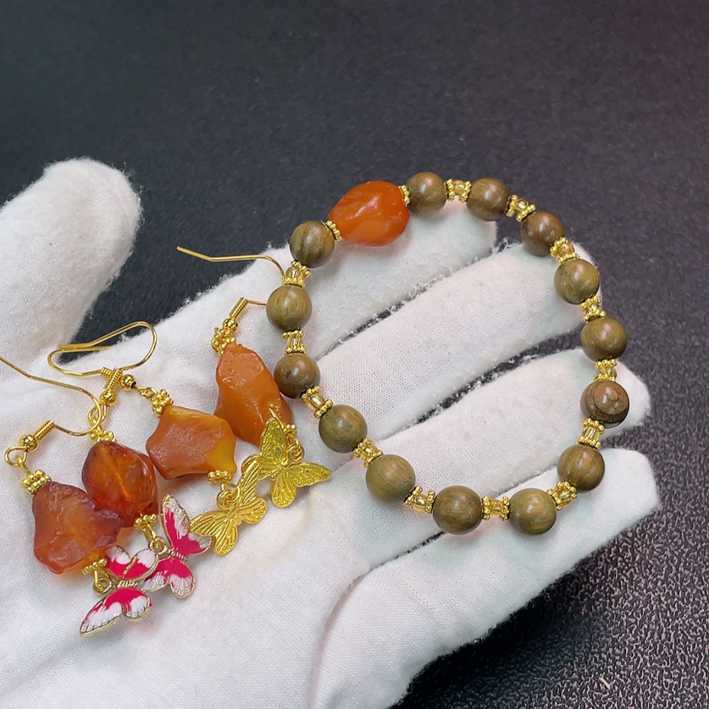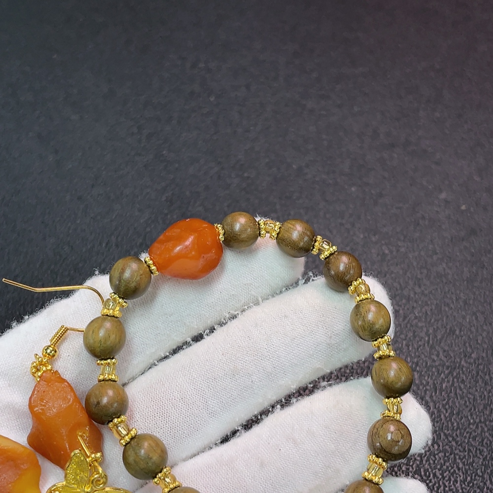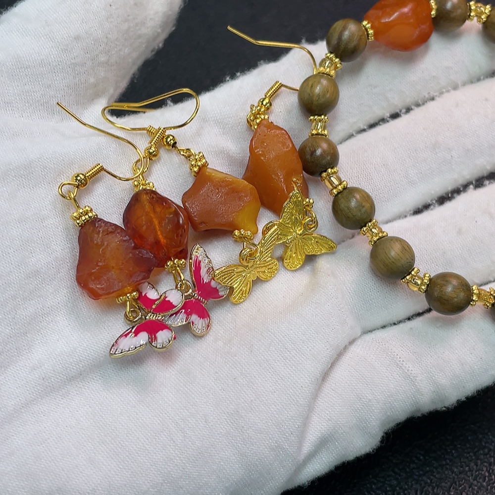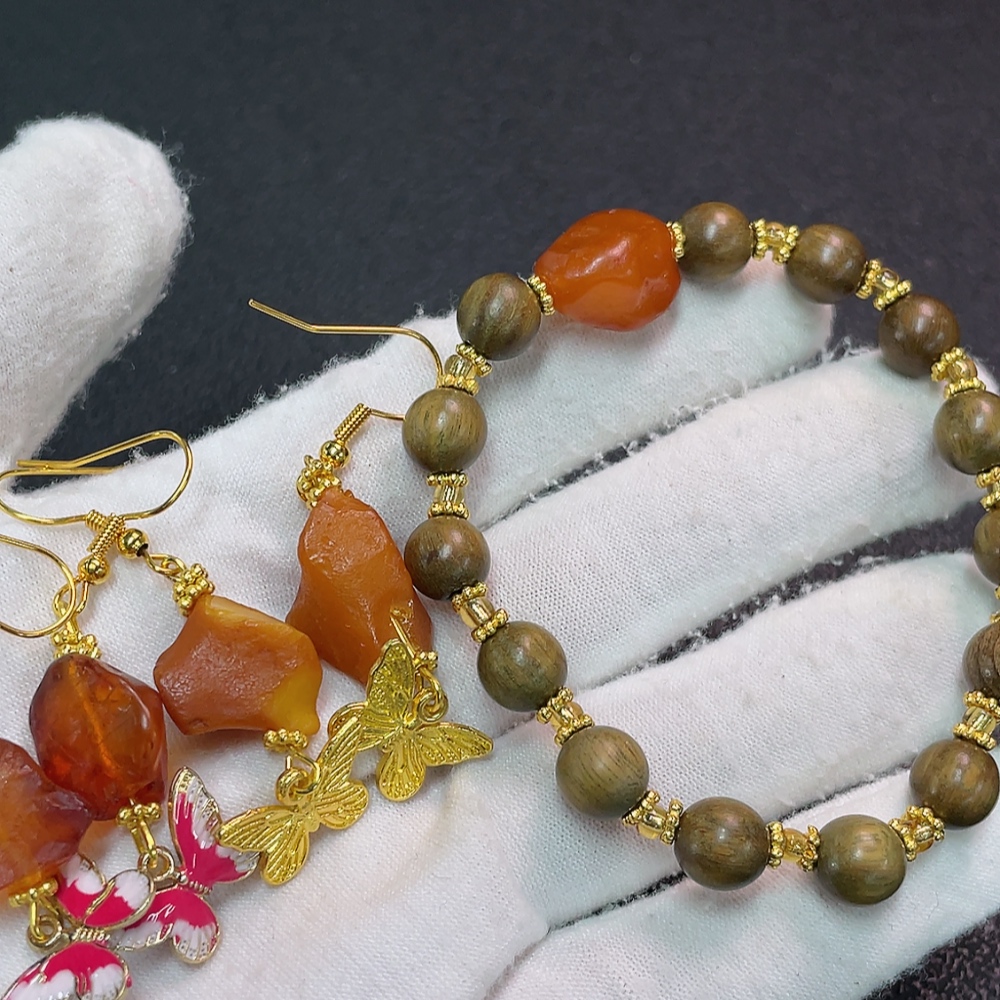 Amber Beeswax Earrings + Bracelet Non-Gold Total Weight Approx. 15.26g Sell as a Lot