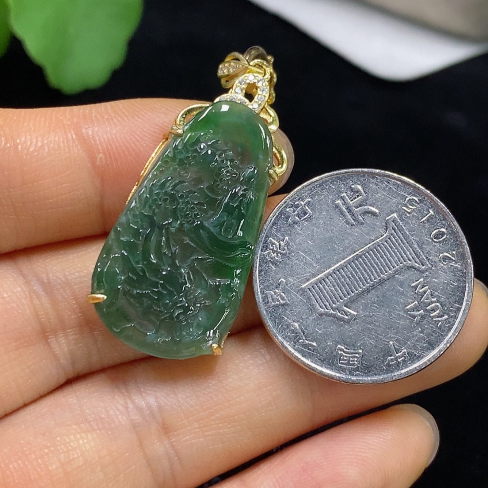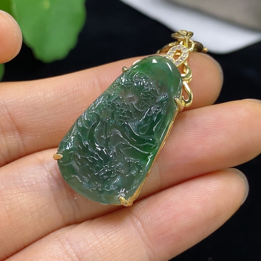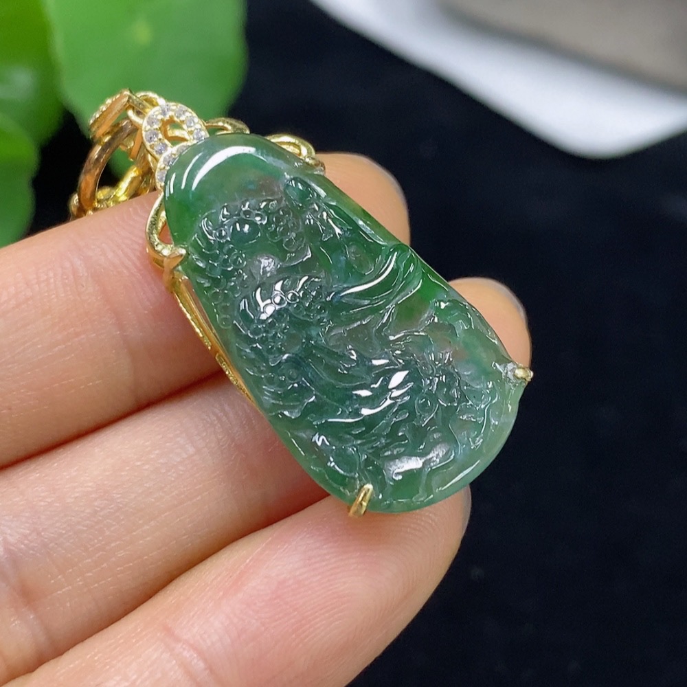 Jadeite Dragon Pendant Inlaid Non-Gold Total Weight Approx. 8.23g (Including Rope Weight)