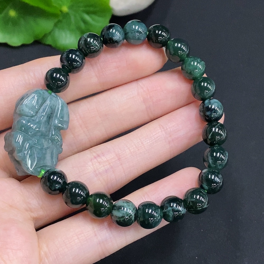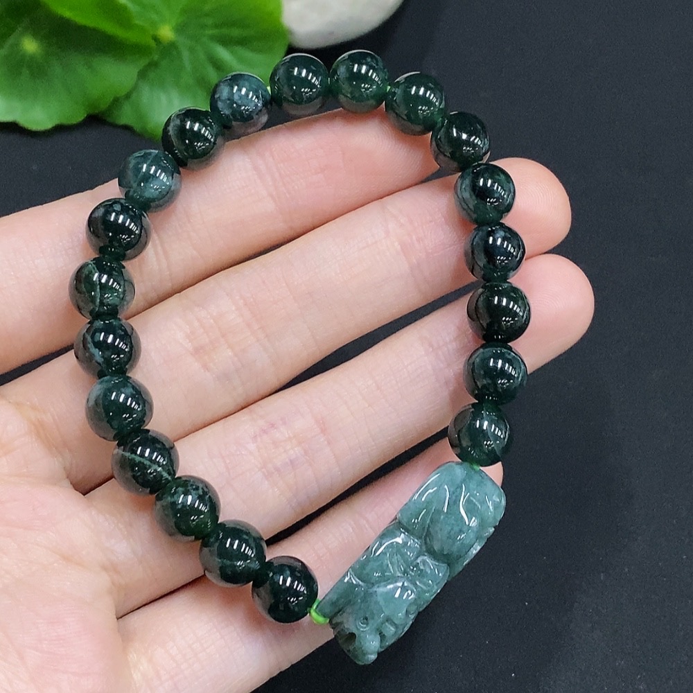 Jadeite Pi Xiu Bracelet, Total Weight Approx. 27.7g, Size 7.8mm