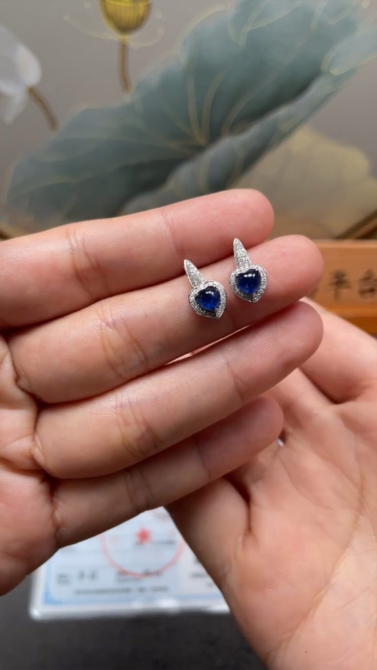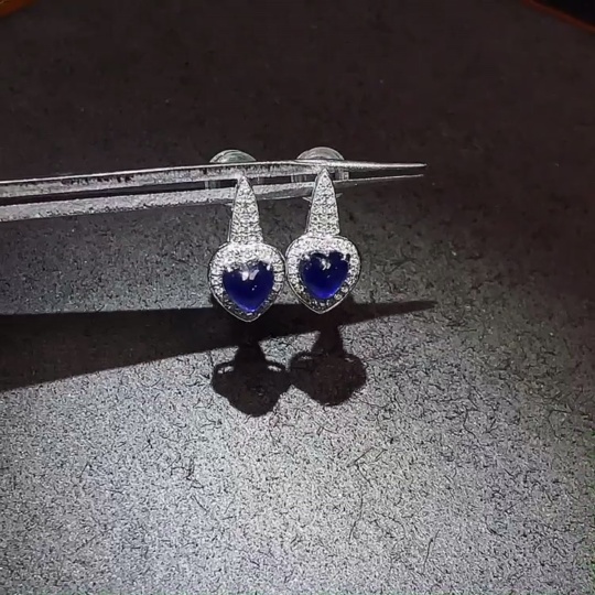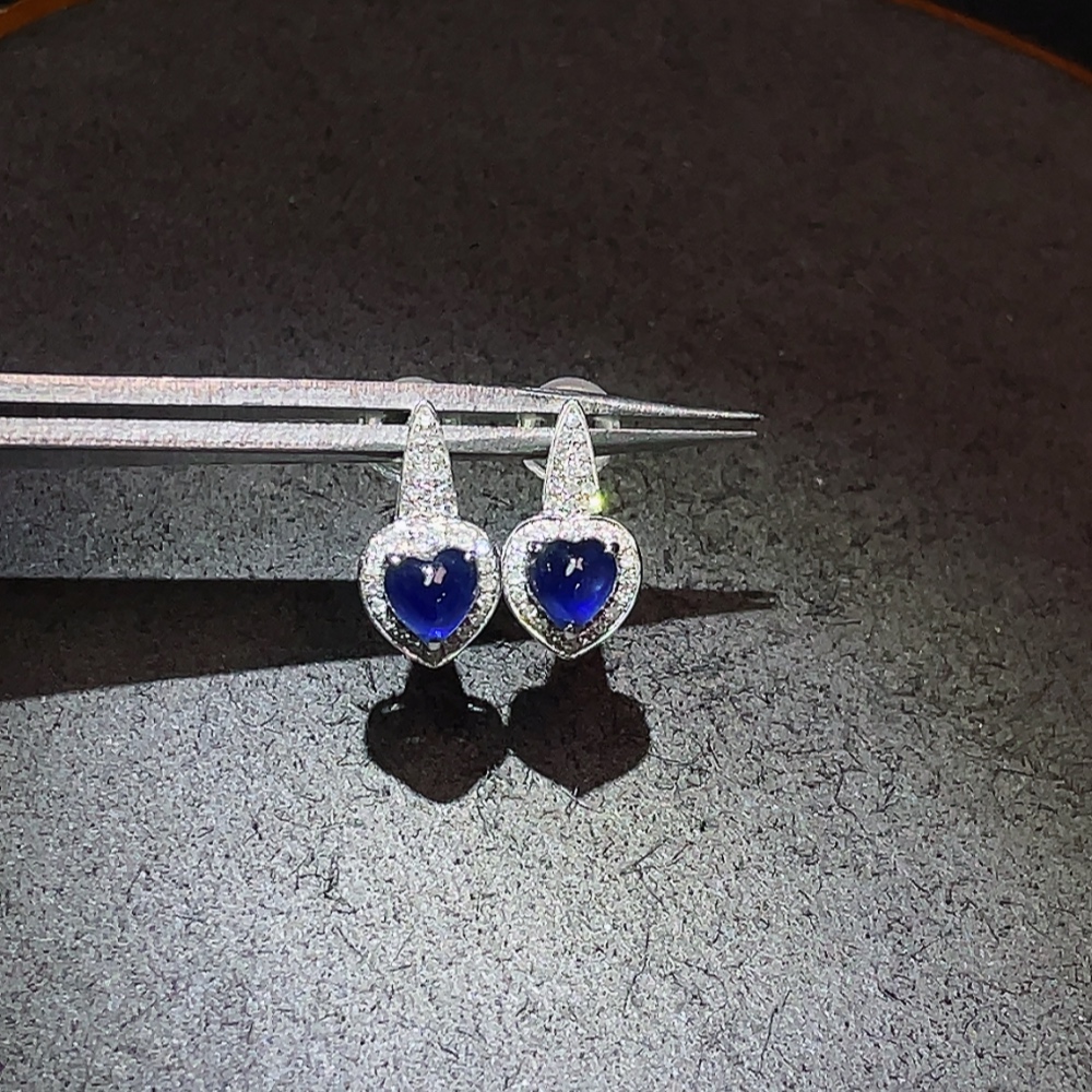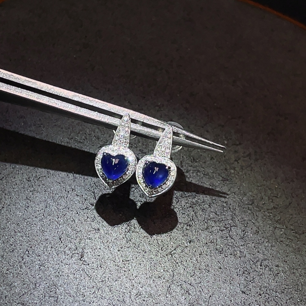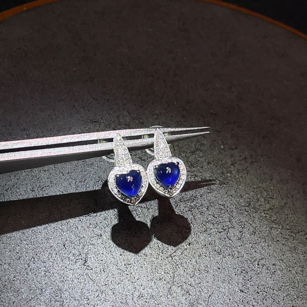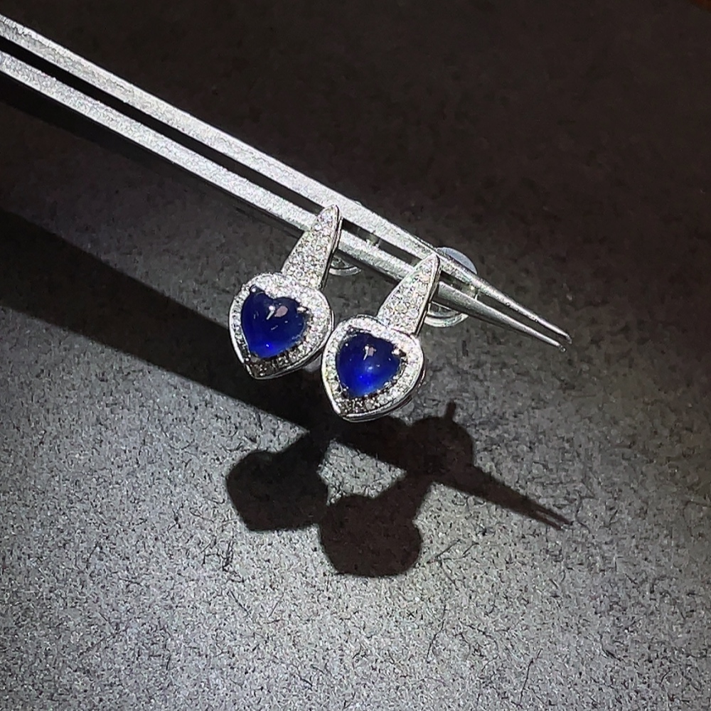 Sapphire earrings 18K gold with diamond accents, total product weight approximately 1.51g