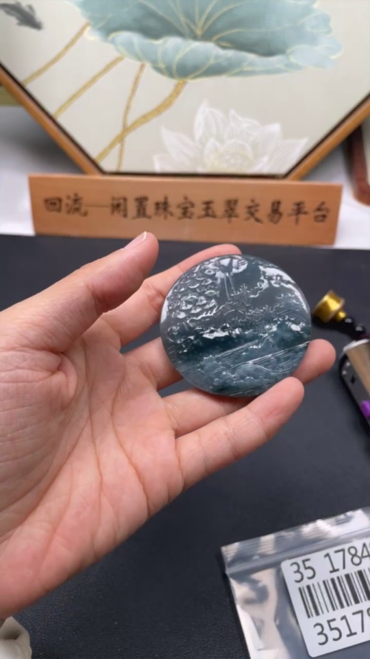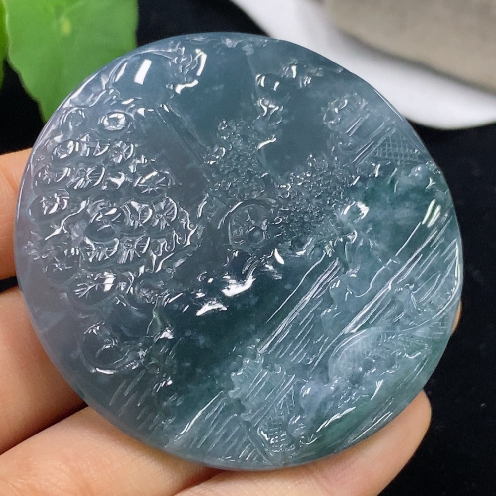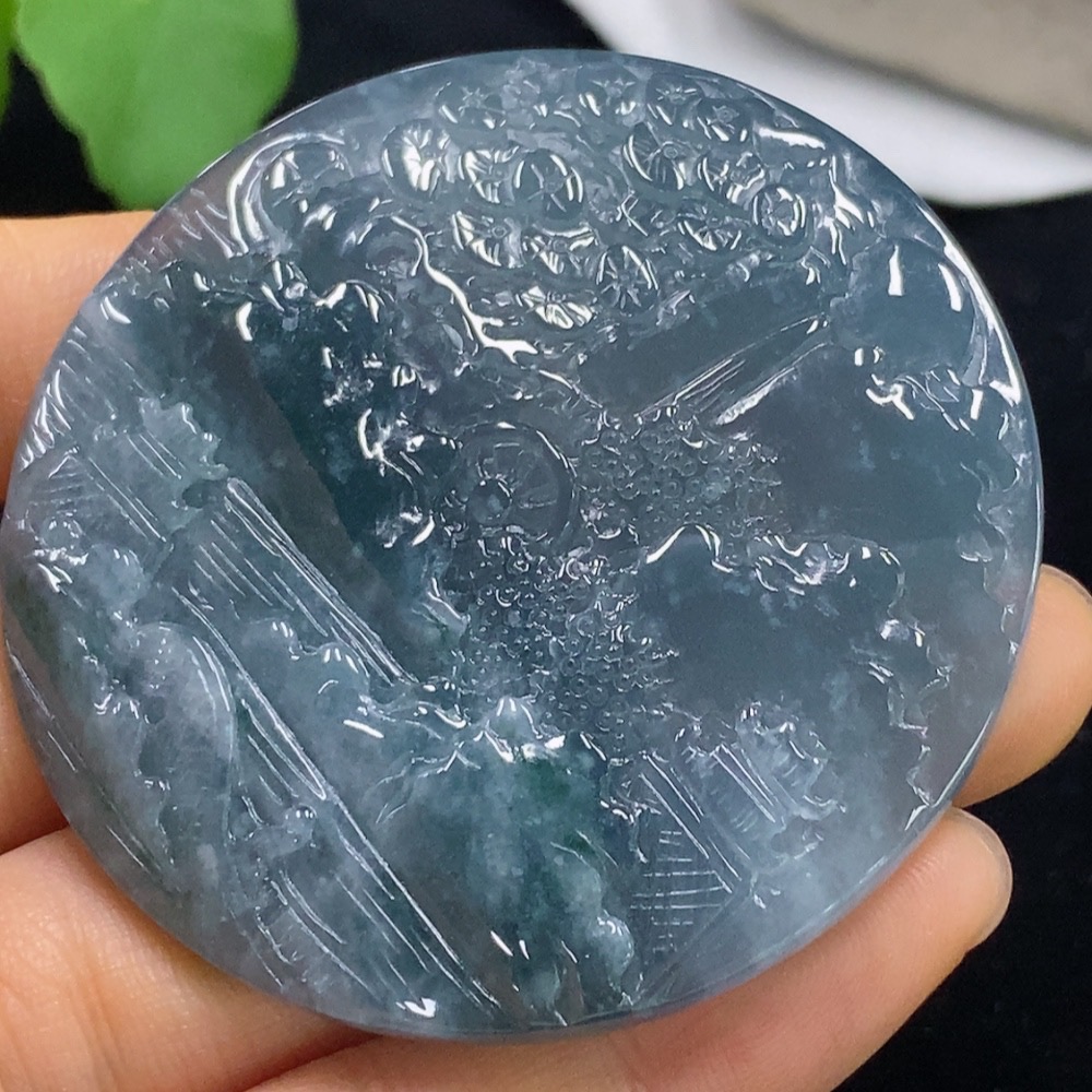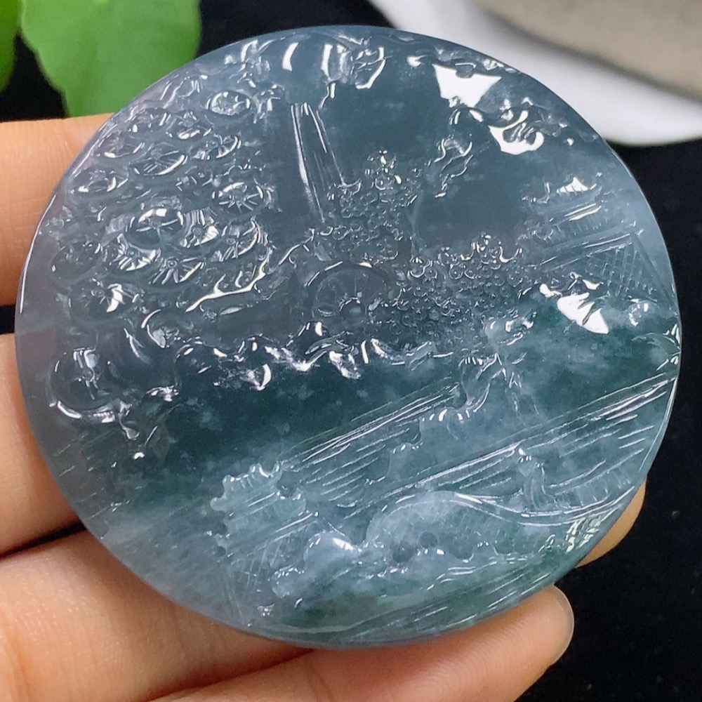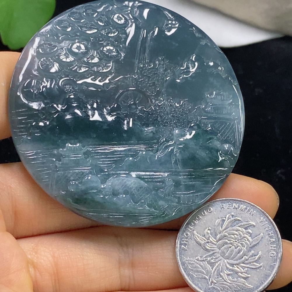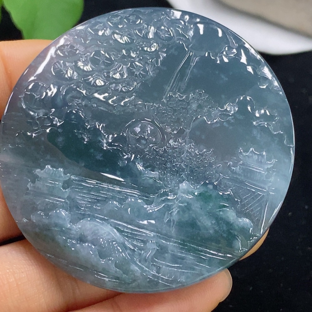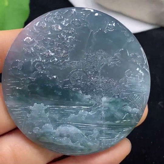 Jadeite Landscape Pendant, Total Weight Approximately 45.12 Grams
