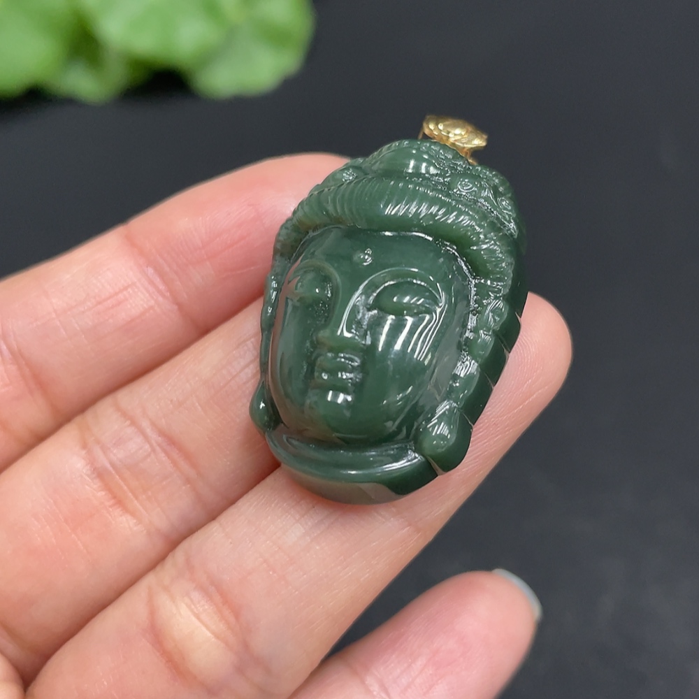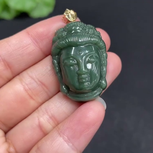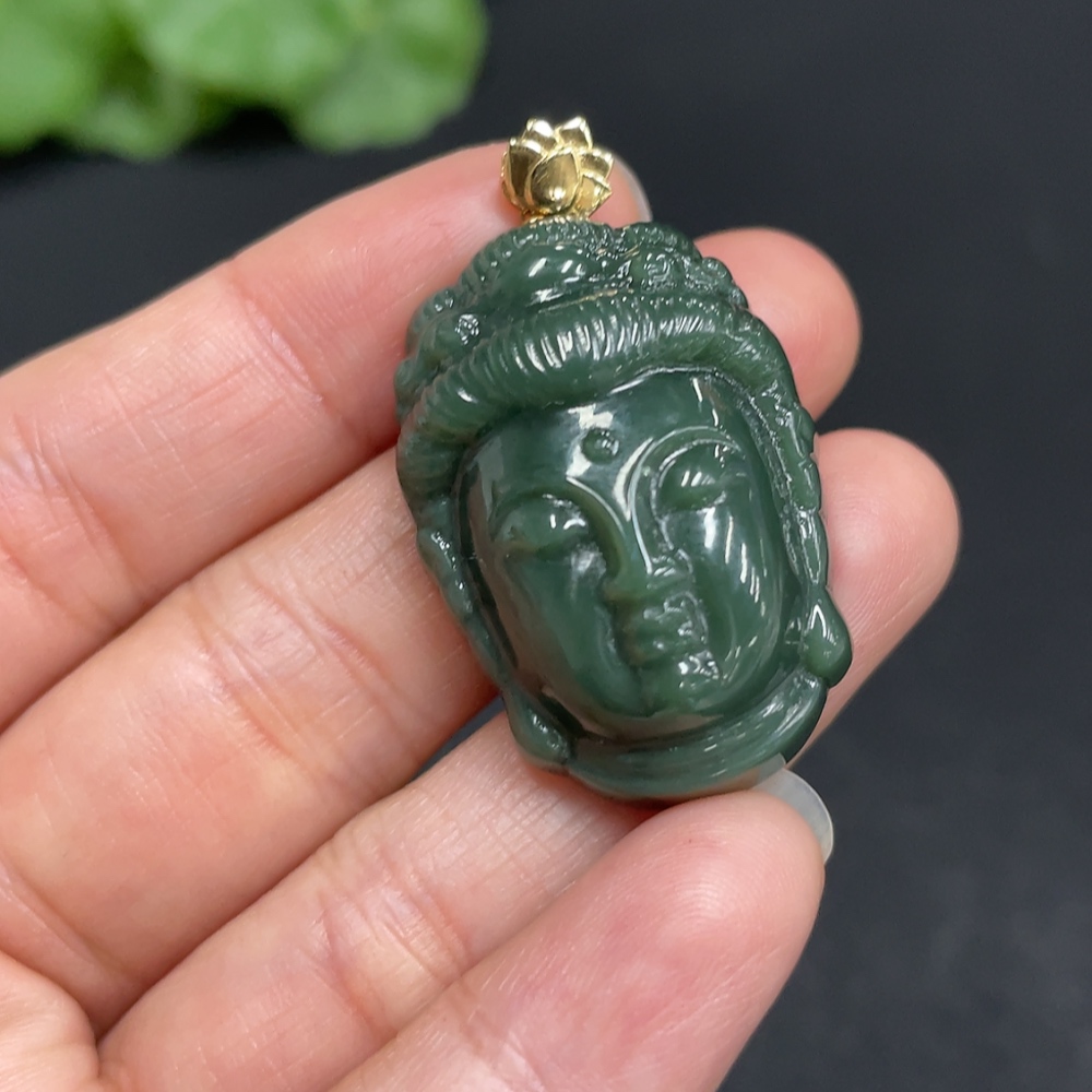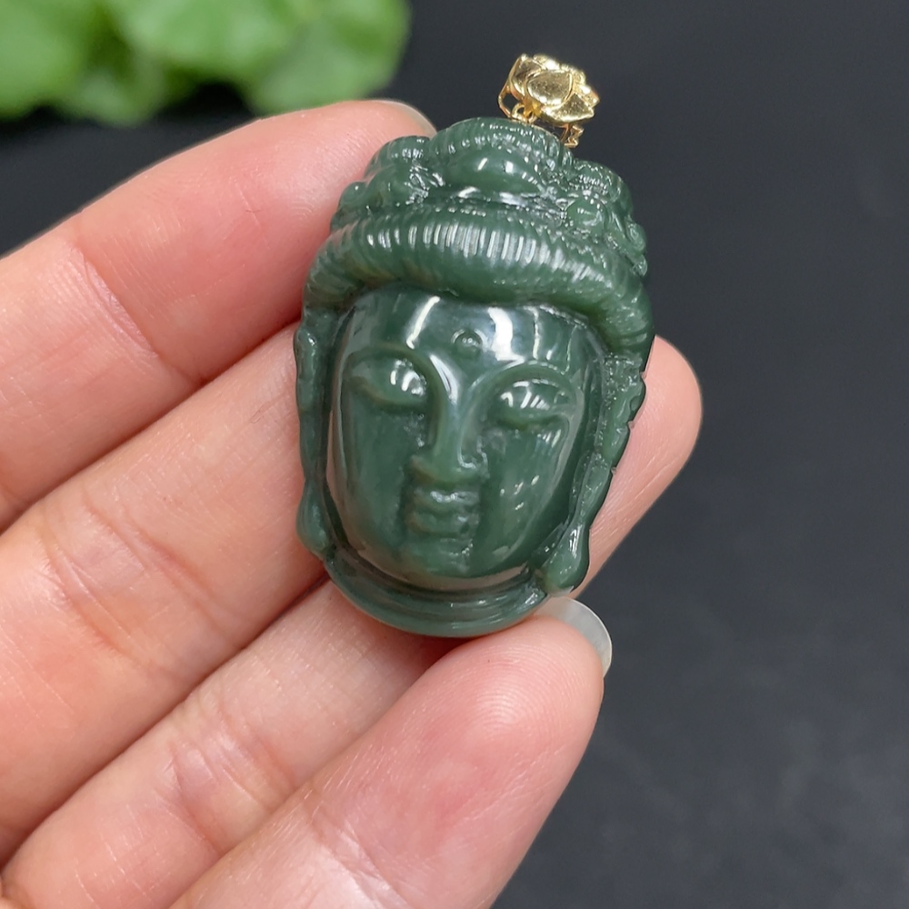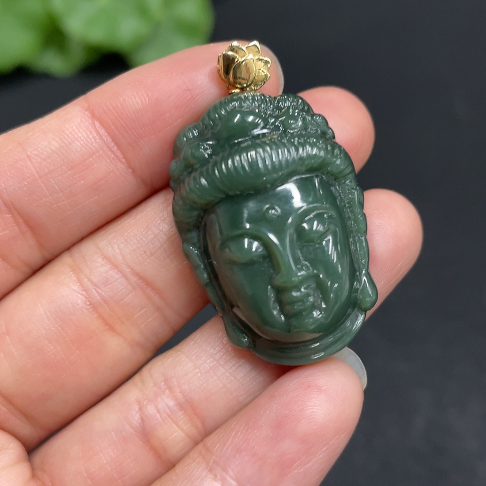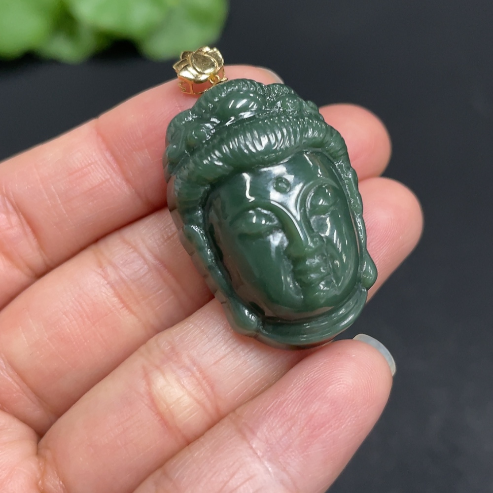Hetian Jade Pendant Guanyin 18k Gold Clasp Total Weight Approx. 12.2g