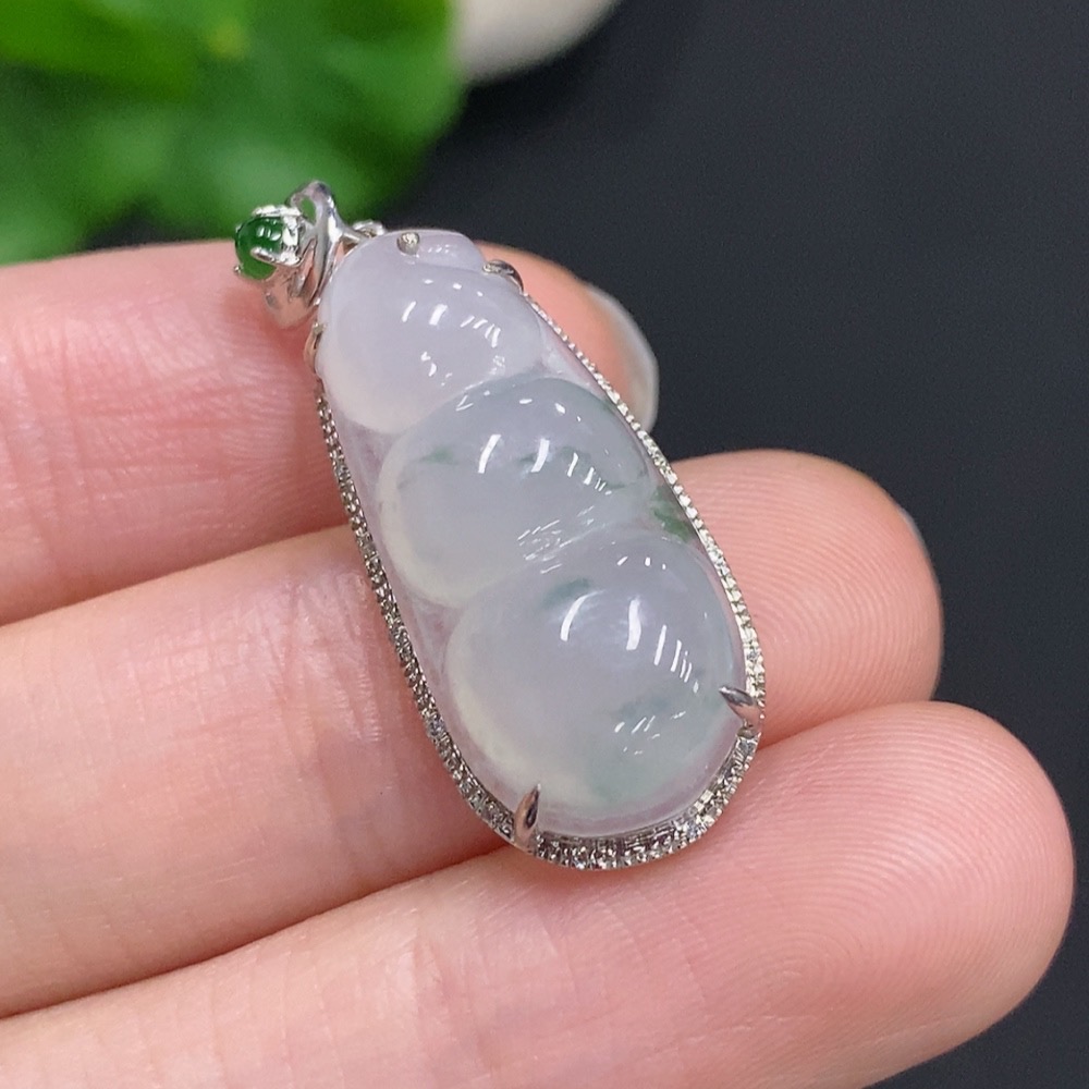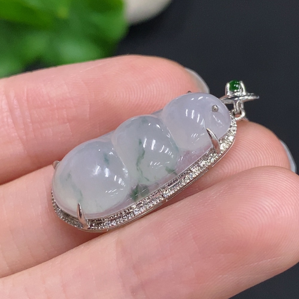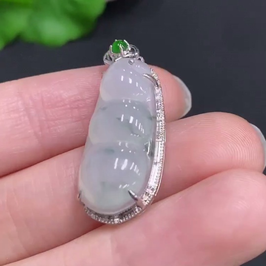 Jadeite Lucky Bean Pendant 18k Gold Total Weight Approx. 3.63g Diamond Accents