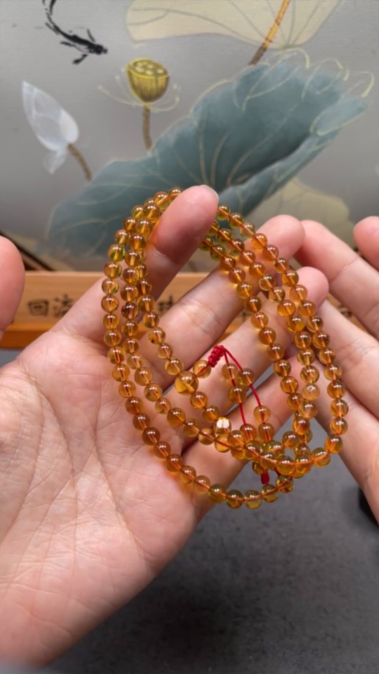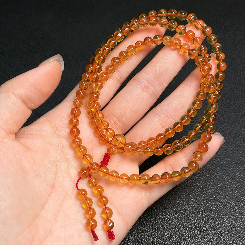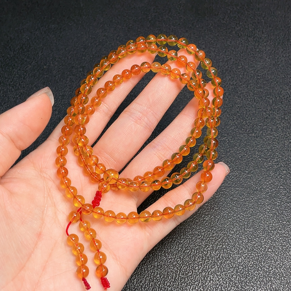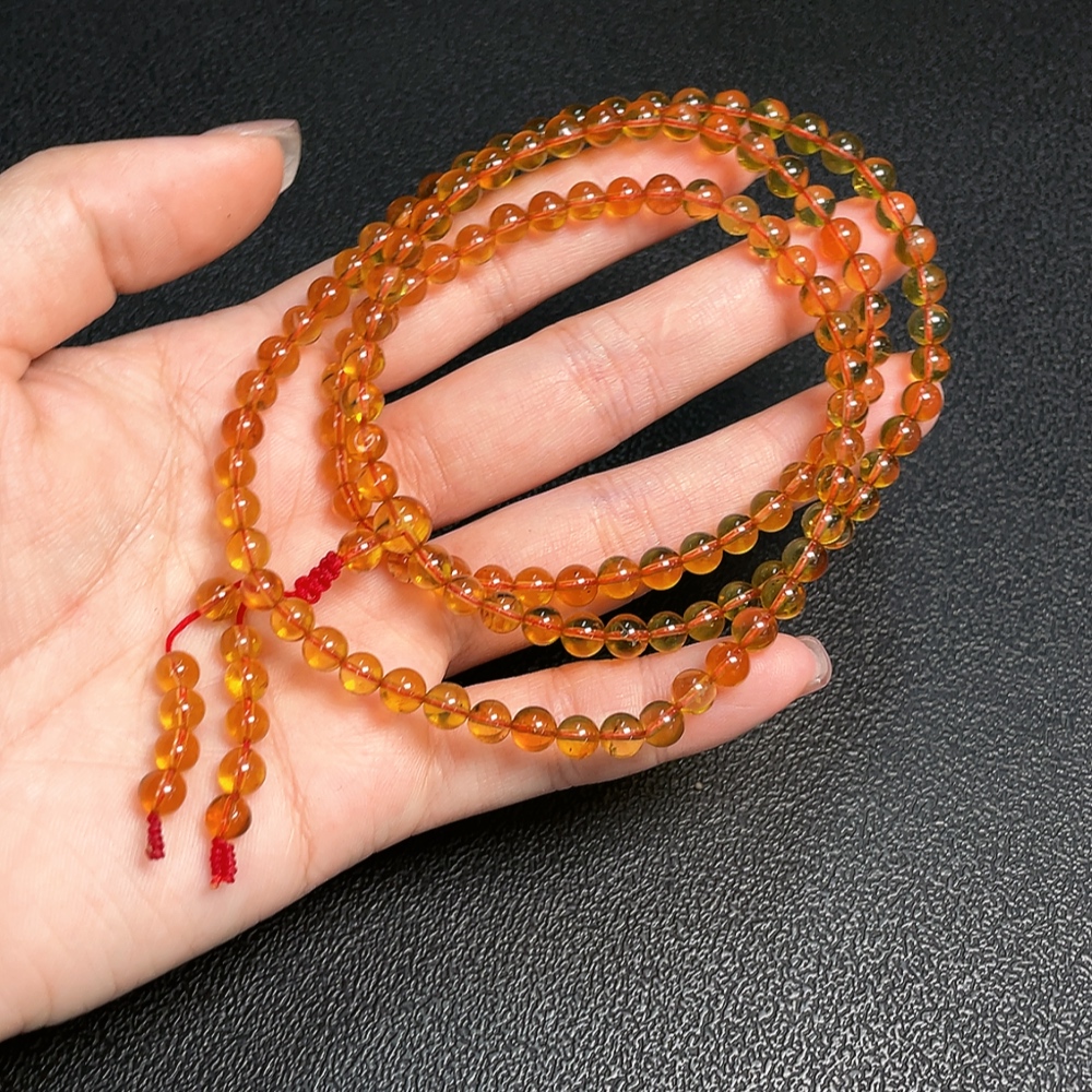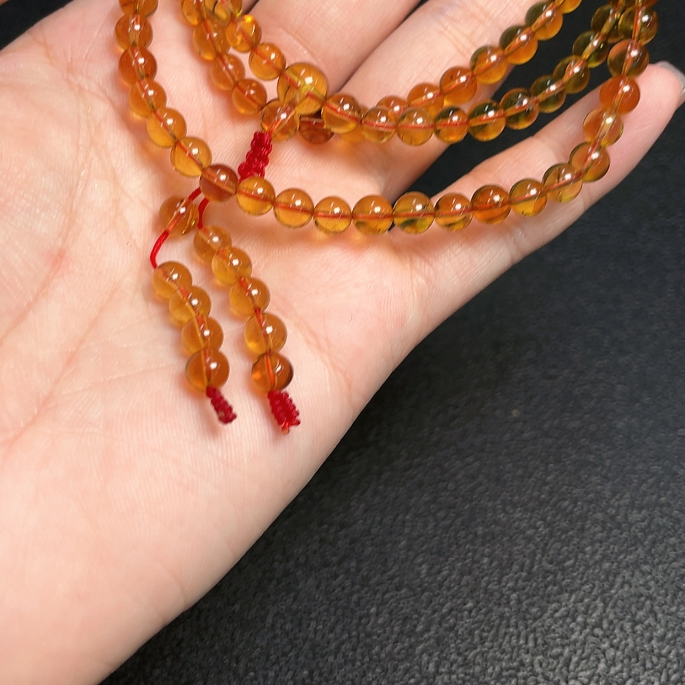 Amber Beeswax Bead Necklace, Total Weight Approx. 10.27g, Size About 4.9mm