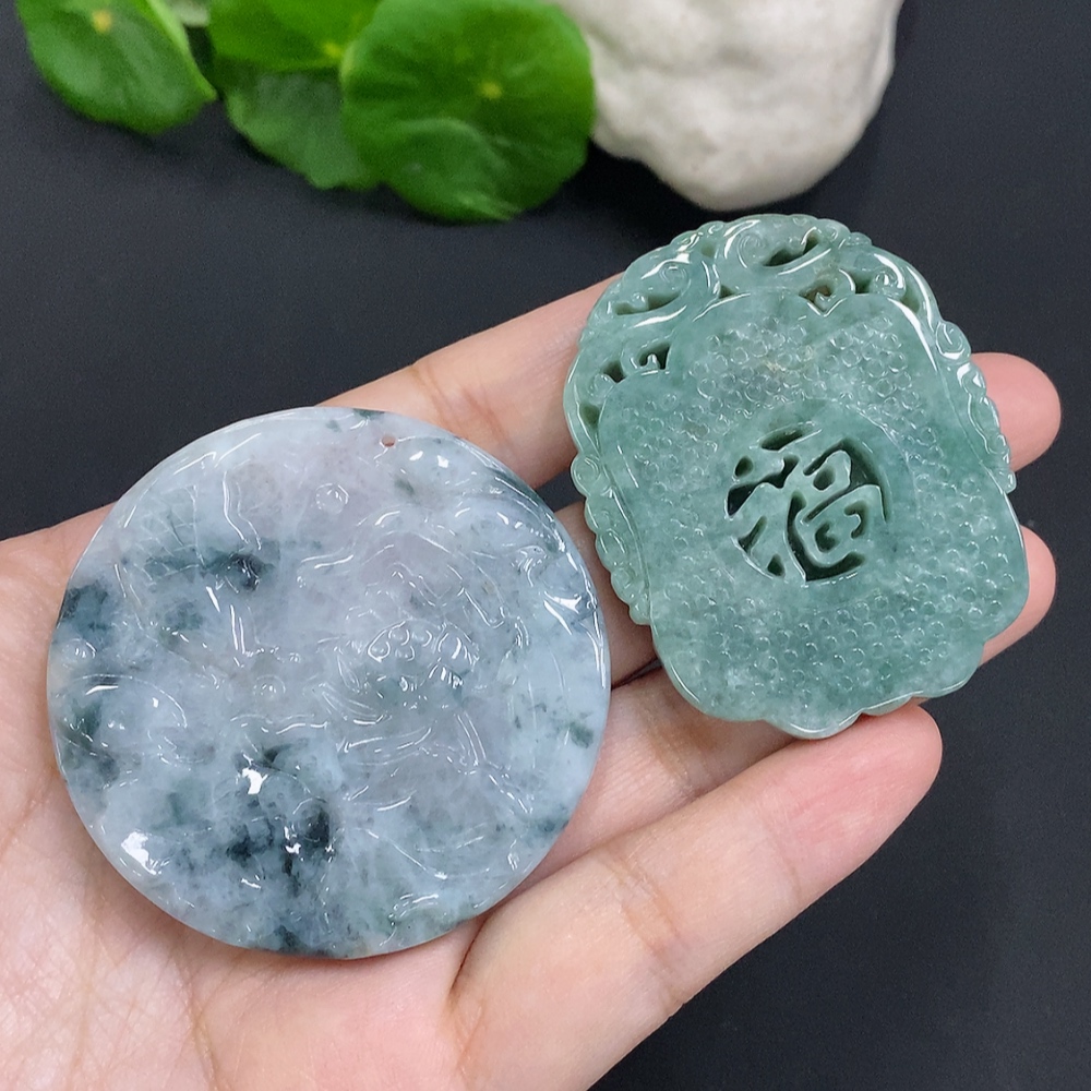 Jadeite Pendants Sell as a Lot (with other mineral components)