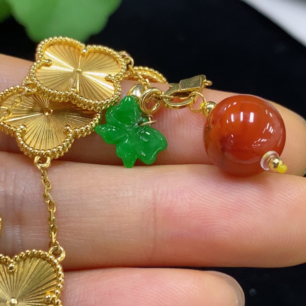 Jadeite Inlaid Bracelet with Non-A Grade Beads, 18k, Total Weight Approx. 6.13g