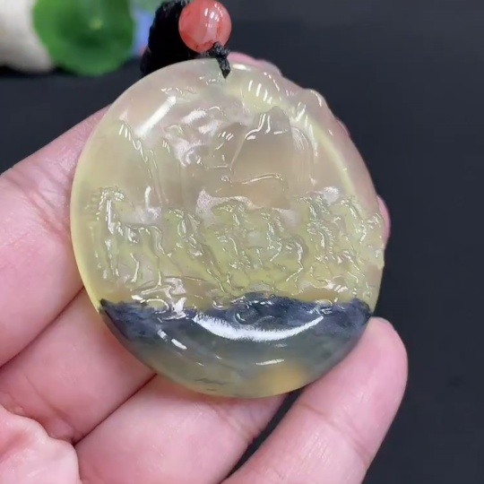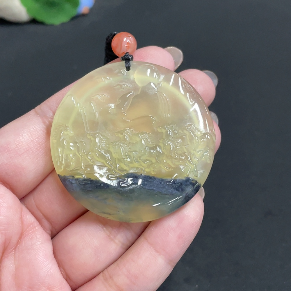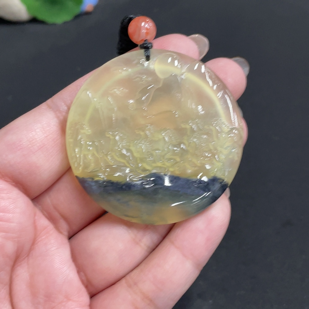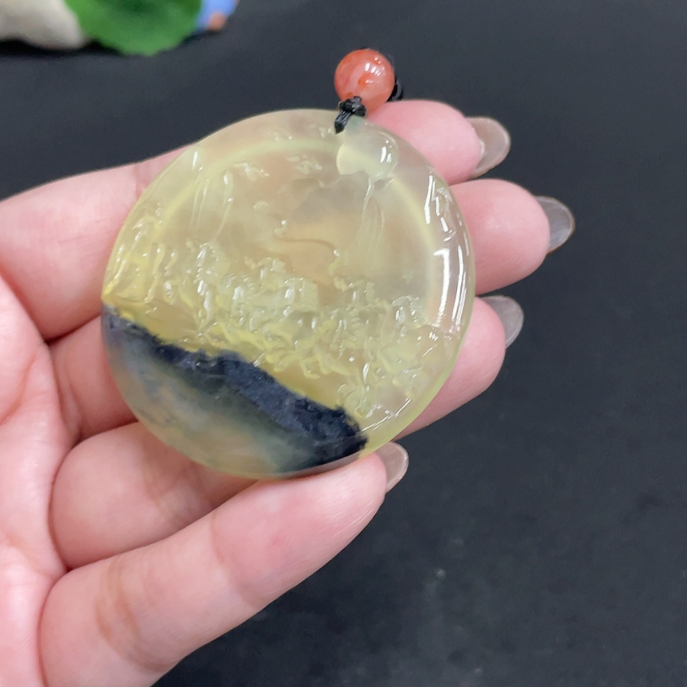 Xiuyu (serpentine jade) pendant with landscape design, non-Xiuyu bead included, total weight approx. 32.6g (including cord)