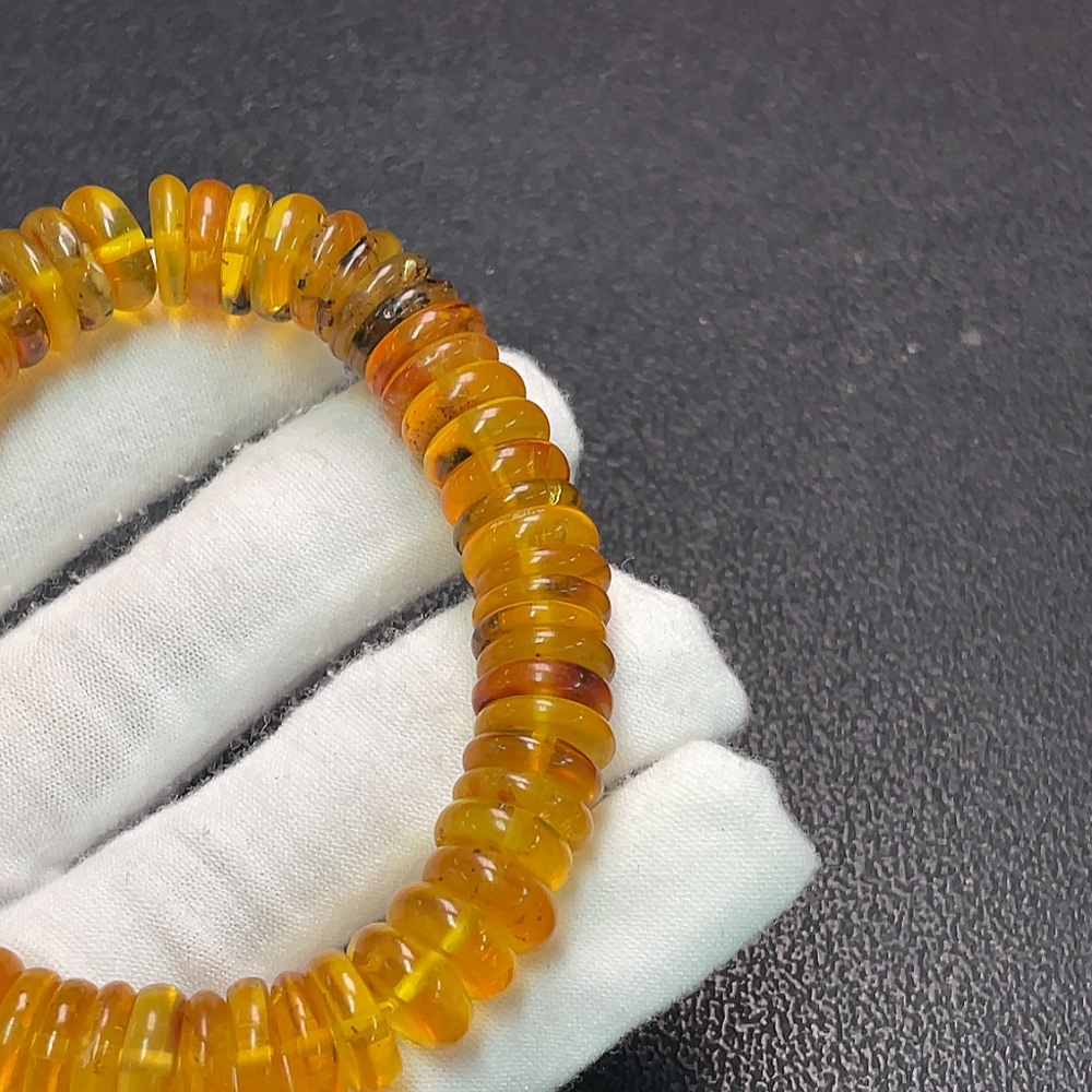 Amber and beeswax bracelet, total weight approximately 18.55g, bead size about 11.2mm