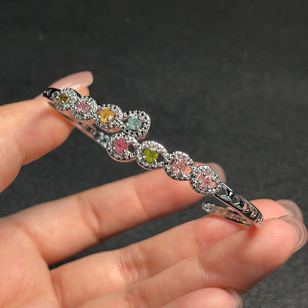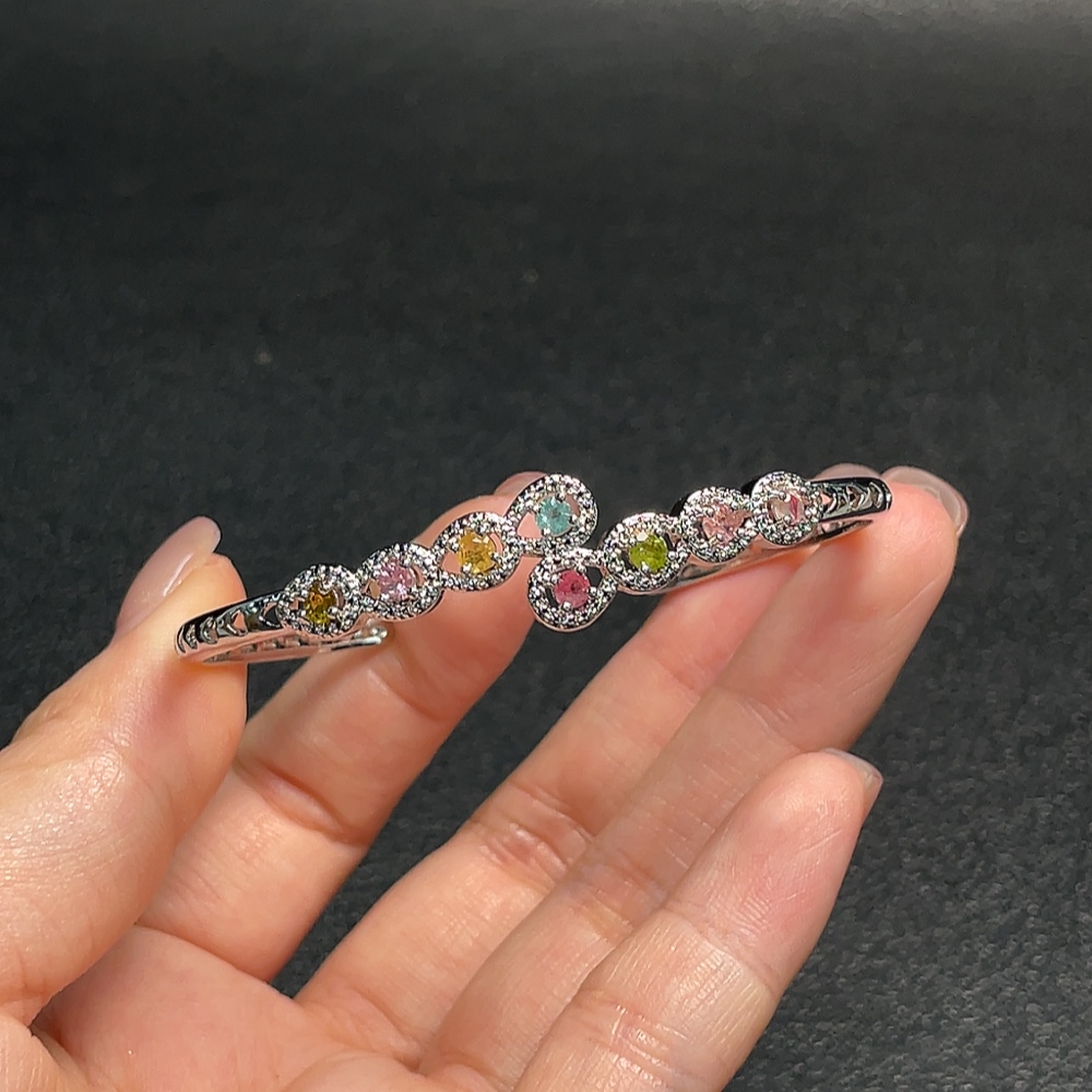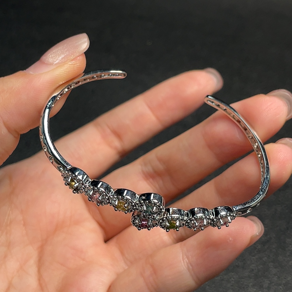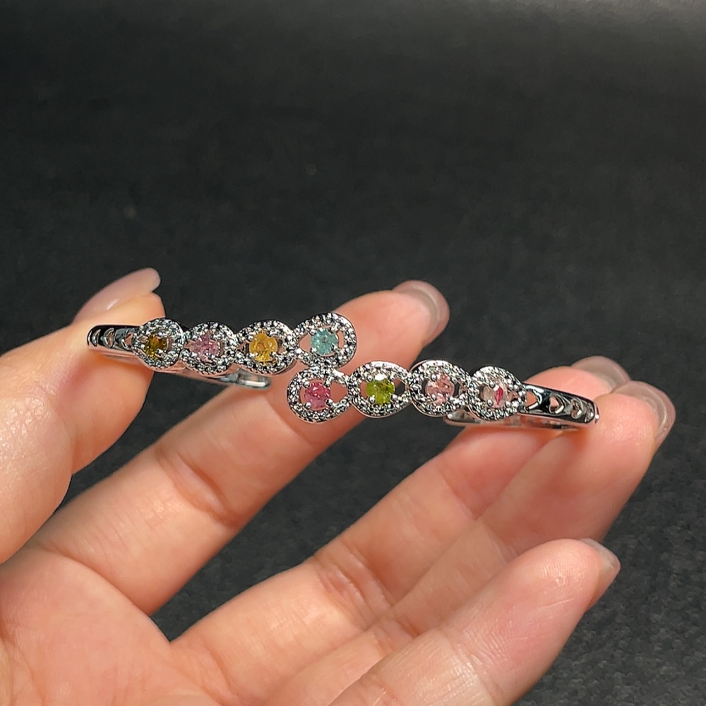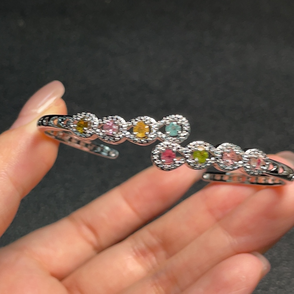 Tourmaline bracelet with visible organic matter, adjustable non-metal opening, total weight approx. 7g