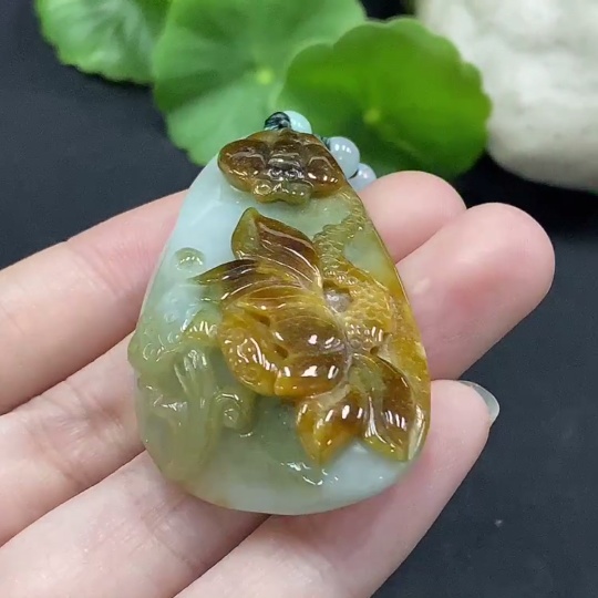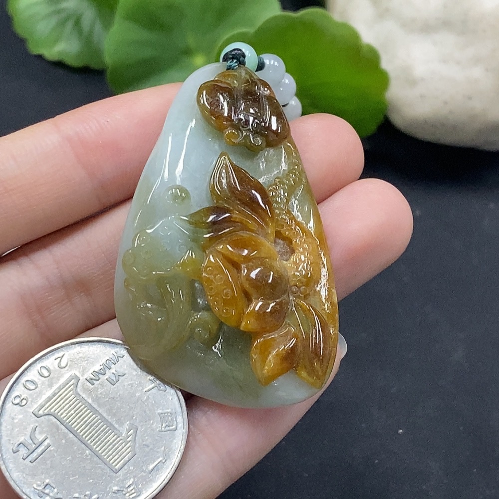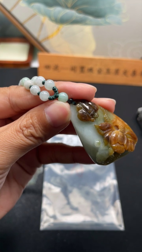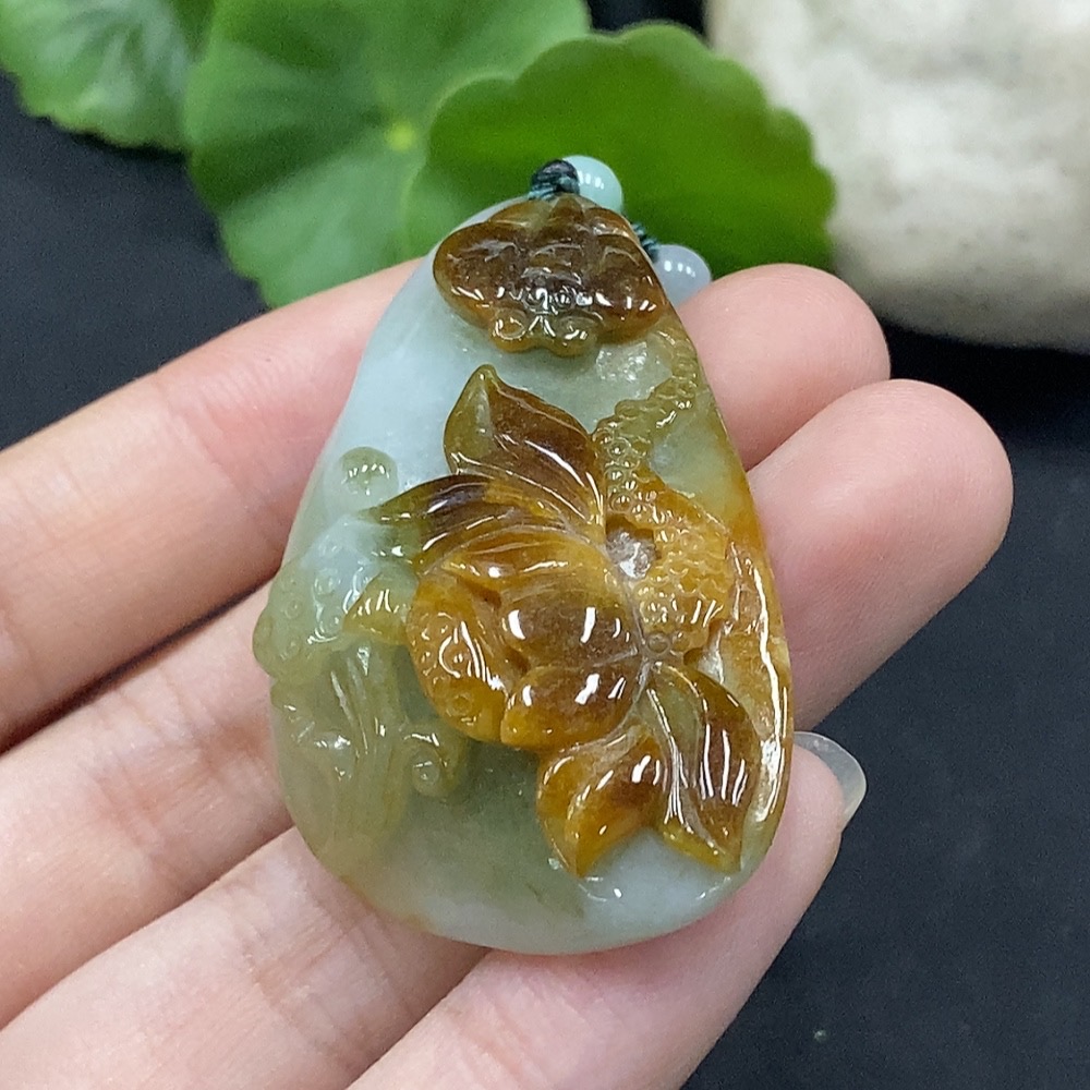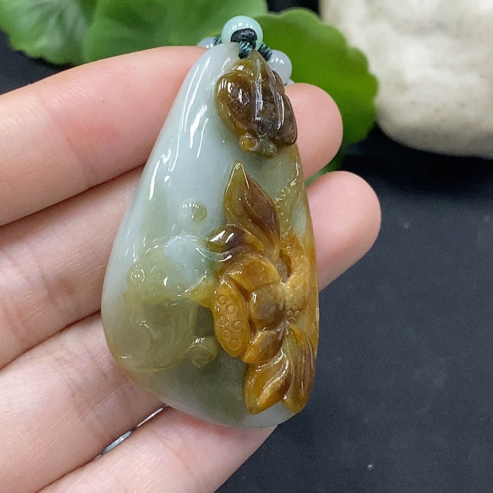 Jadeite Lotus Pendant Total Weight Approx. 50.4g Including Chain