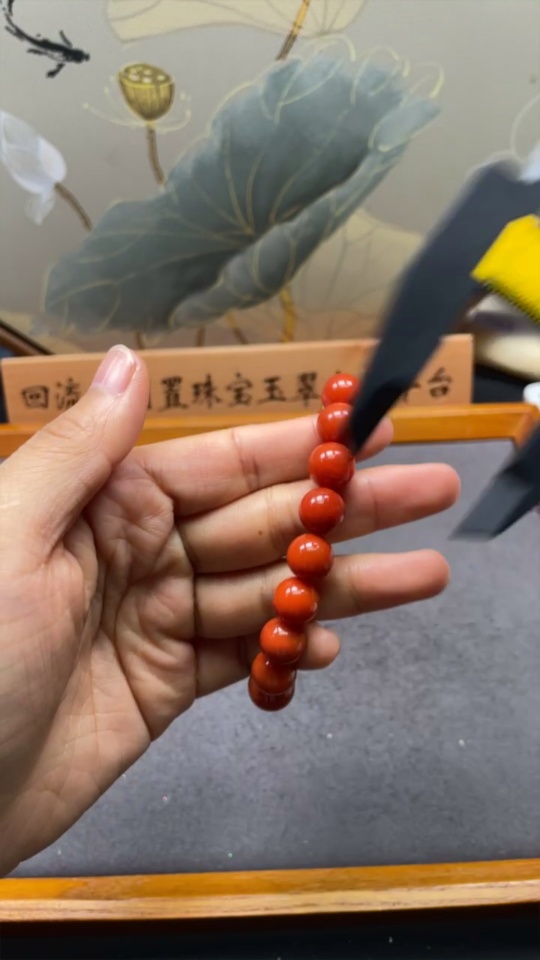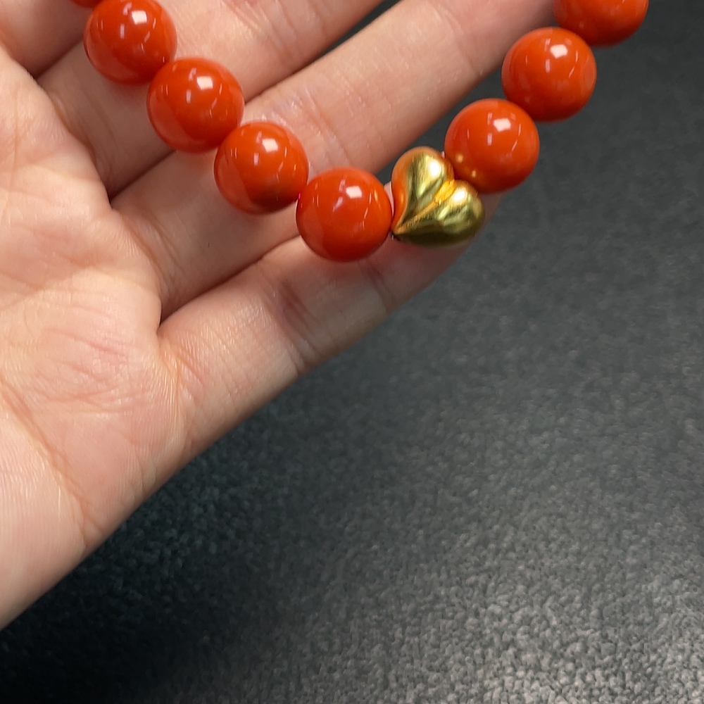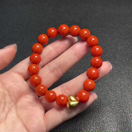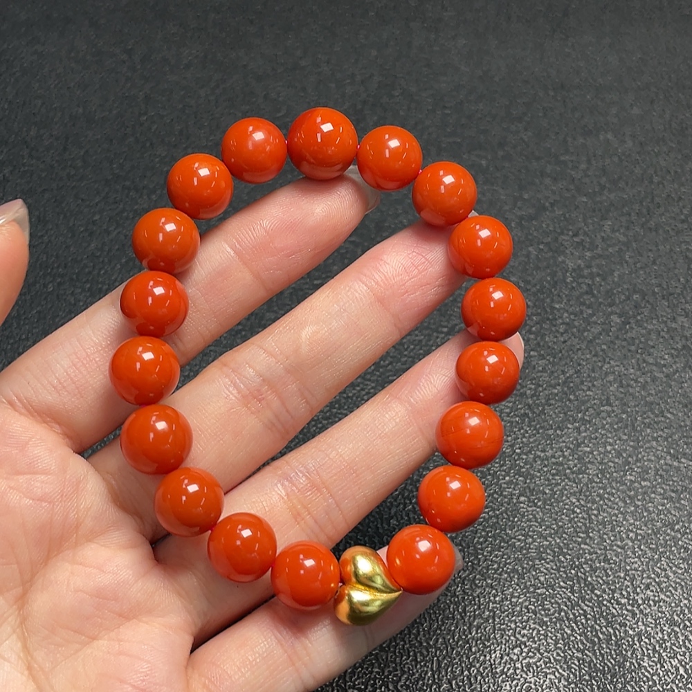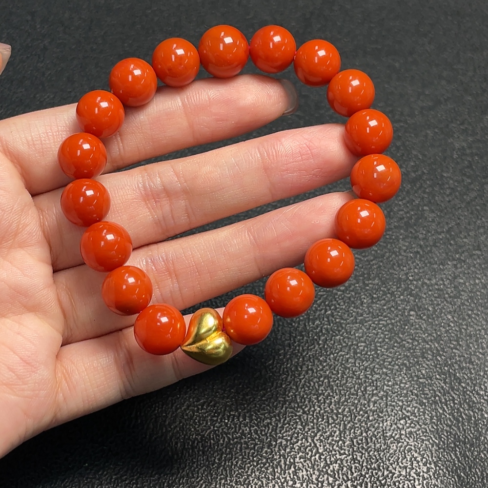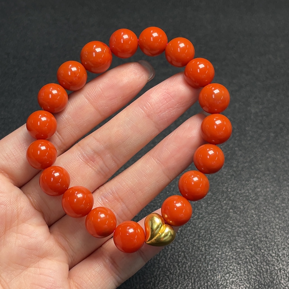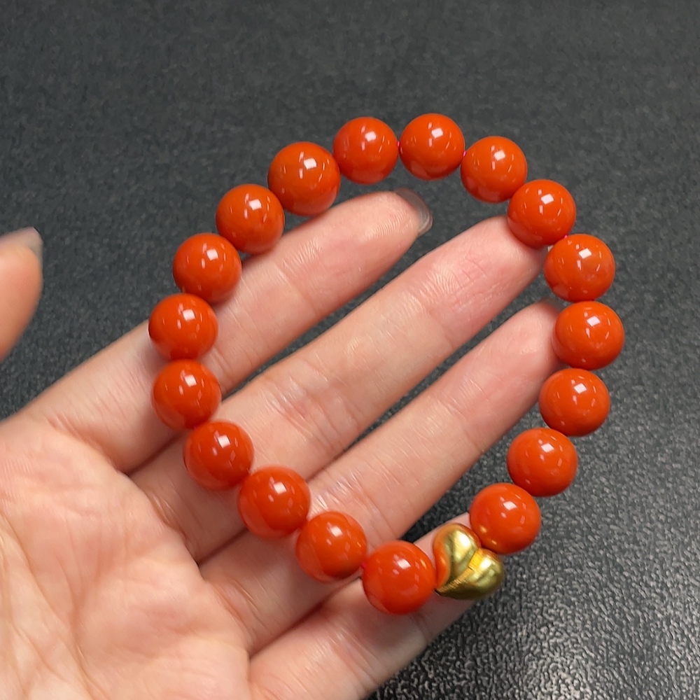 Red Agate Bracelet with Visible Organic Matter, Total Weight Approx. 31.43g, Size About 10.7mm, Non-Gold