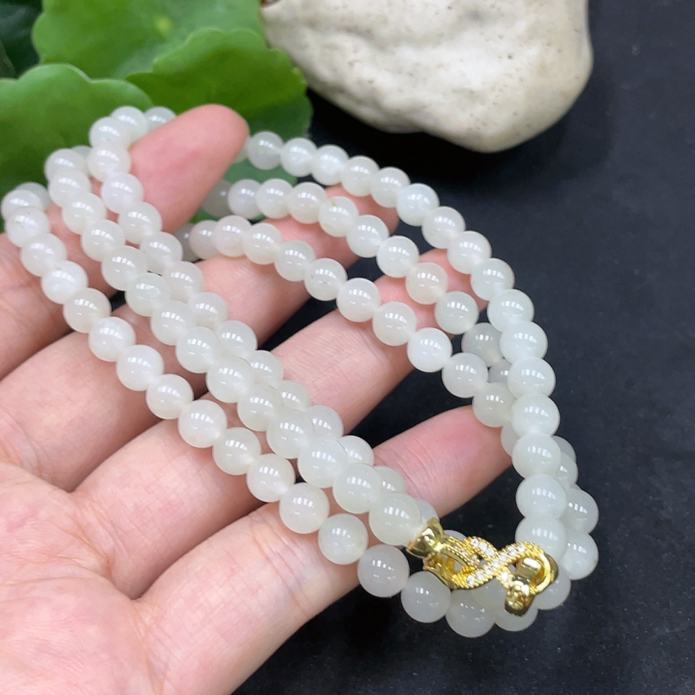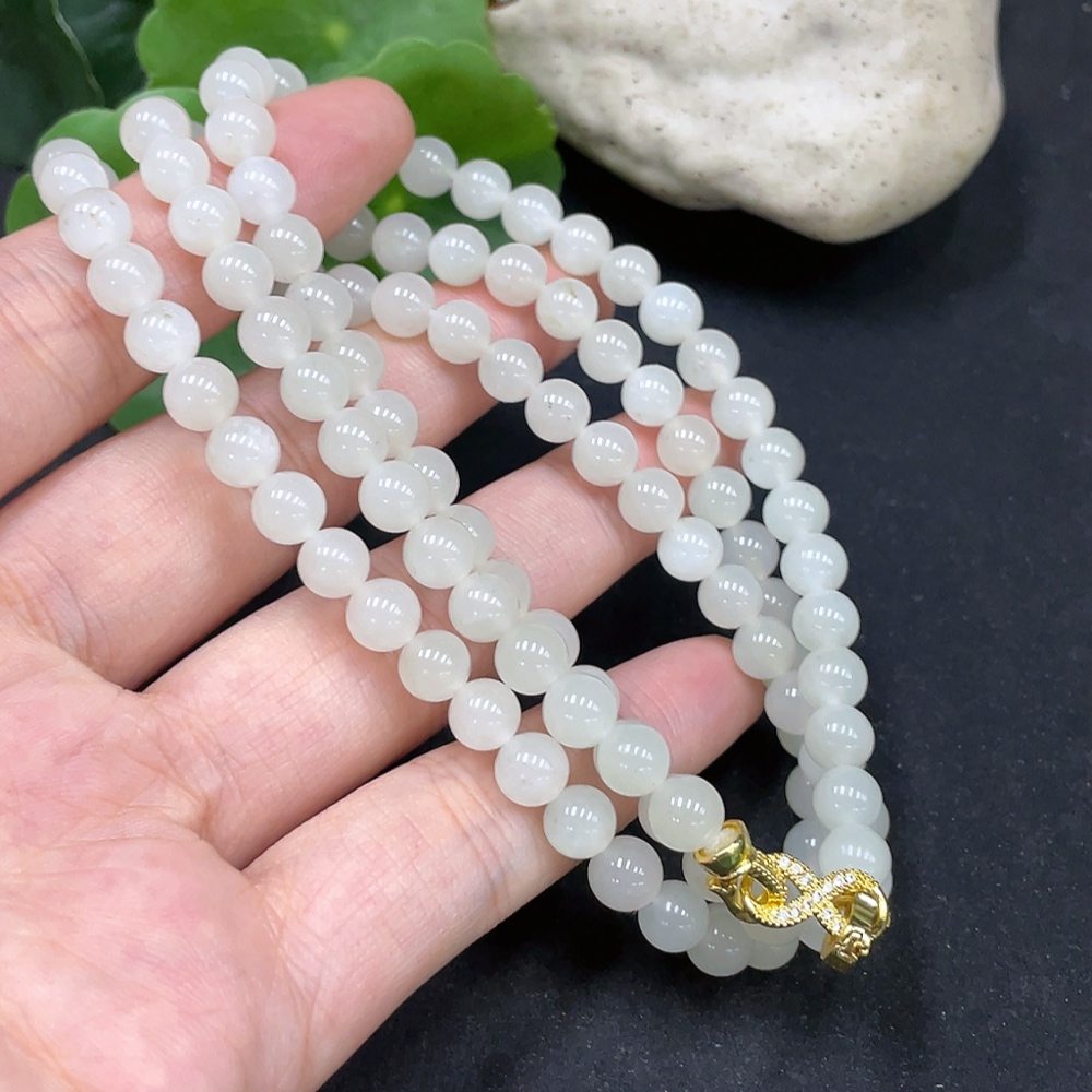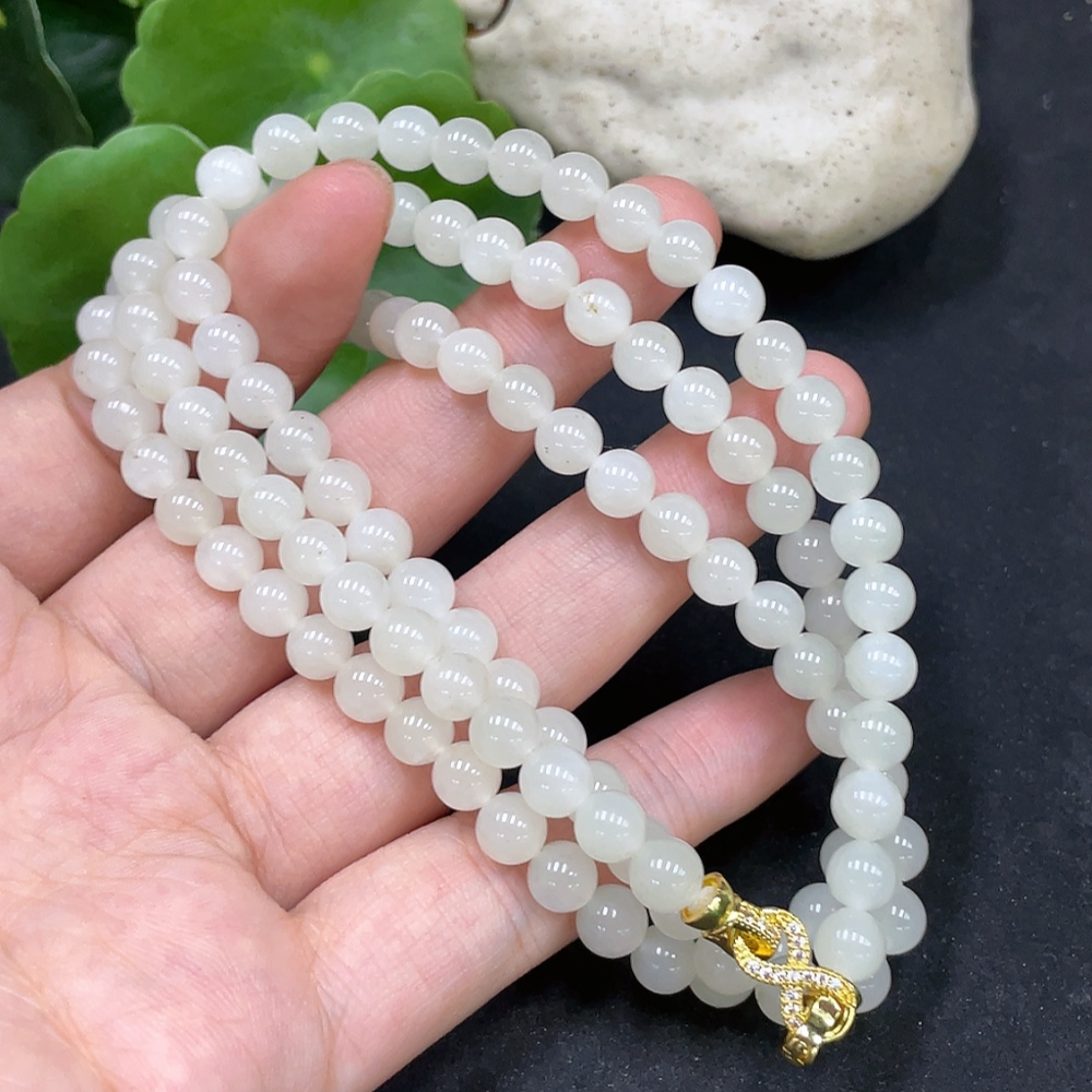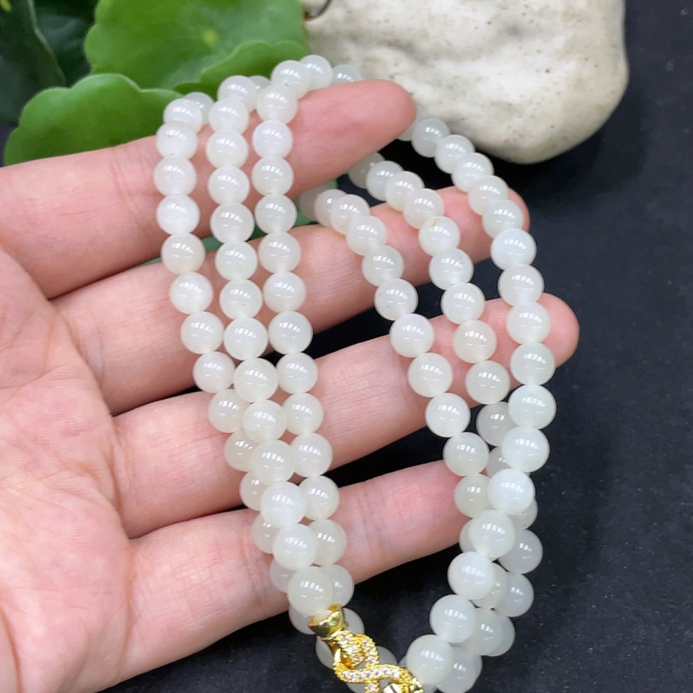 Hetian Jade Bead Necklace, Approx. 5.9mm, Non-Gold Inlaid, Total Weight Approx. 37.4g