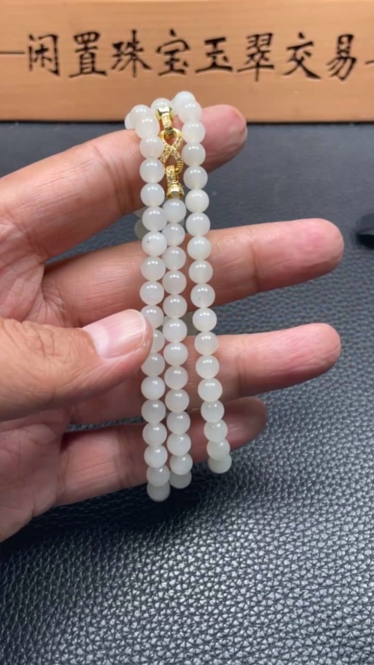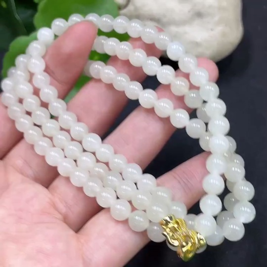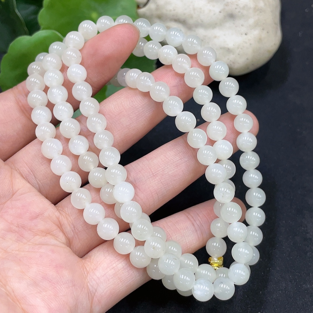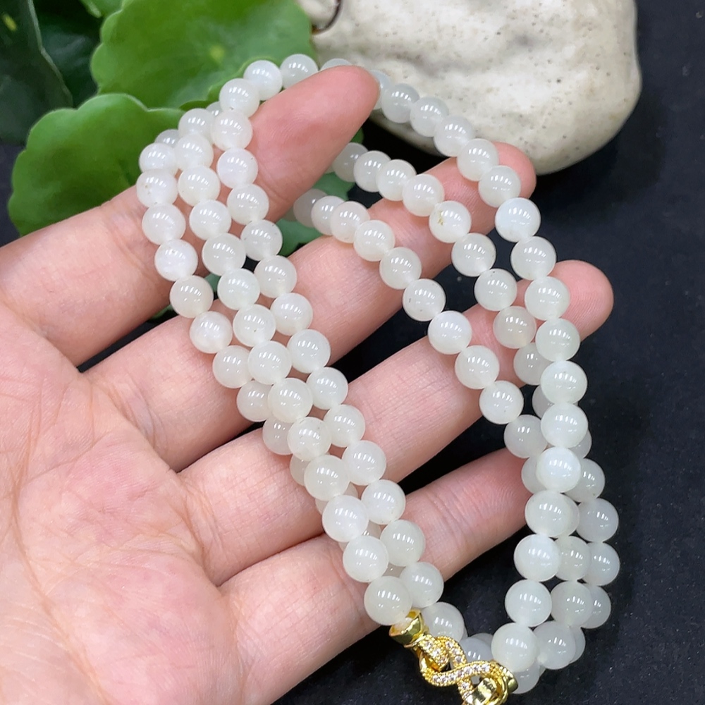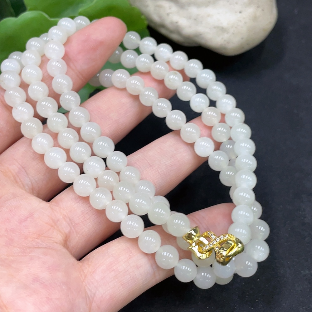 Hetian Jade Bead Necklace, Approx. 5.9mm, Non-Gold Inlaid, Total Weight Approx. 37.4g