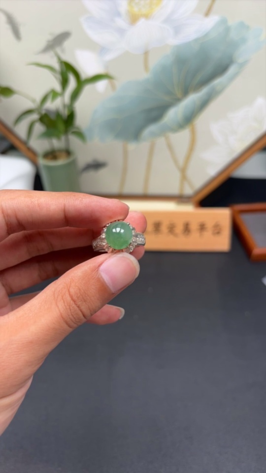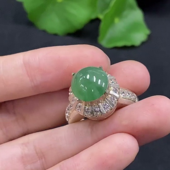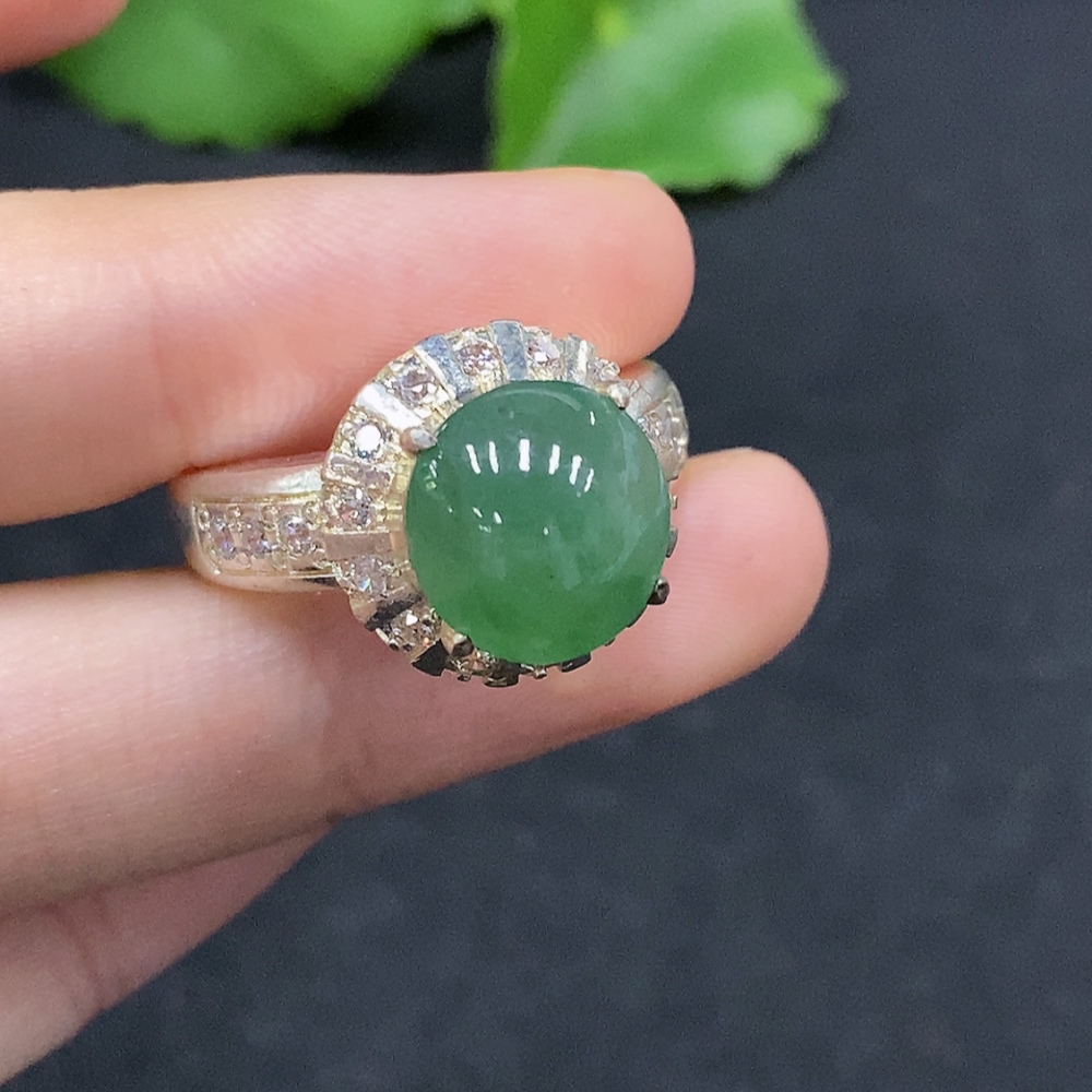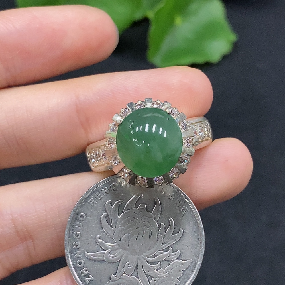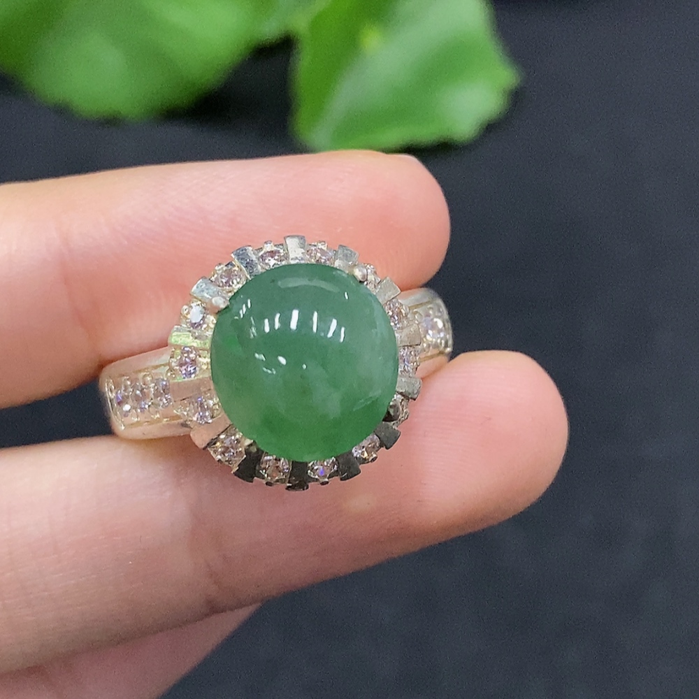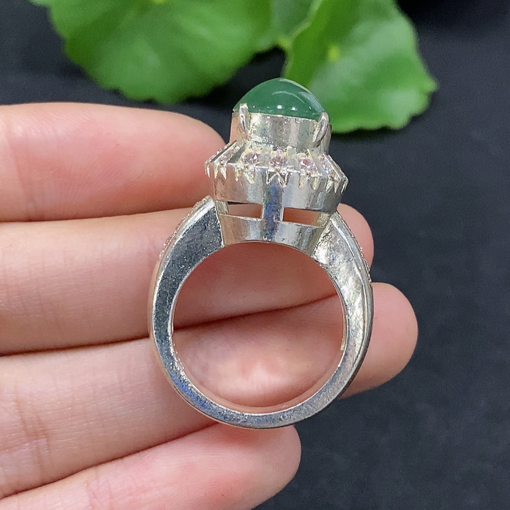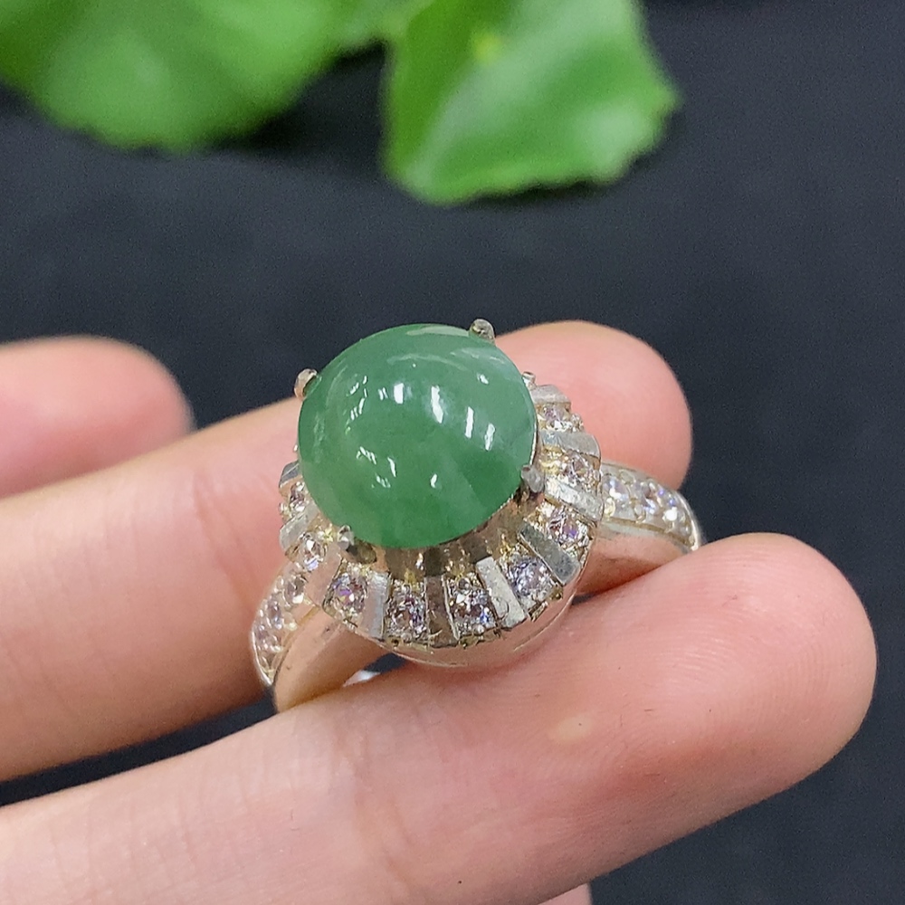Jadeite Cabochon Mounting Piece Non-Gold Total Weight Approx. 10.4g
