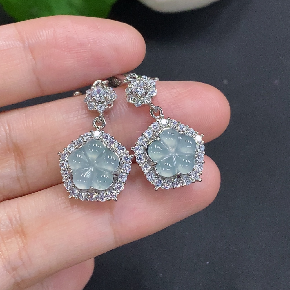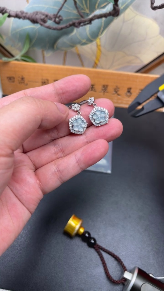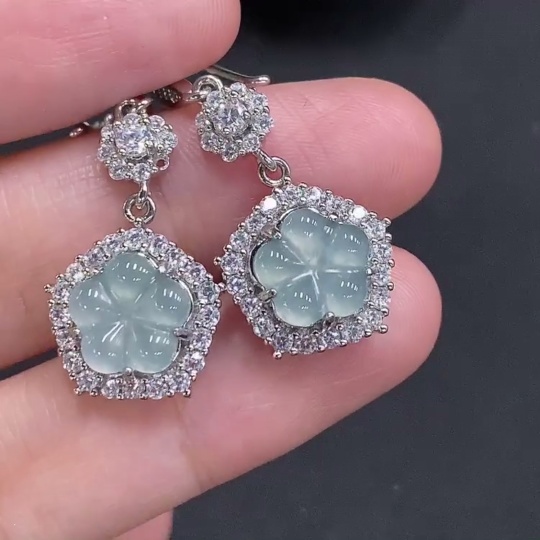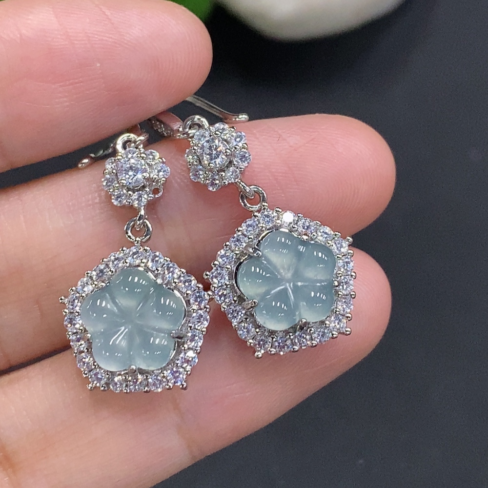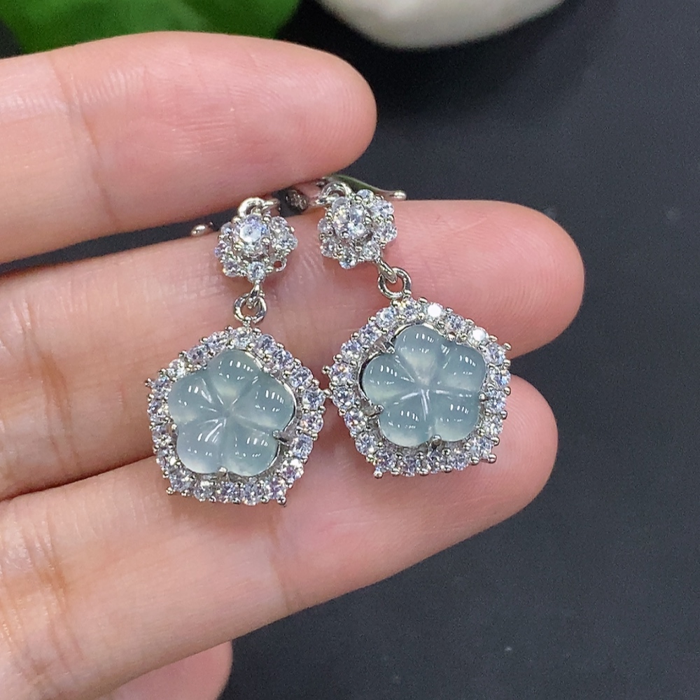 Jadeite Inlaid Earrings Non-Gold Inlaid Total Weight Approx. 6g