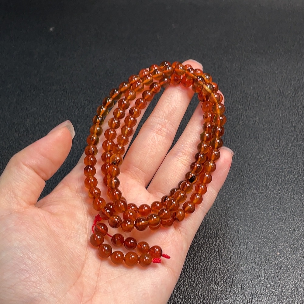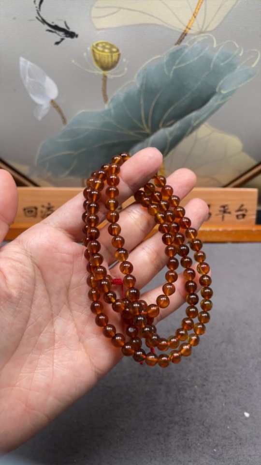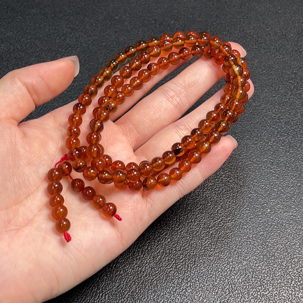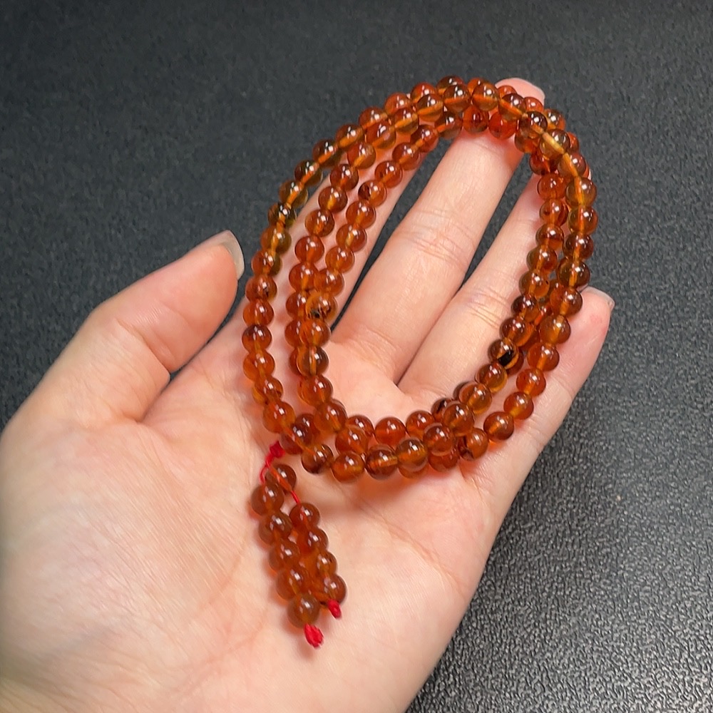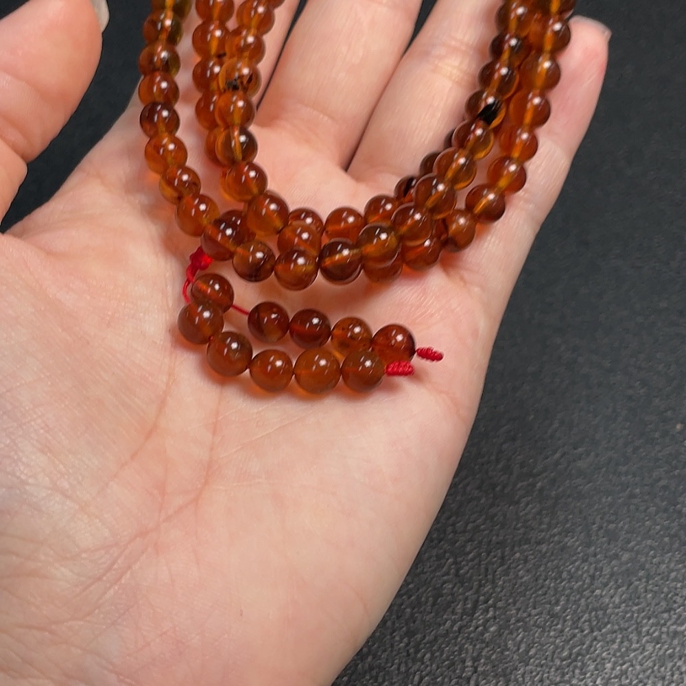Amber Beeswax Bead Necklace, Total Weight Approx. 14.7g, Size About 6mm