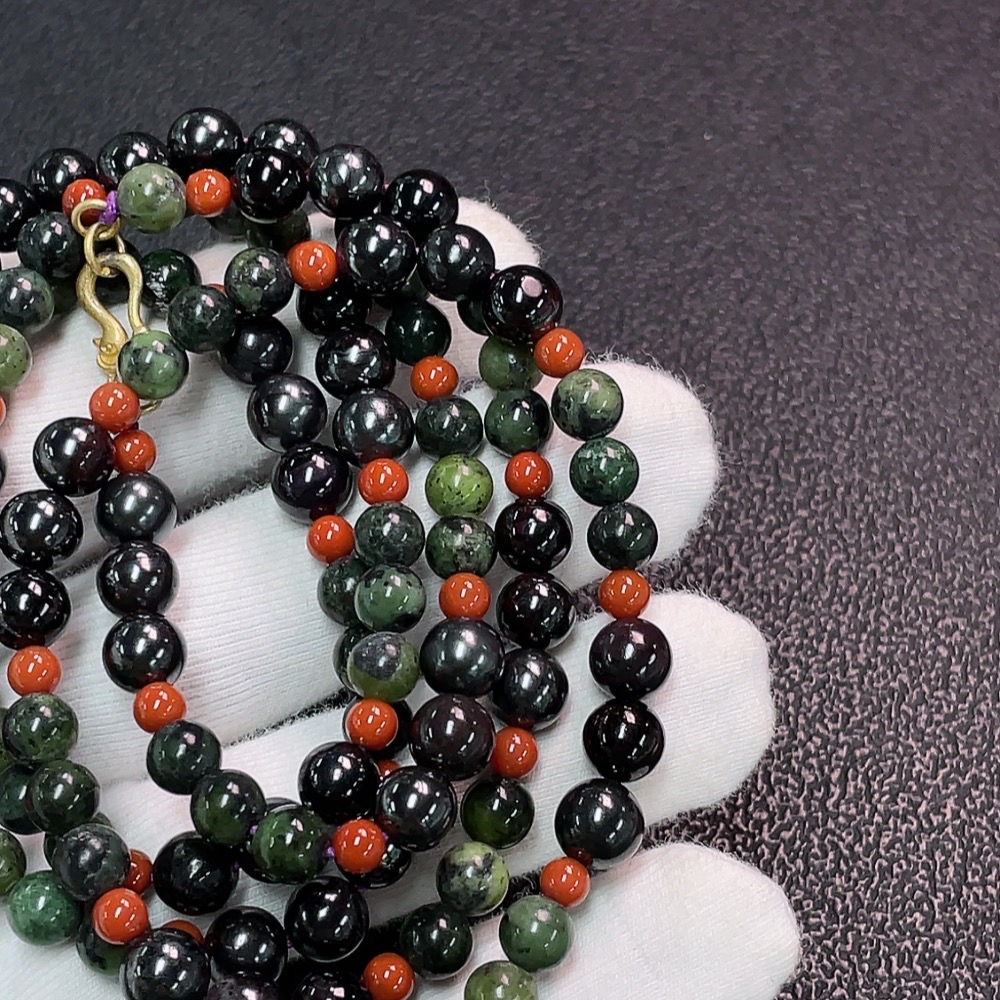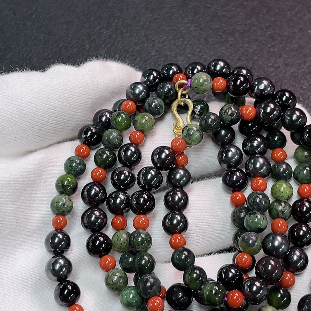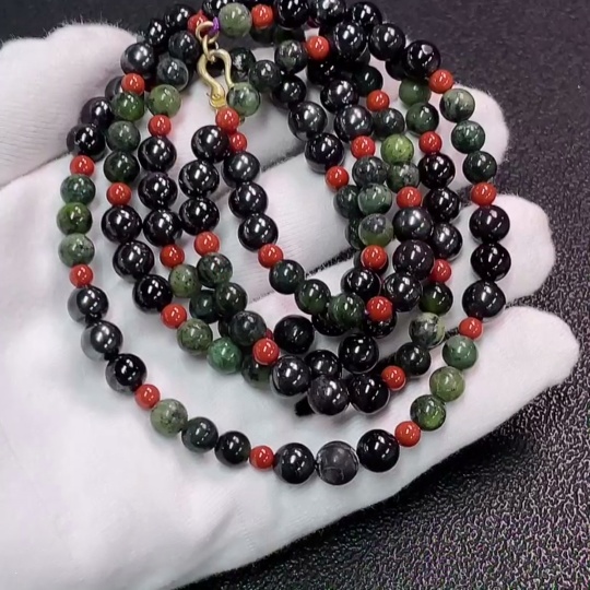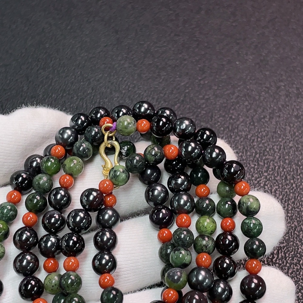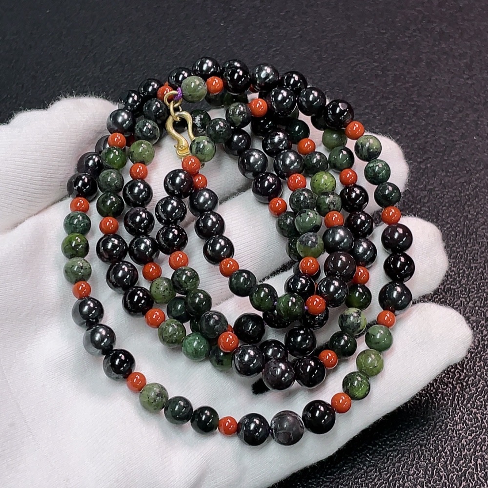 Red Agate Bead Necklace with Visible Organic Matter, Possible Non-Natural Accent Stones, Non-Metal, Total Weight Approx. 65.35g, Bead Size ~4.2mm (Inclusions)