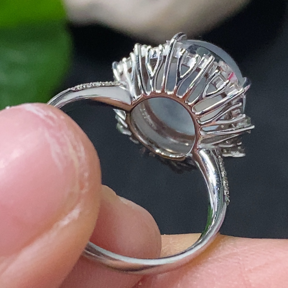 Jadeite Ring with 18k Gold and Diamond Accents, Size 13, Total Weight Approx. 4.75g