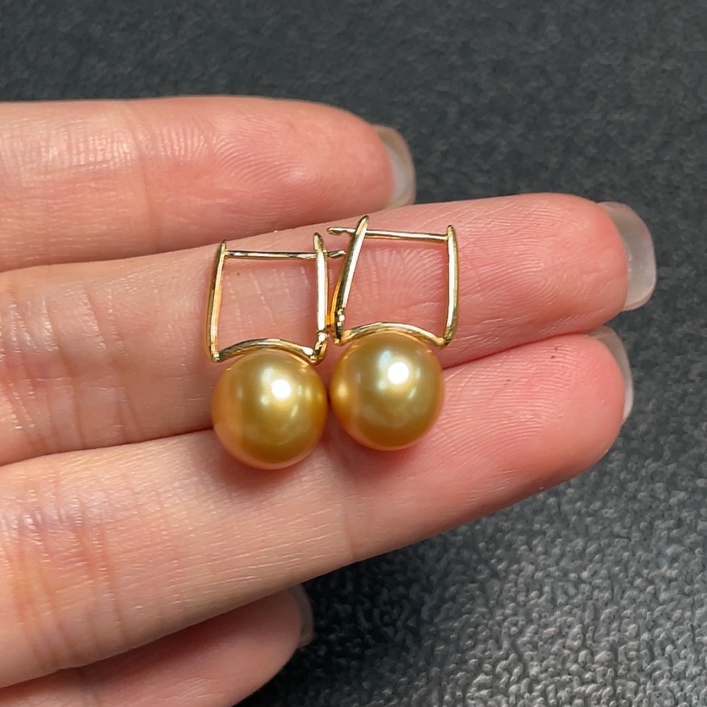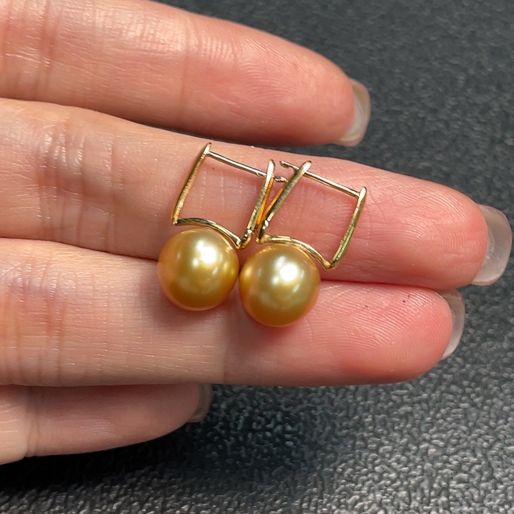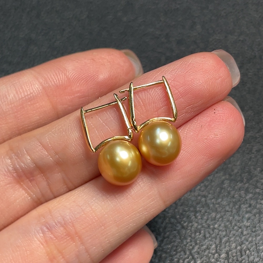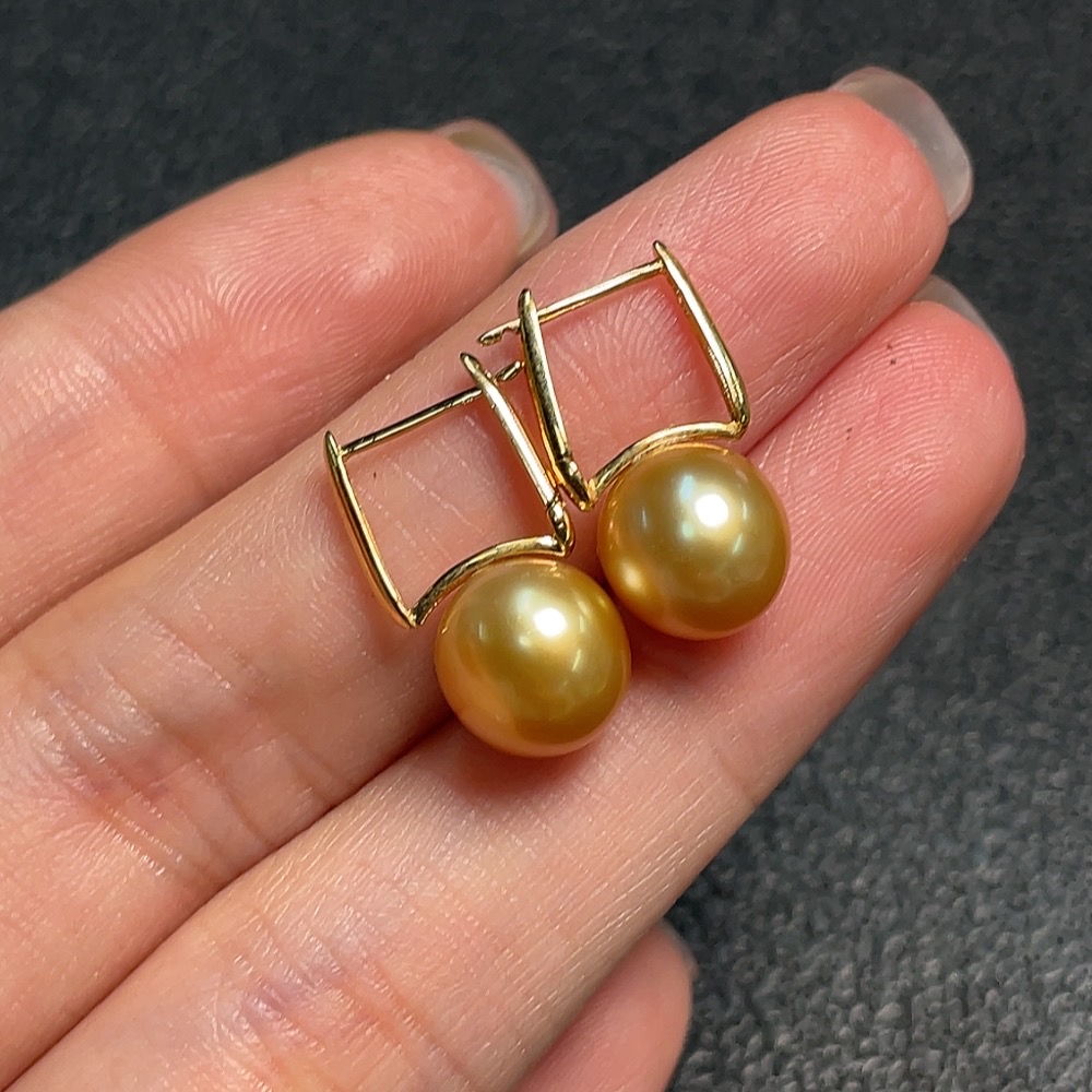 Seawater pearl earrings, color origin undetermined, 18k gold, total weight approximately 2.7g, size about 8.6mm