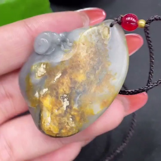 Hetian Jade Seed Material Pendant "Peaceful Living and Happy Work