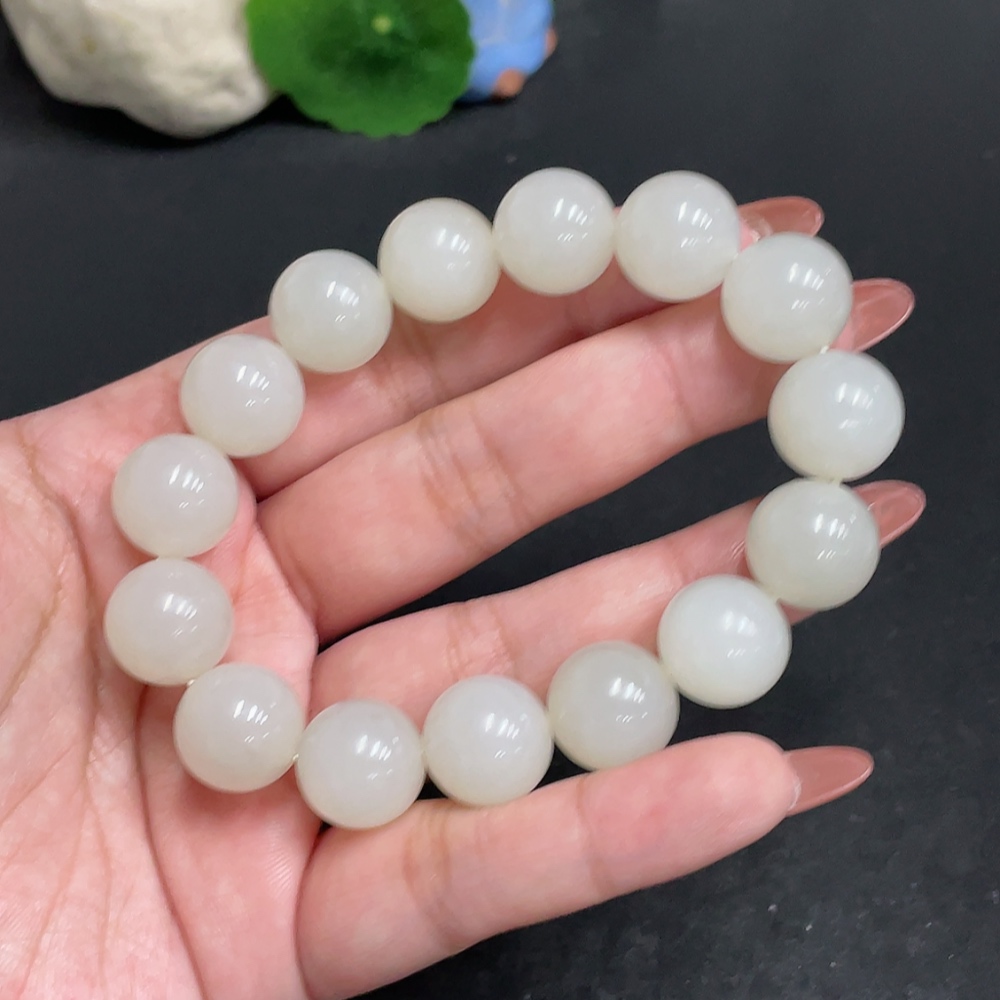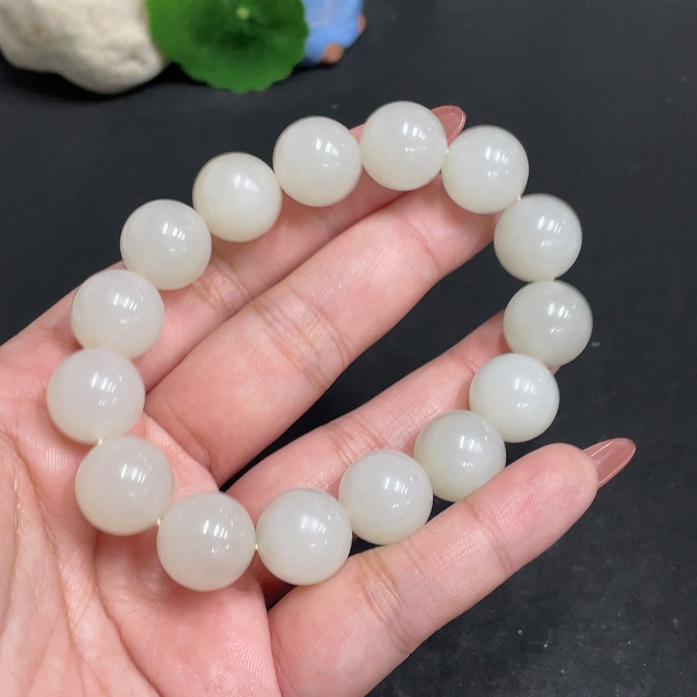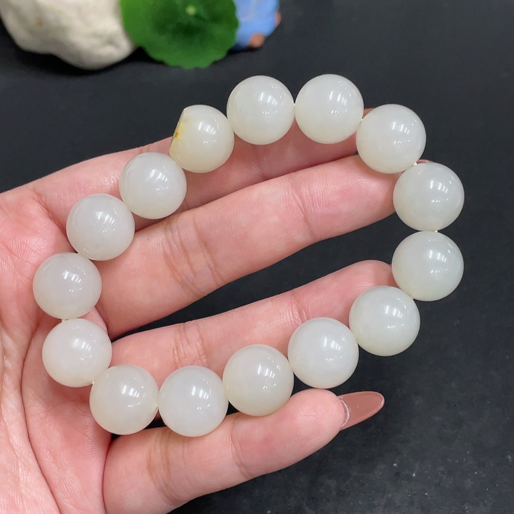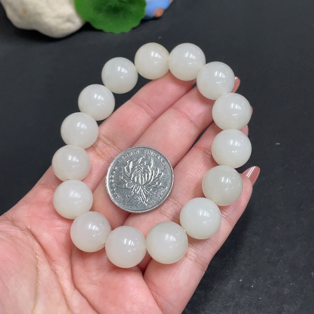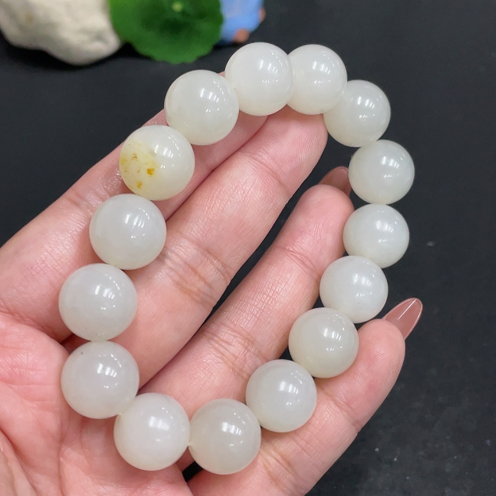 Hetian Jade Bracelet, Approx. 13.9 mm, Total Weight Approx. 64.5g, Undetermined Skin Color Origin