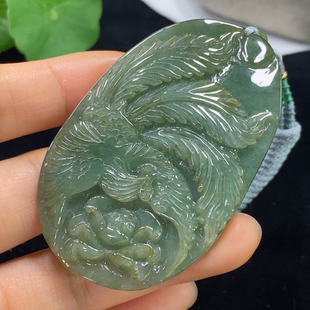 Jadeite Phoenix Pendant Total Weight Approx. 36.73g (including rope weight)