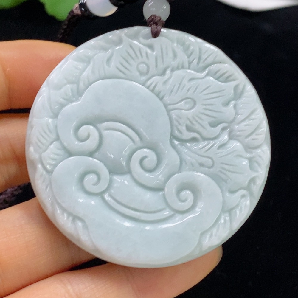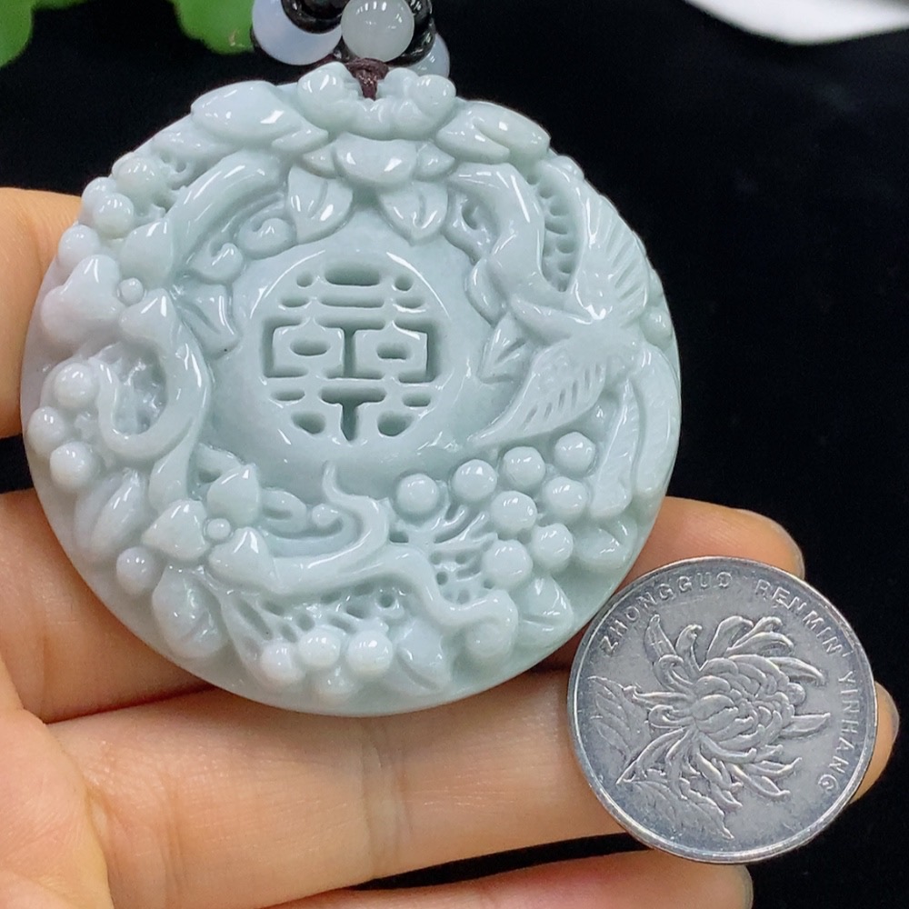 Jadeite Flower and Bird Pendant Plaque Total Weight Approx. 71.03g (including rope weight) with non-A grade accessory stones