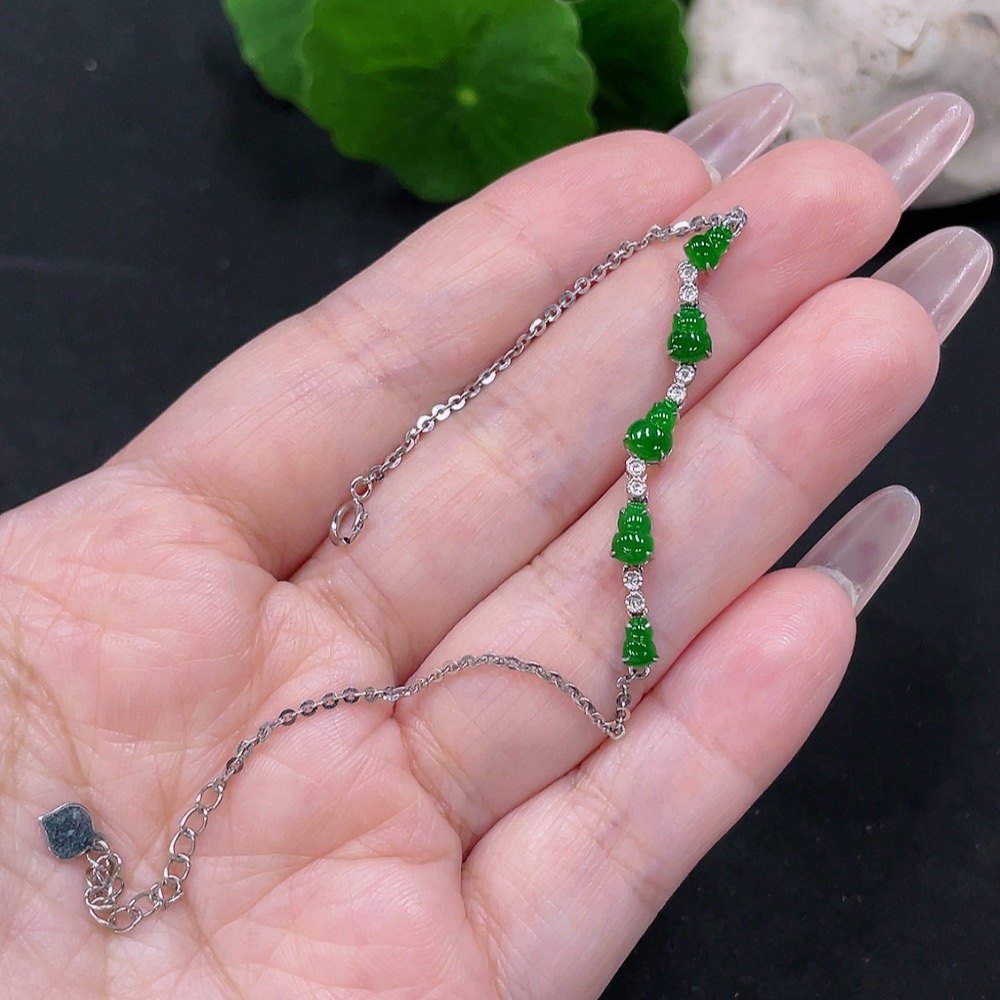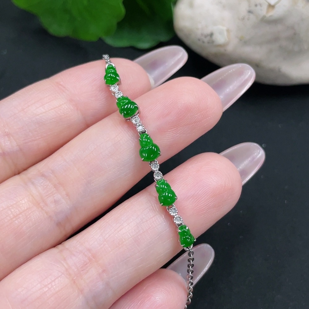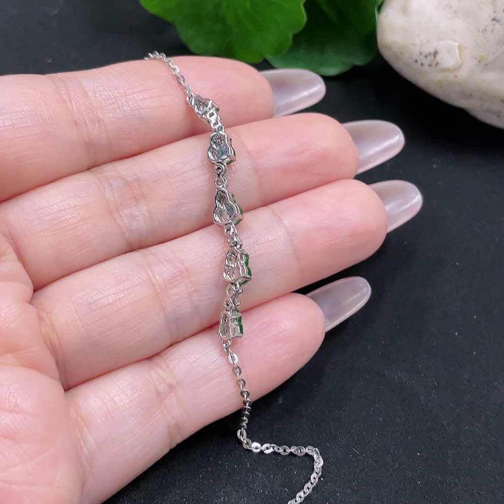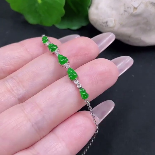 Jadeite inlaid bracelet 18K gold total weight about 2.3g (with diamond accents)