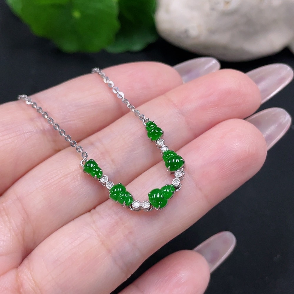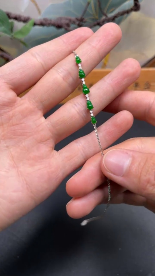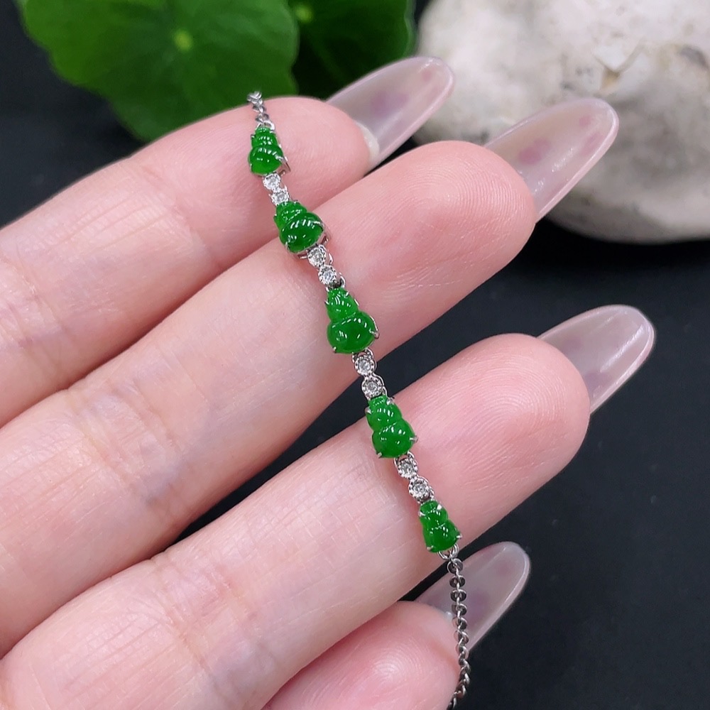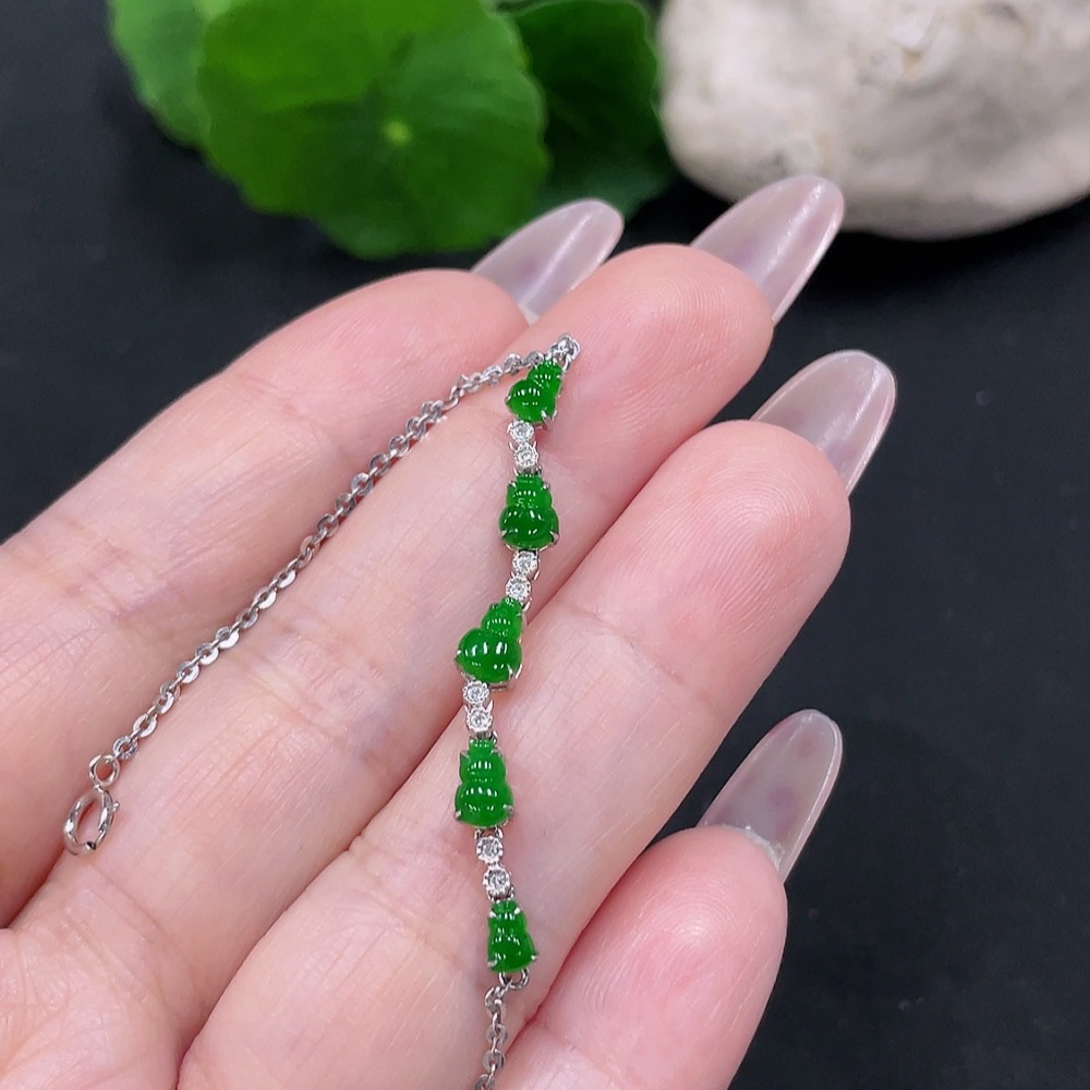 Jadeite inlaid bracelet 18K gold total weight about 2.3g (with diamond accents)