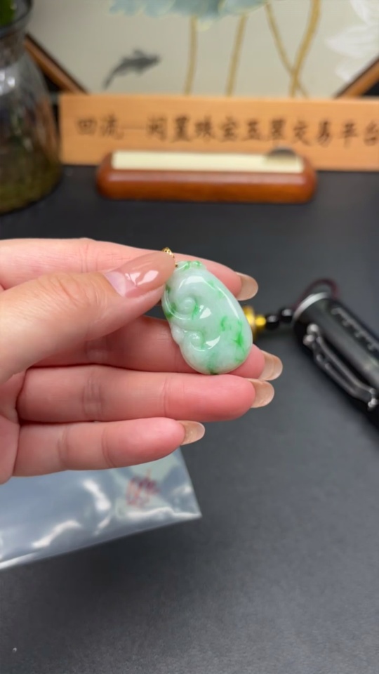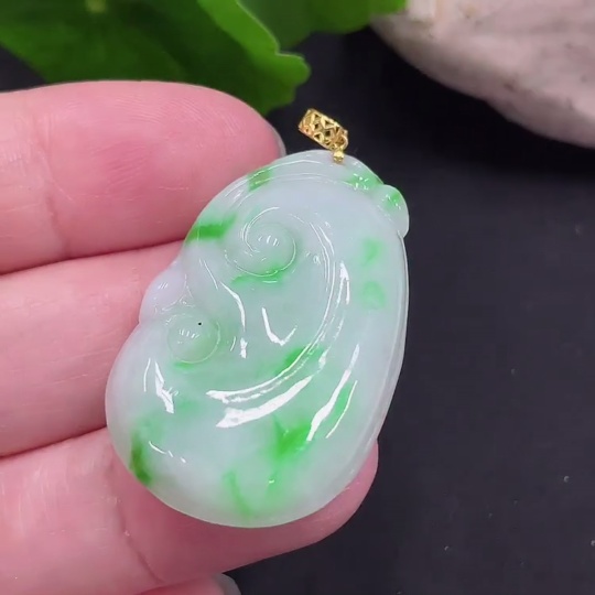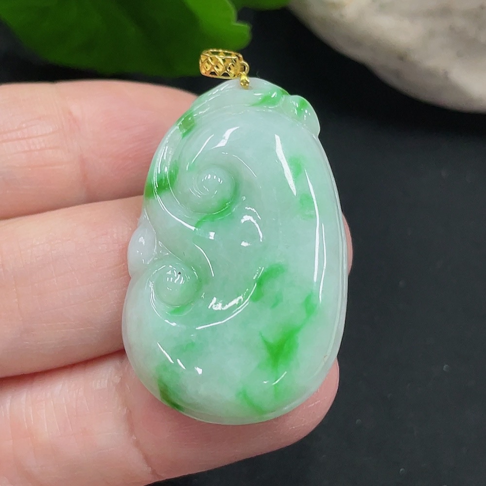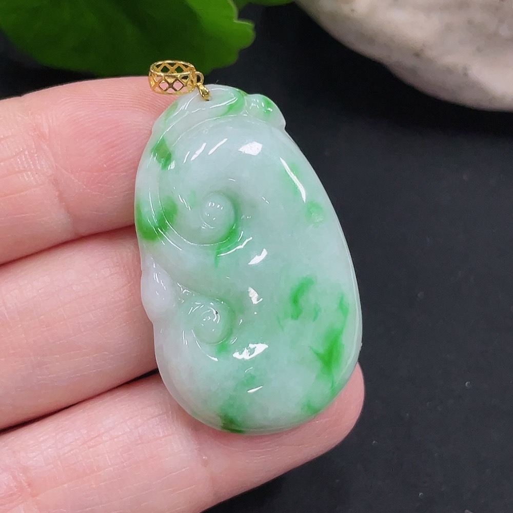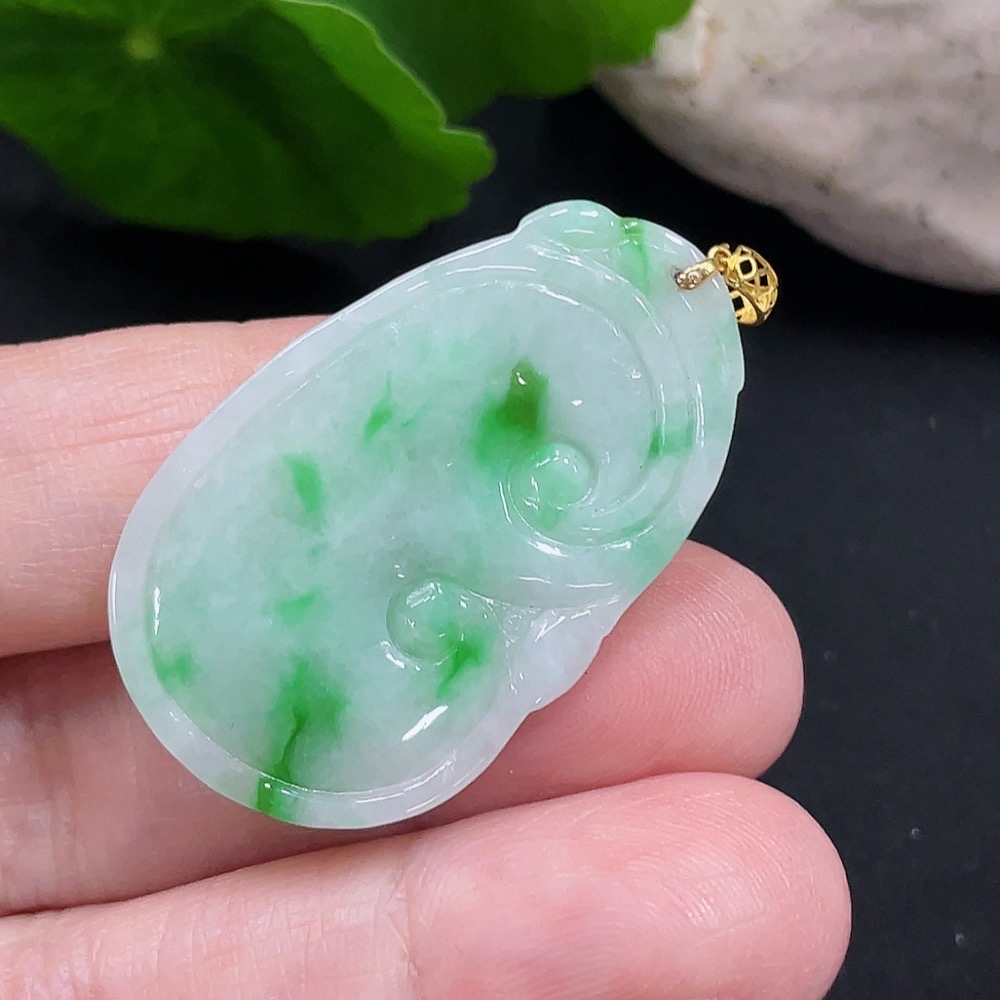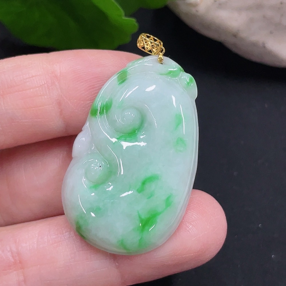 Jadeite Ruyi Pendant 18K Gold Total Weight Approx. 8g