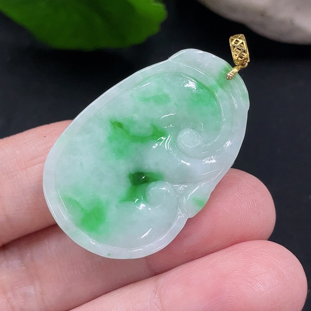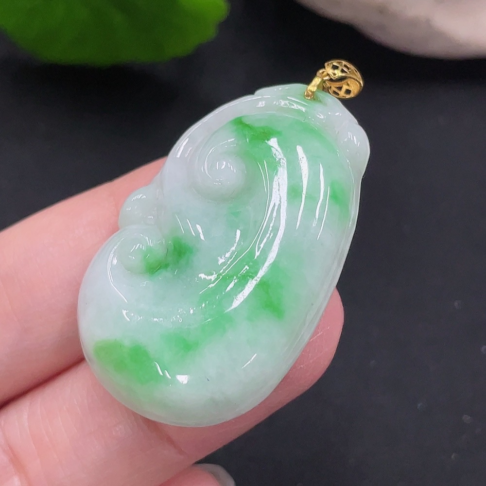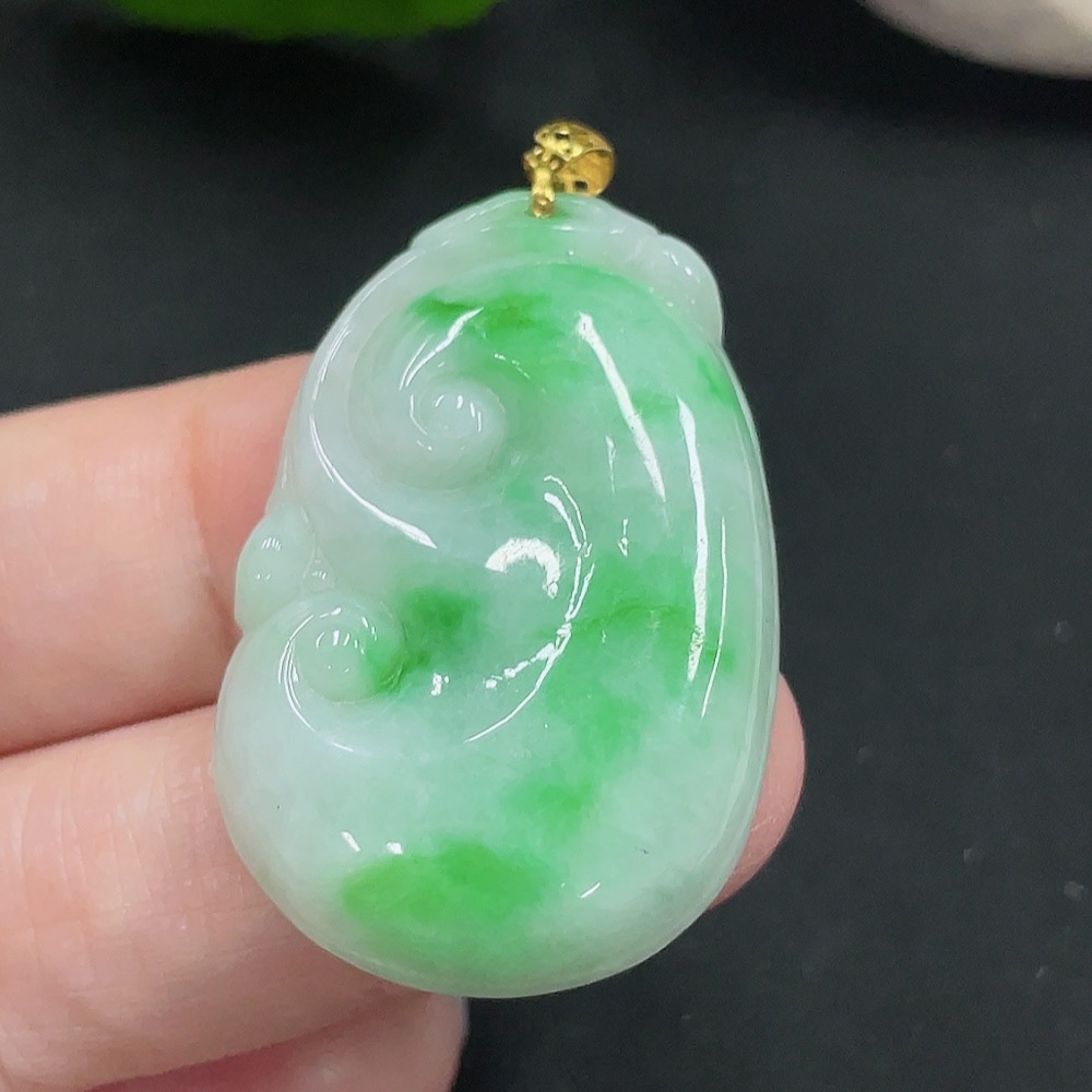 Jadeite Ruyi Pendant 18K Gold Total Weight Approx. 9g