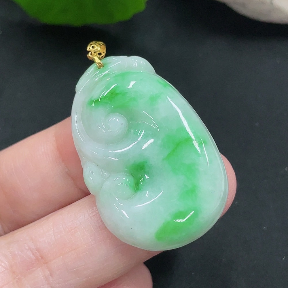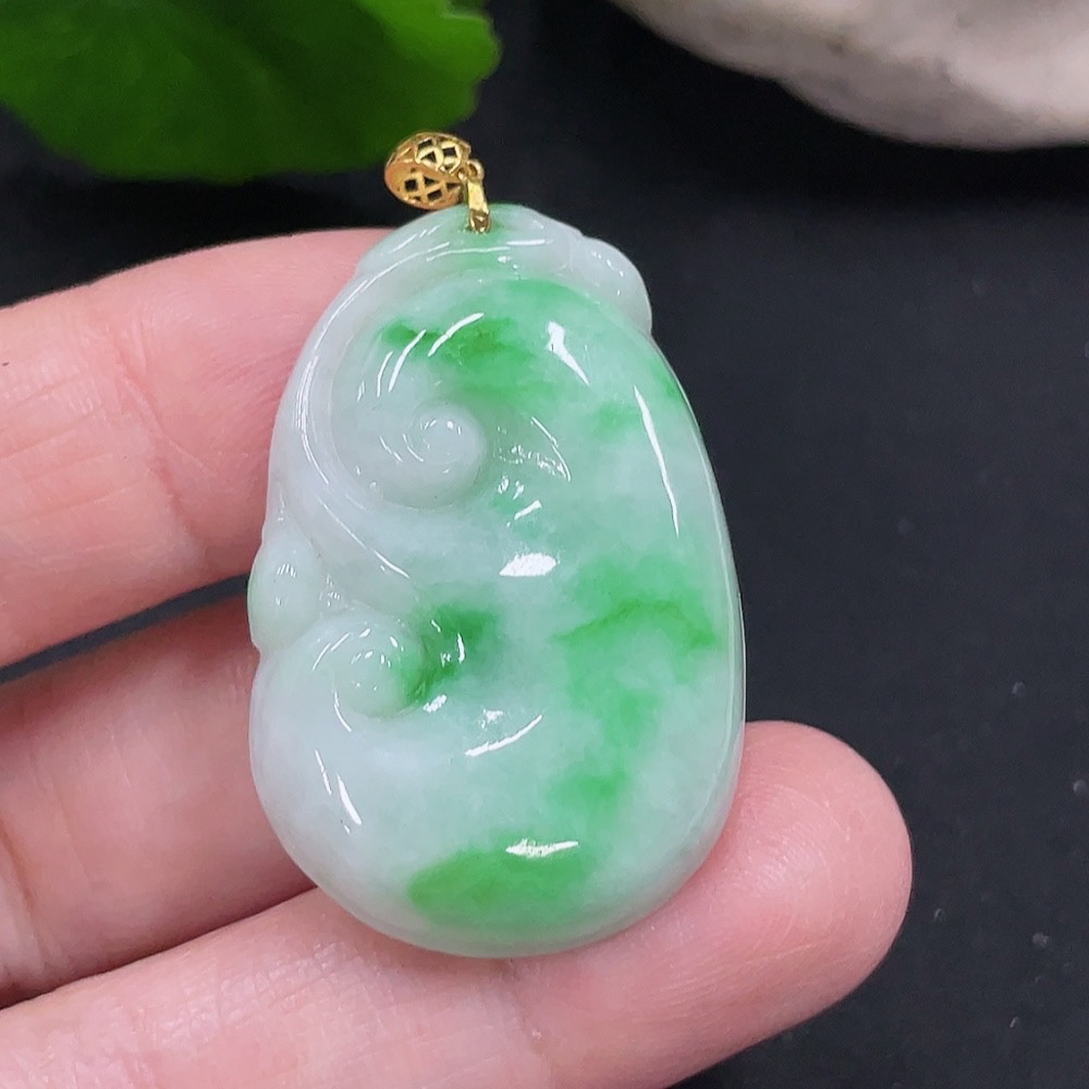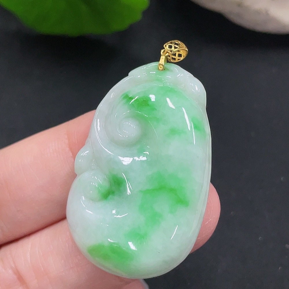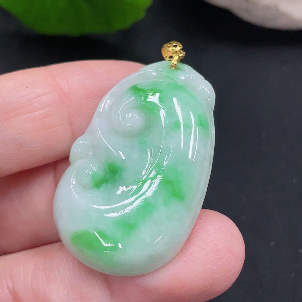 Jadeite Ruyi Pendant 18K Gold Total Weight Approx. 9g
