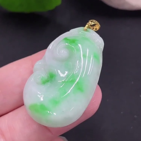 Trezaar - Jadeite Ruyi Pendant 18K Gold Total Weight Approx. 9g