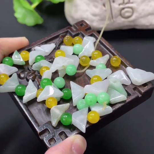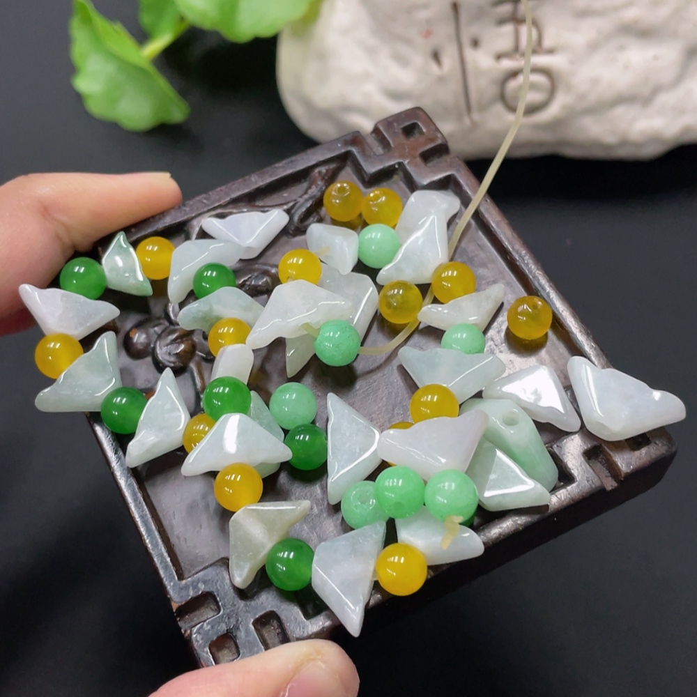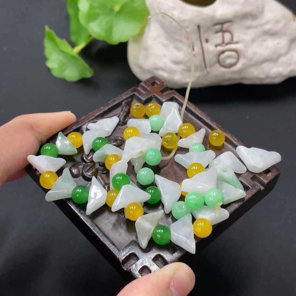 Jadeite Beads Approx. 16.5mm Sell as a Lot Total Weight 31.1g Yellow Green Beads Non-A