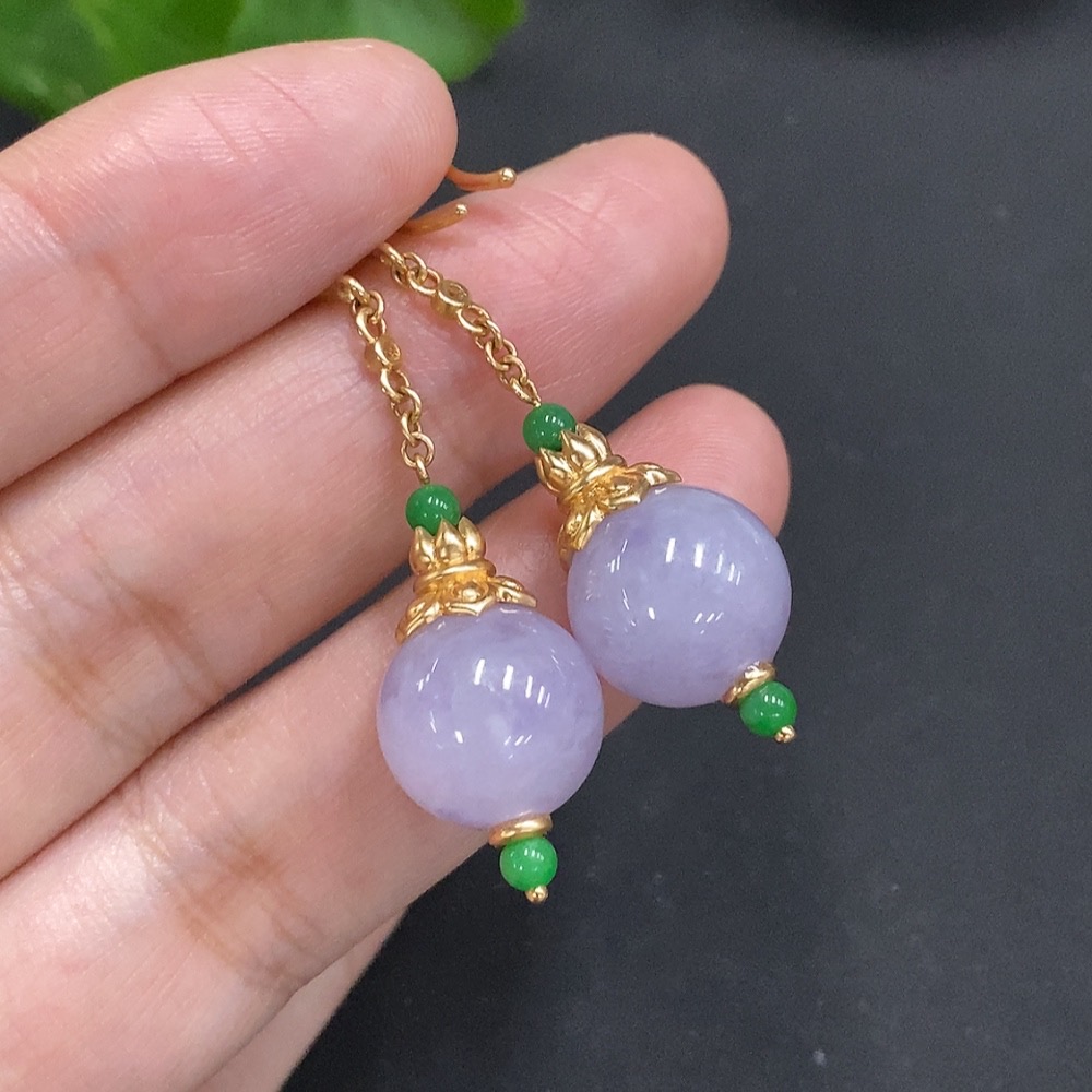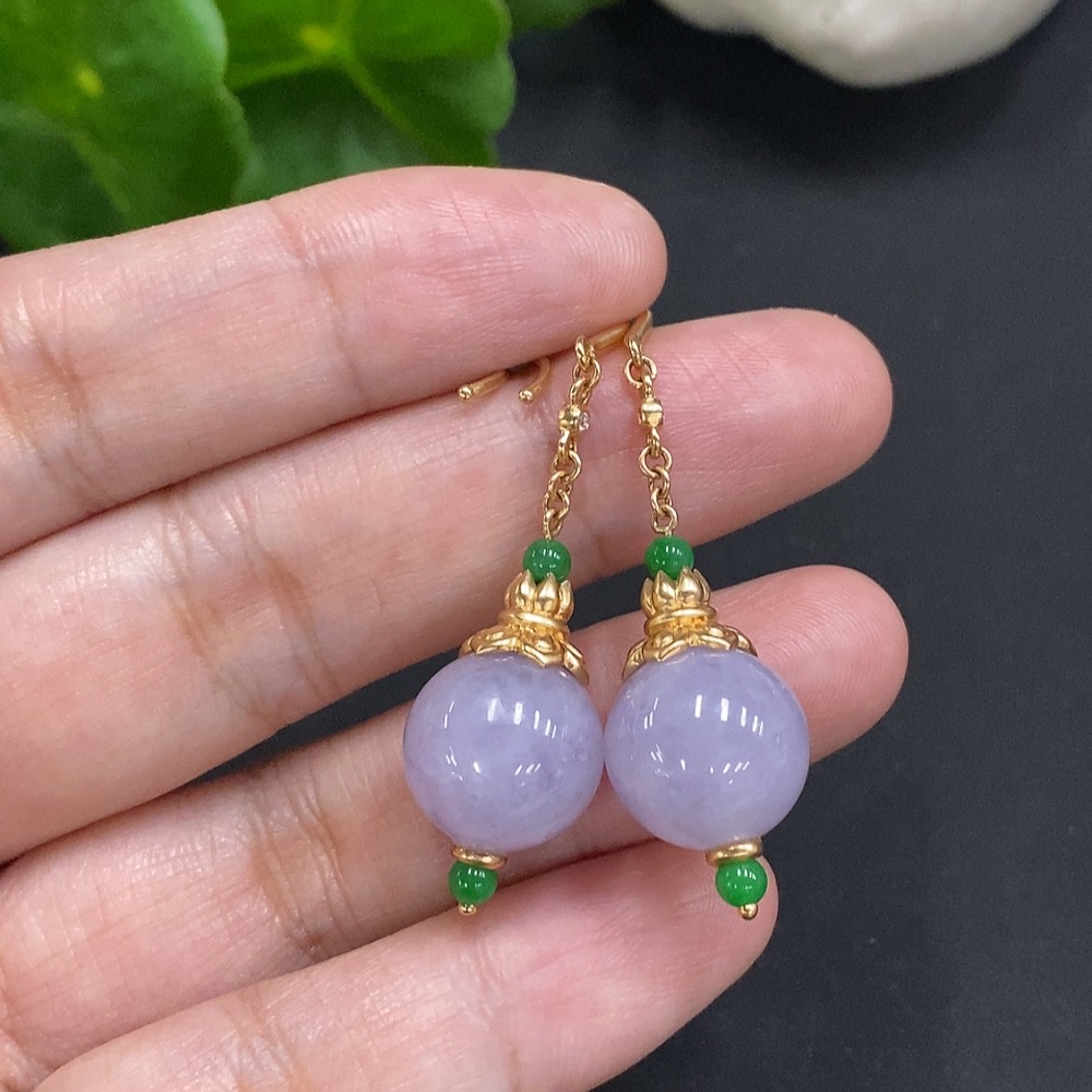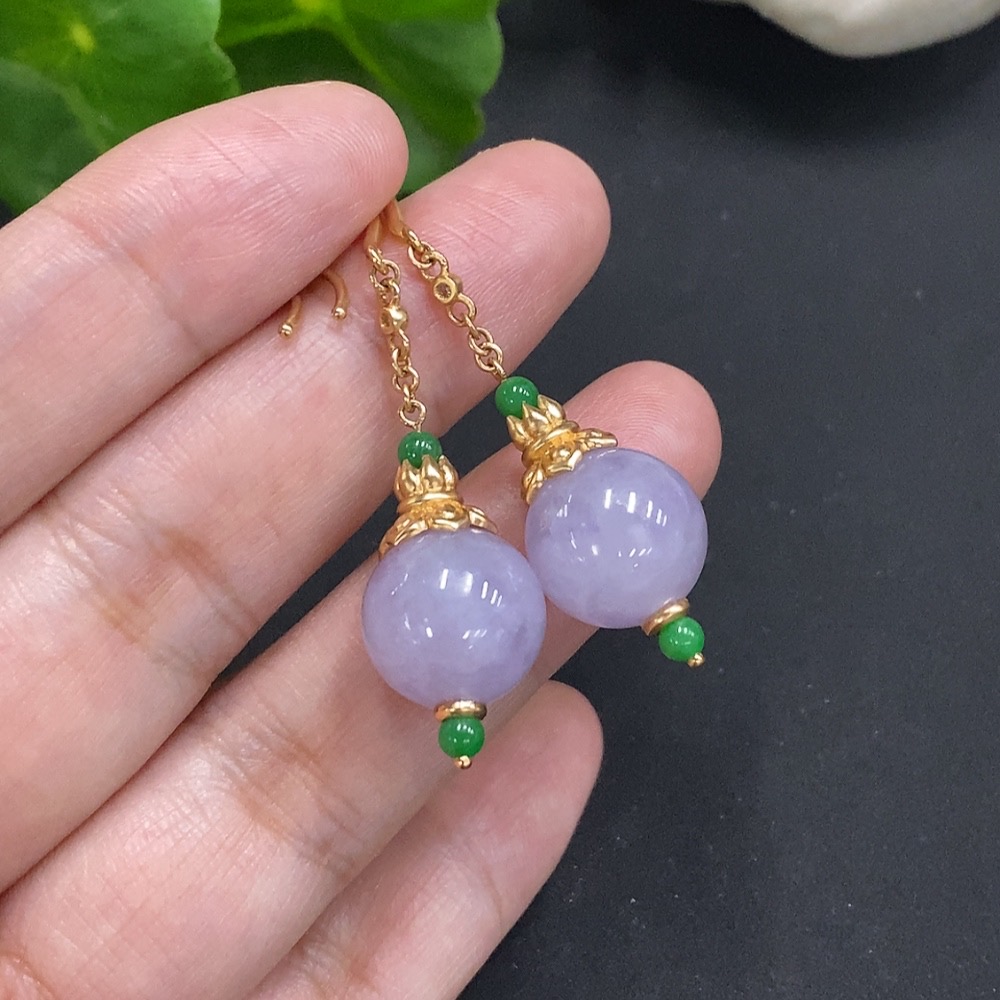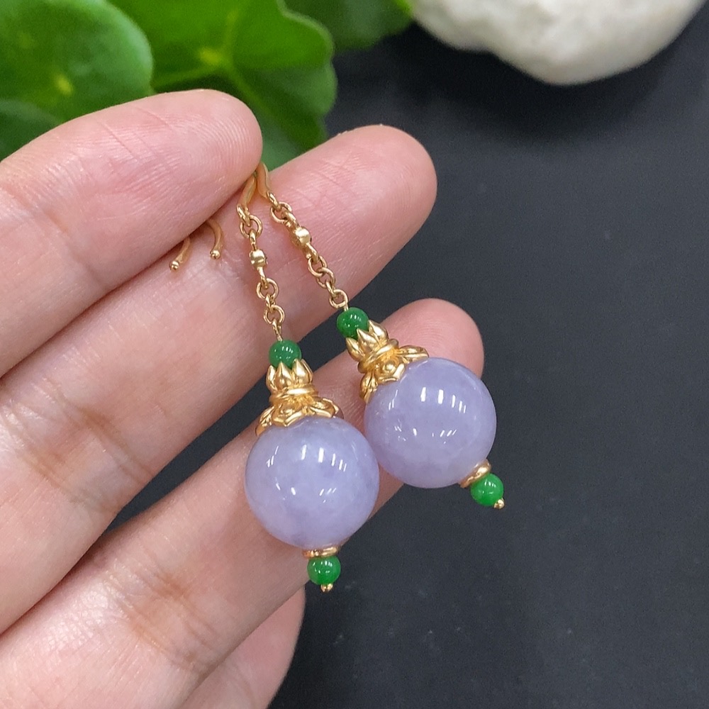 Jadeite Inlaid Earrings 18K Gold Size 12.2mm Approx. Total Weight About 10.8g (Non-Diamond)