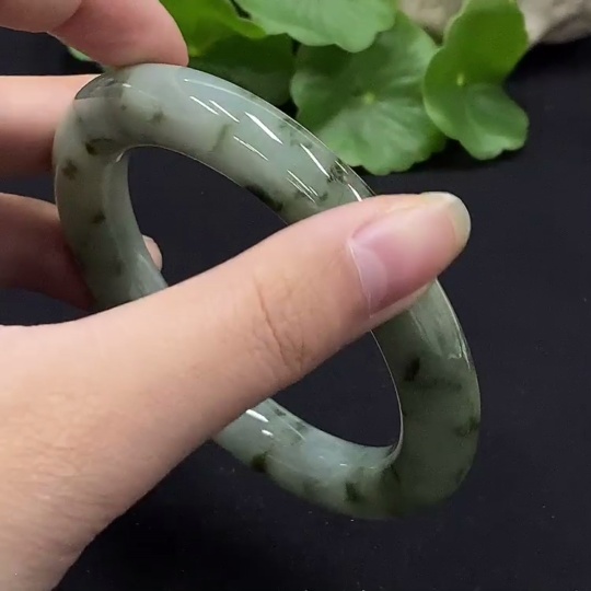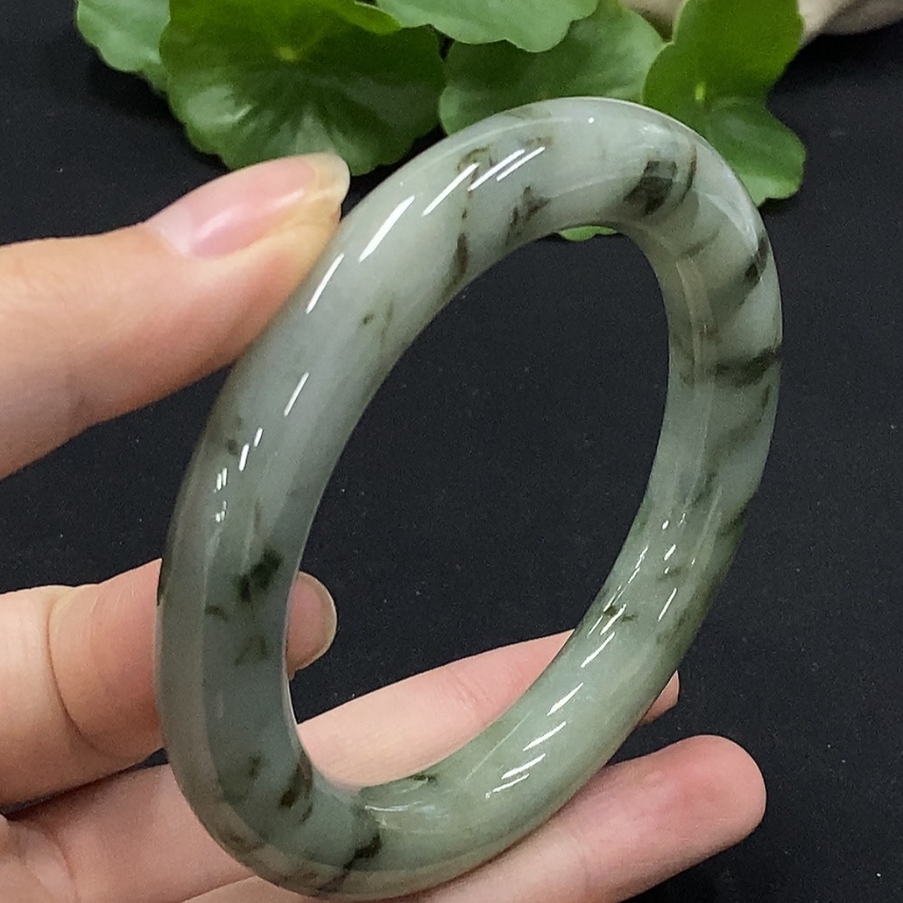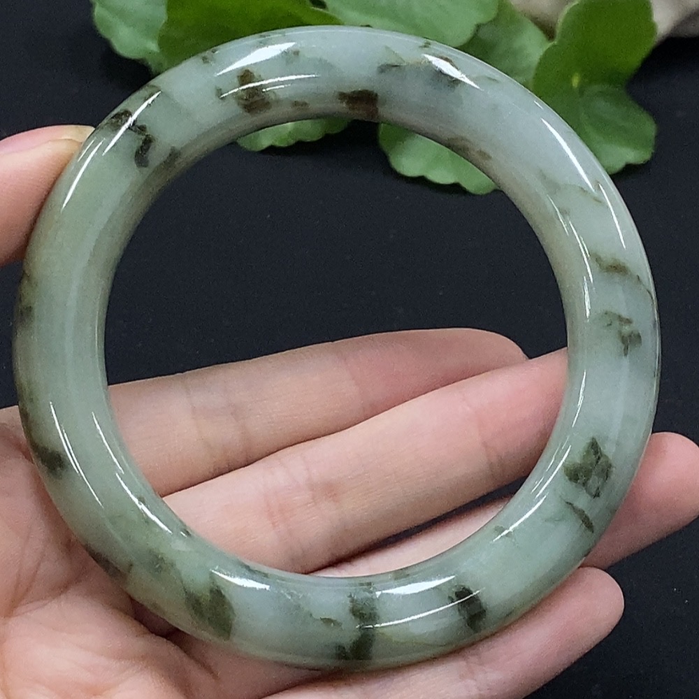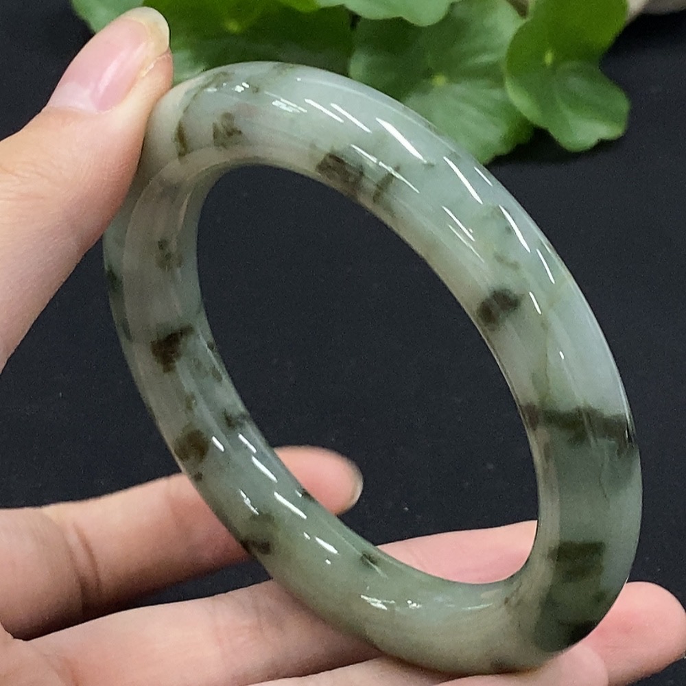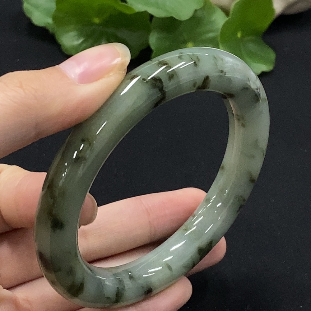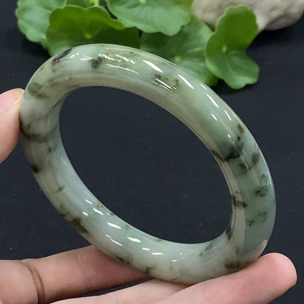 Jadeite Round Bangle Size 57.8 with Other Mineral Components Total Weight Approx. 73.48g