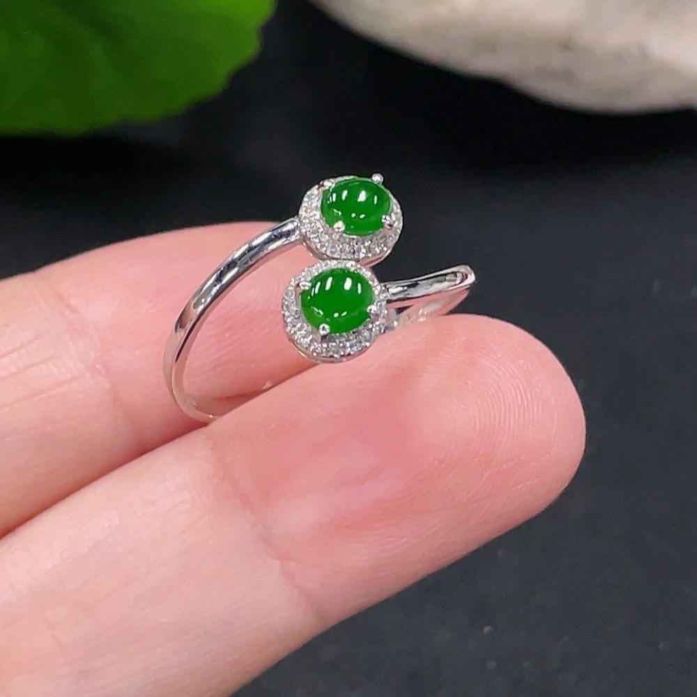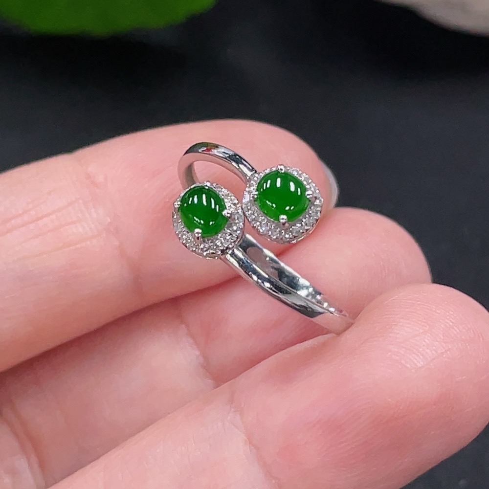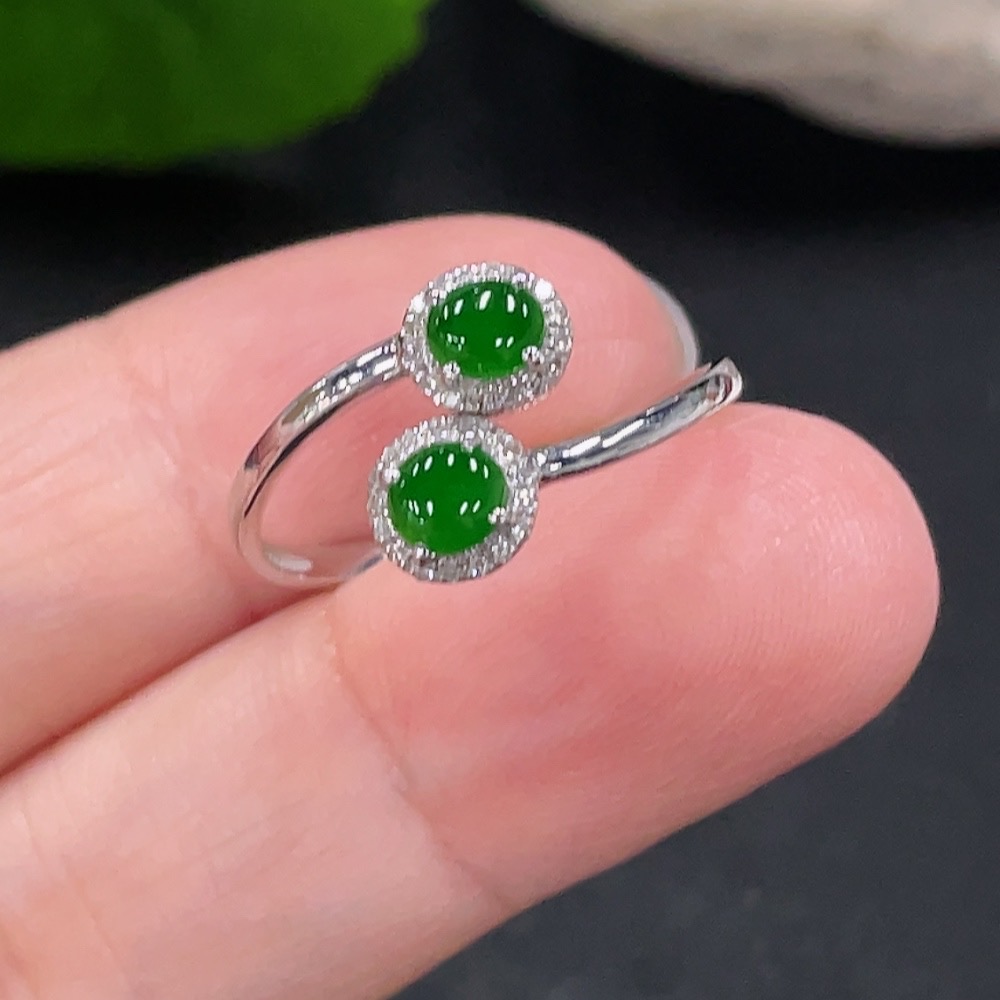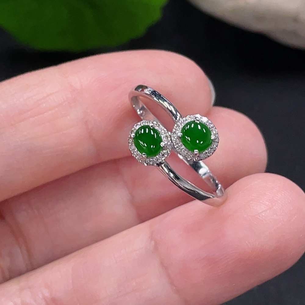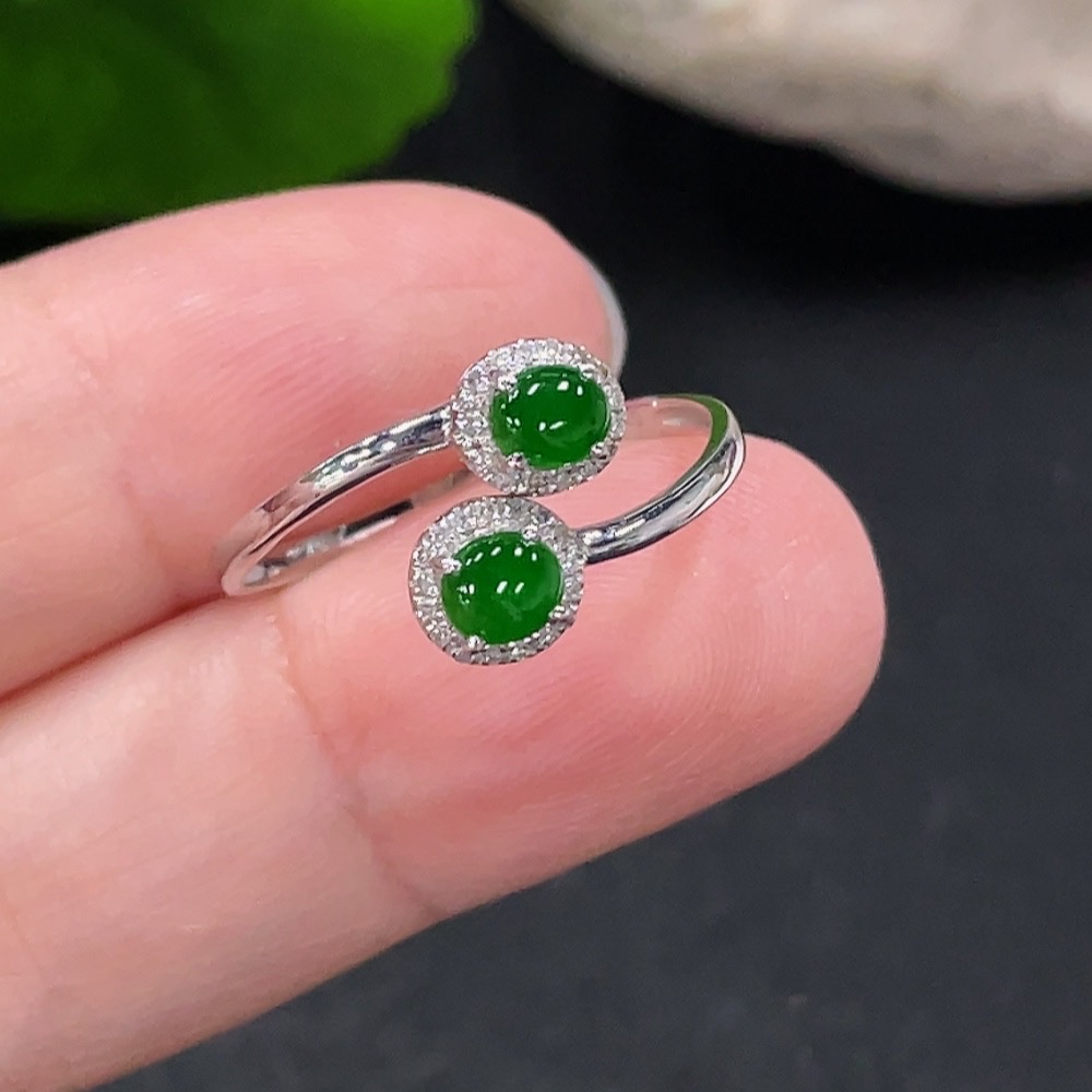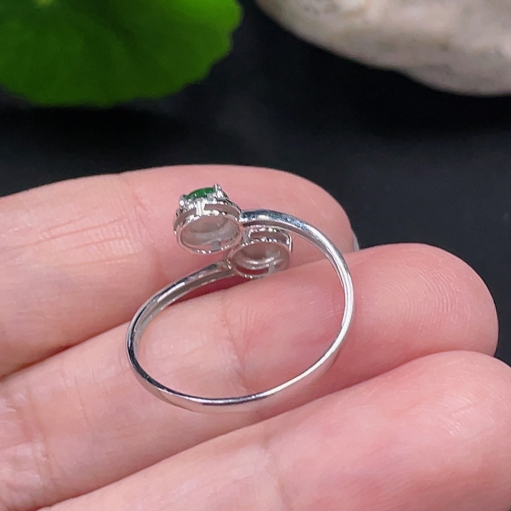 Jadeite inlaid ring size 14 18K gold total weight about 1.5g (with diamond inlay)