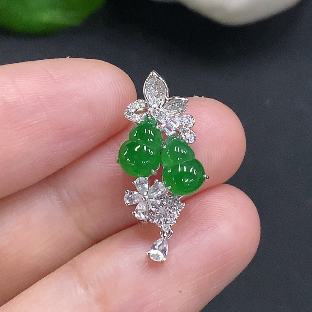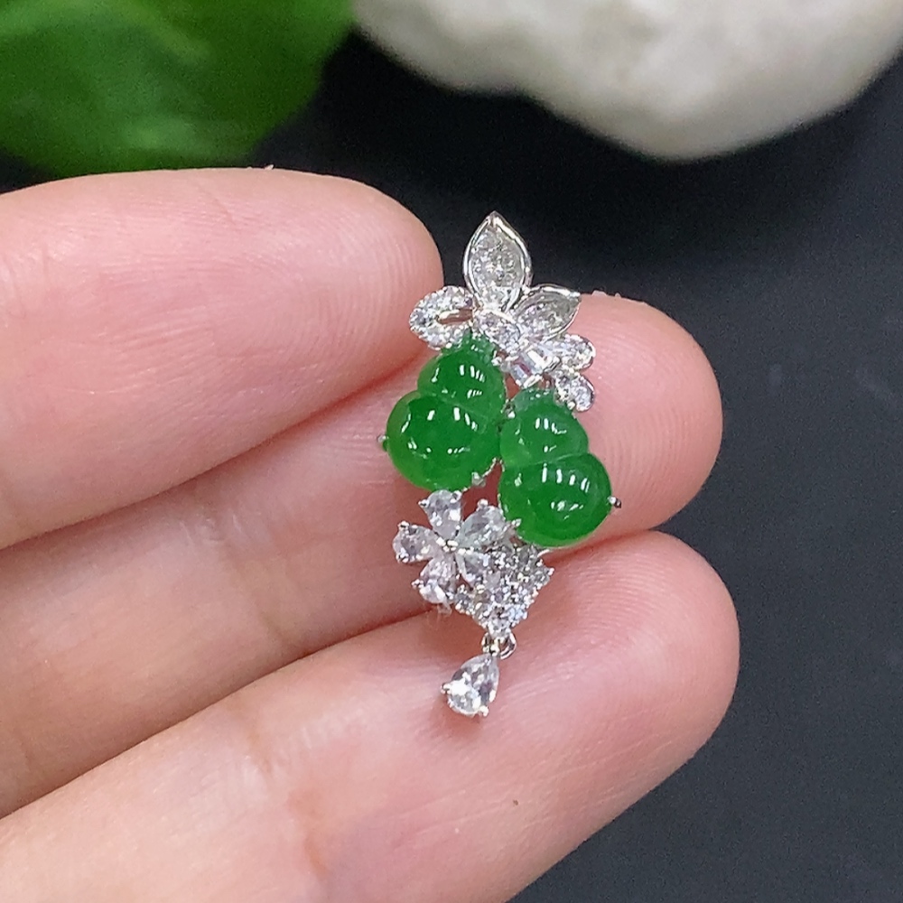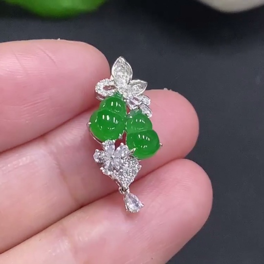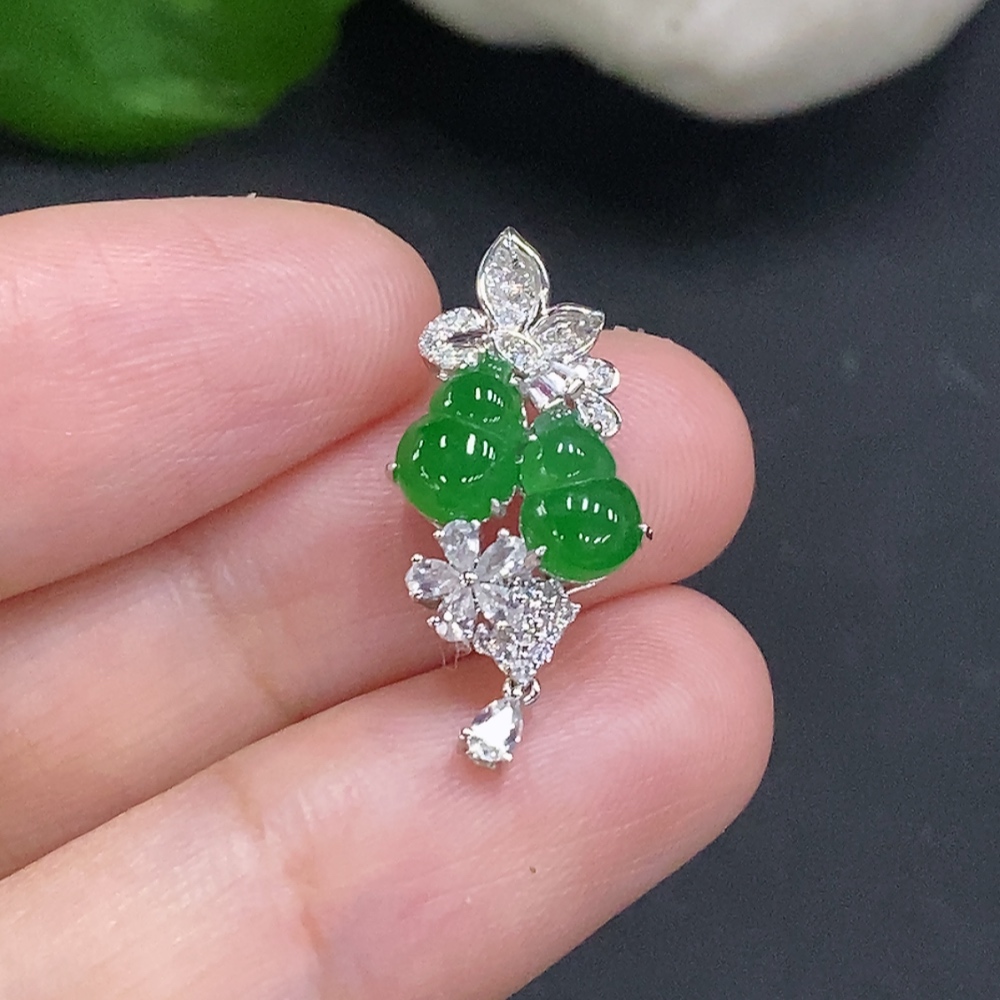 Jadeite gourd inlay pendant 18K gold total weight approx. 1.5g (only smallest accent stones are diamonds)