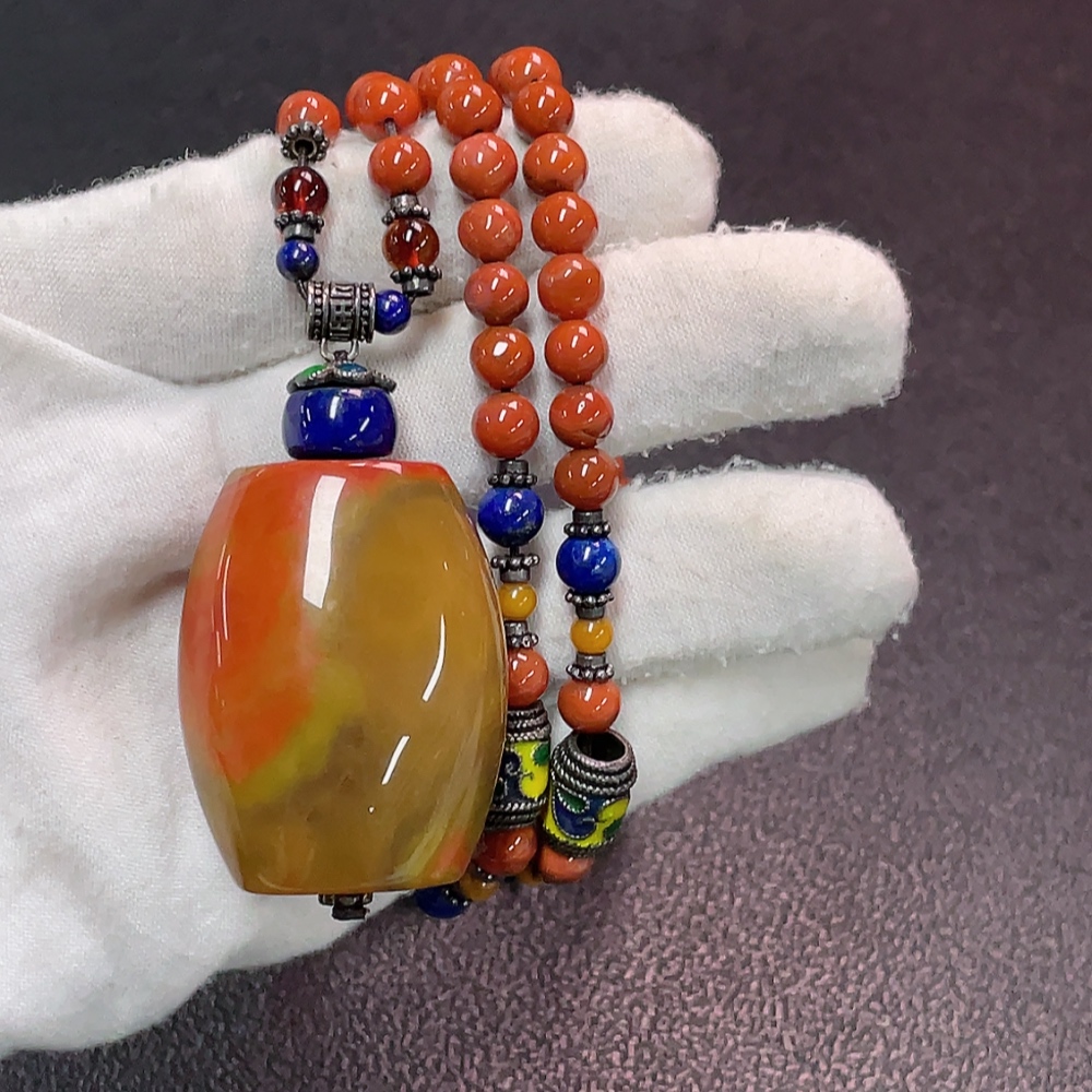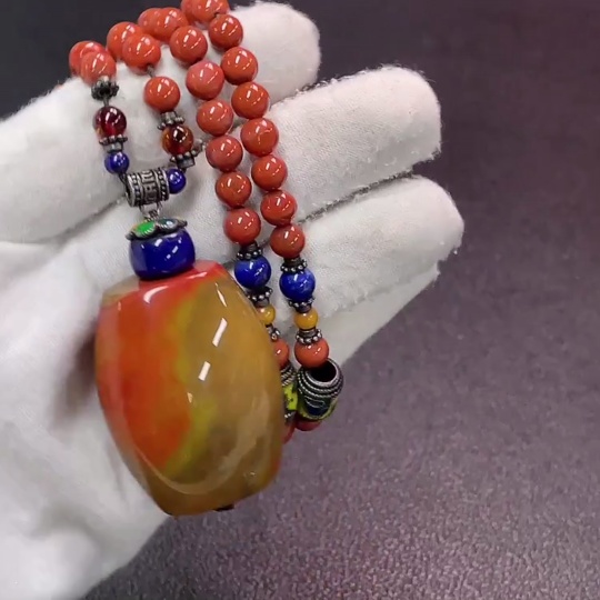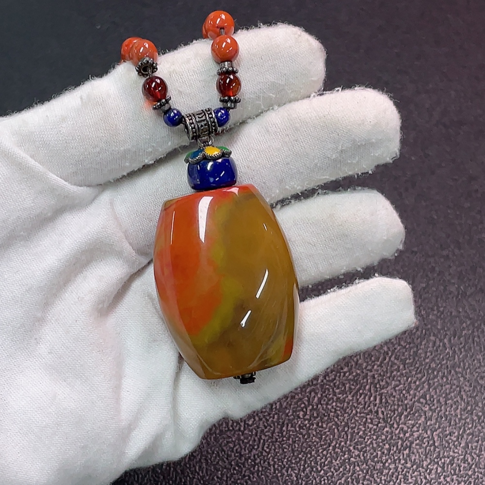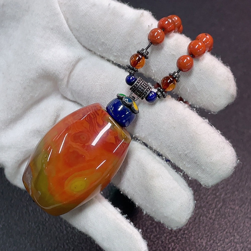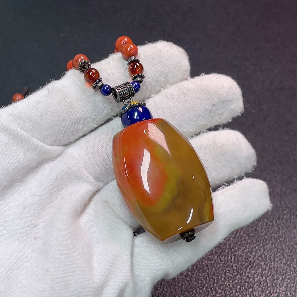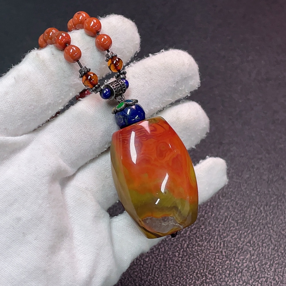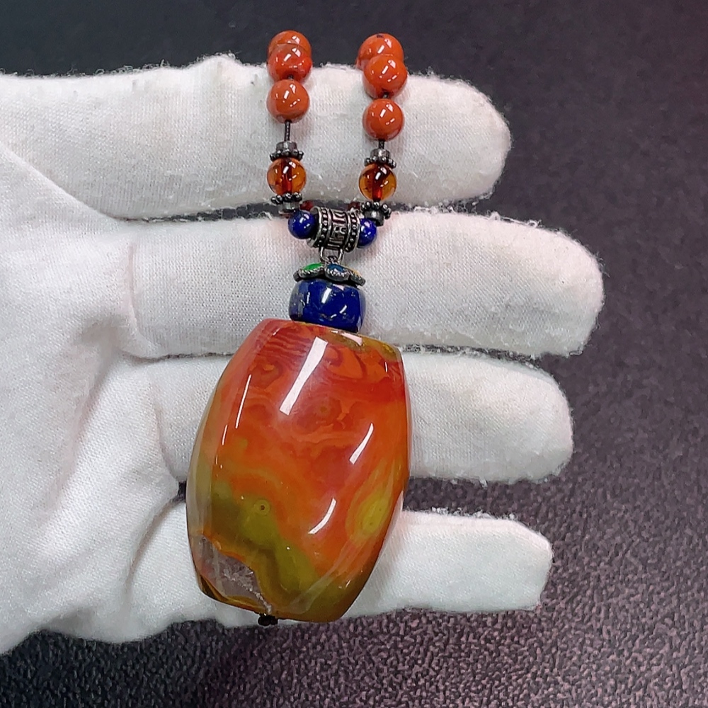 Warring States Red Agate Pendant with Southern Red Chain (Organic Inclusions Present), Non-Natural Accent Stones Considered, Non-Gold, Total Weight Approximately 79.89g