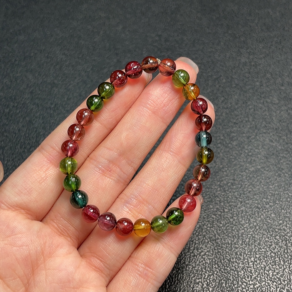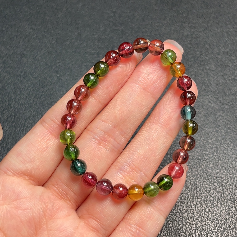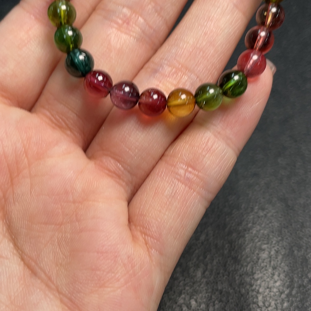 Tourmaline Bracelet with Visible Organic Matter, Total Weight Approx. 9.32g, Size Around 6mm